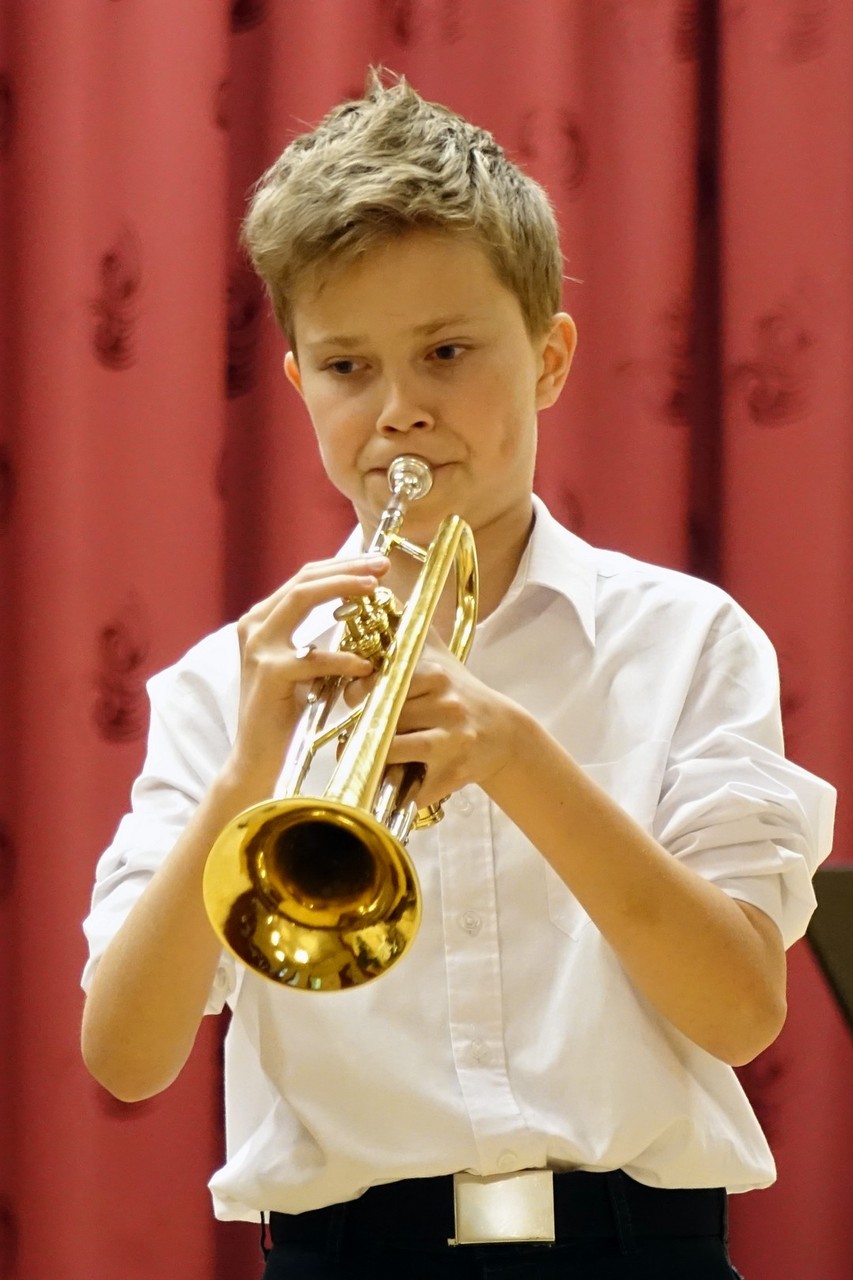 Fabisz Karolin, az Implom iskola tanulója második éve furulyázik, s ő is az első fellépők táborát gazdagítja. Ennek megfelelően rendesen cidrizik az egyébként cserfes lányka. Bogdán Gábor tanítványa Bach Menüettjével készült és csaknem hibátlan produkcióval örvendeztette meg a közönséget.