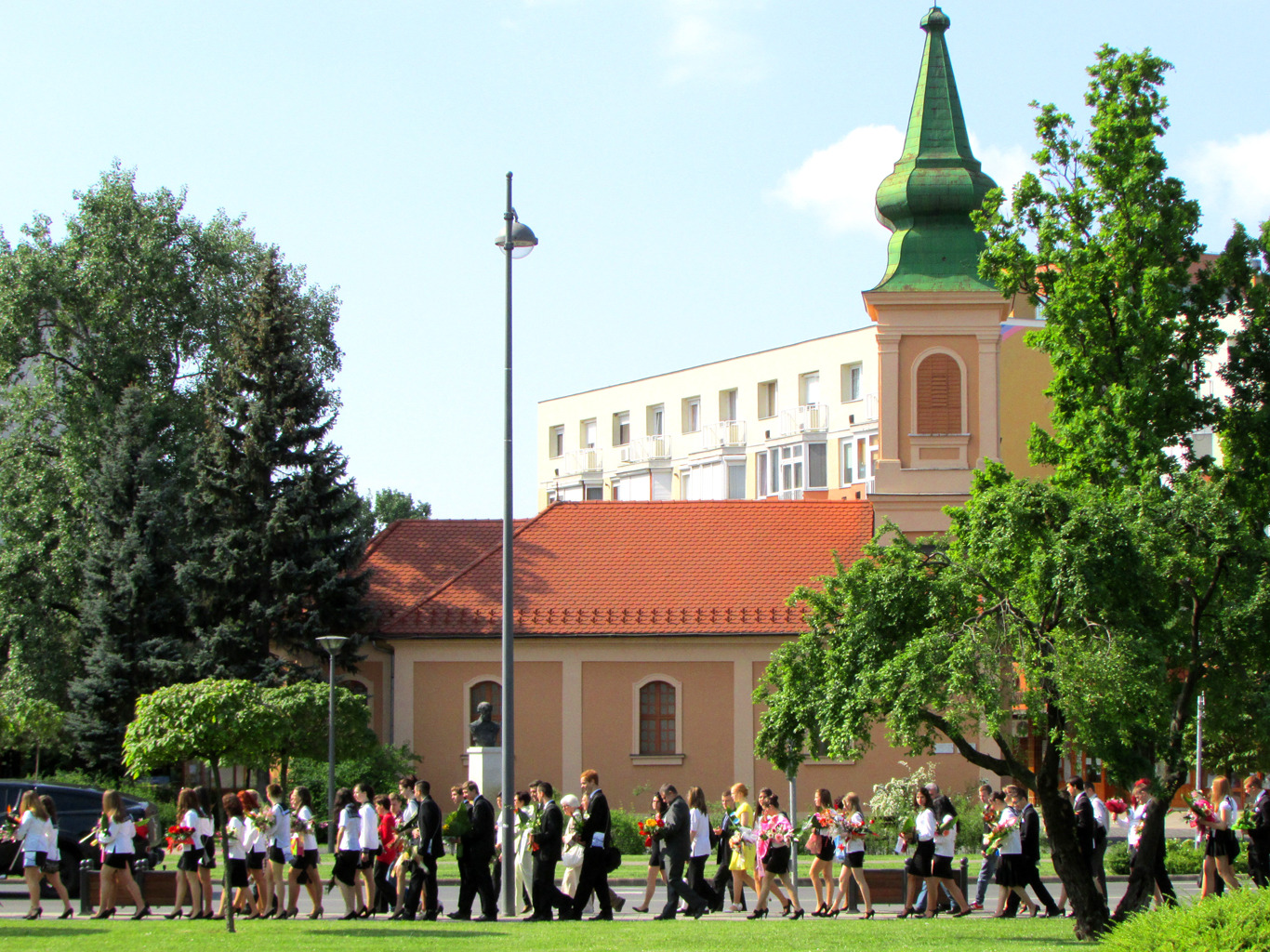 A Karácsonyi János Római Katolikus Gimnázium végzősei május elsején búcsúztak a középiskolától. Az oktatási intézményben idén három osztály 70 diákja készül az érettségi vizsgákra. A ballagás az iskola épületében kezdődött, majd a Karácsony János utcában az iskola névadójának emléktábláját koszorúzták meg a diákok és tanáraik.