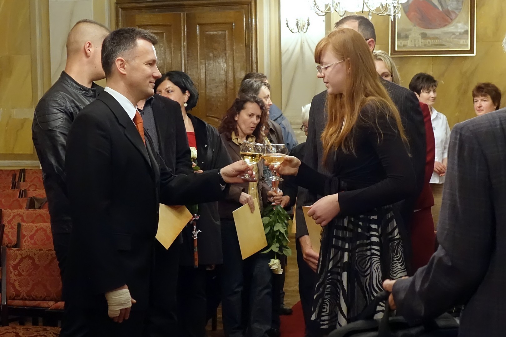 Az ünnepélyes procedúra végén a friss magyar állampolgárok pezsgős koccintással köszöntötték egymást.