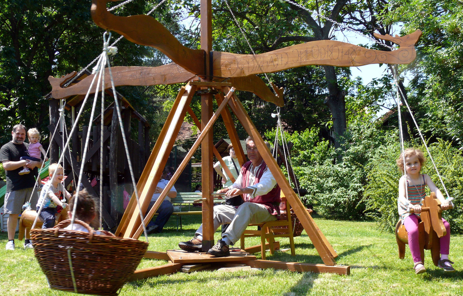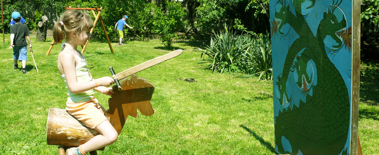 A legnépszerűbb játékelem minden bizonnyal a sárkányvadászat volt, amikor is egy fabakkal imitált lóról, karddal kellett lebökni a sárkány három fejét. Ez volt a kedvence a nagycsoportos, örökmozgó Vilmosnak és tetszett volna Renikének is, ha a nagyoktól hozzáfért volna. A kislány végül az ugrálóvár, a kosárforgó és a csúszda felé vette az irányt, majd a sokkal „királylányosabb” sólisztgyurmázás mellett döntött.
