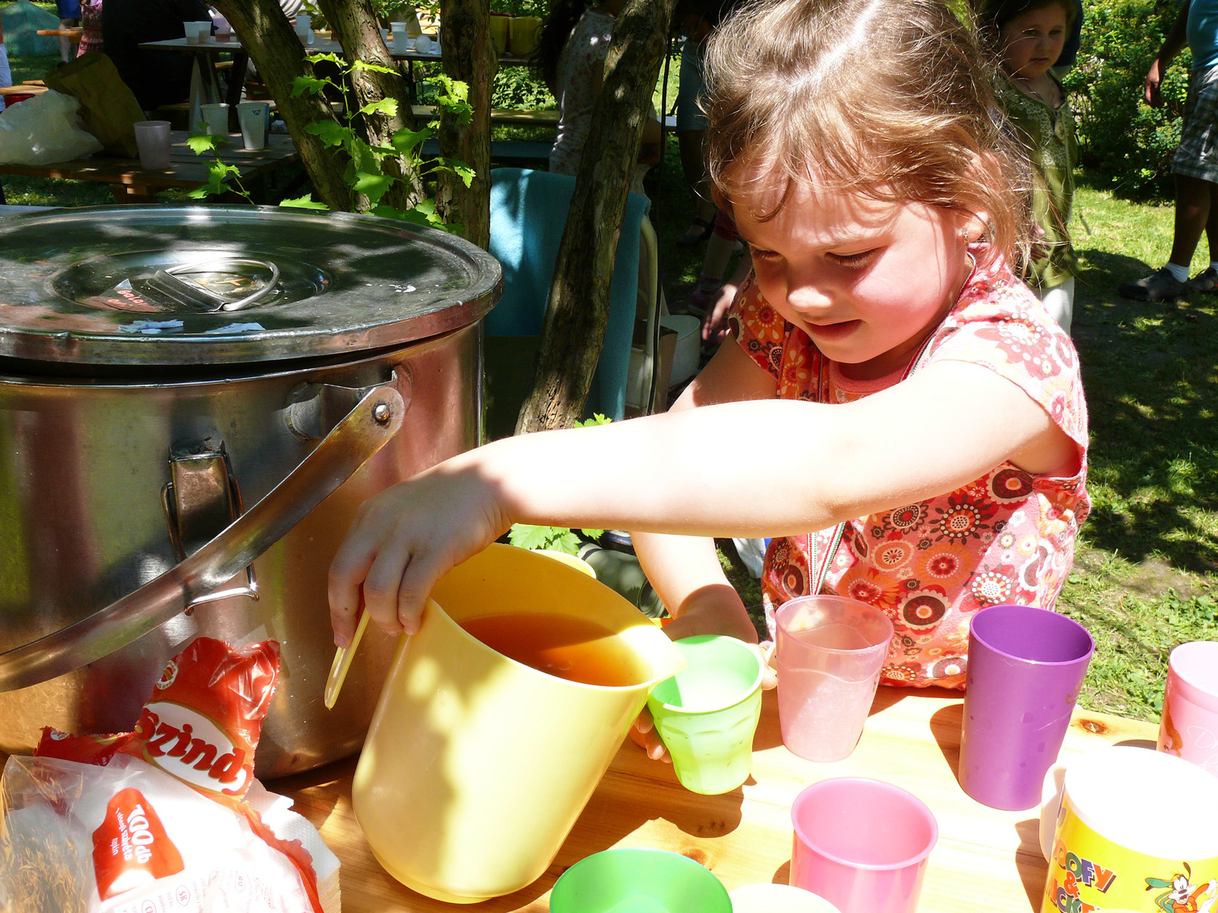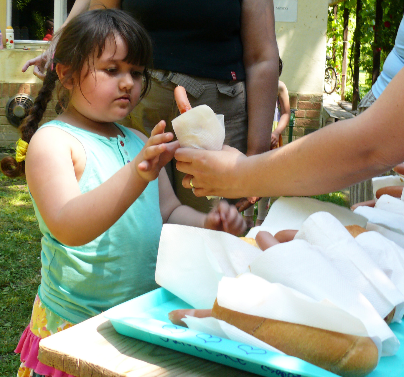 A sok ugrálás, szaladgálás és versenyzés után ki az árnyas fák alá húzódva, ki egy lócán, lábát lógázva költötte el ebédjét: a minden gyermek által kedvelt hotdogot.