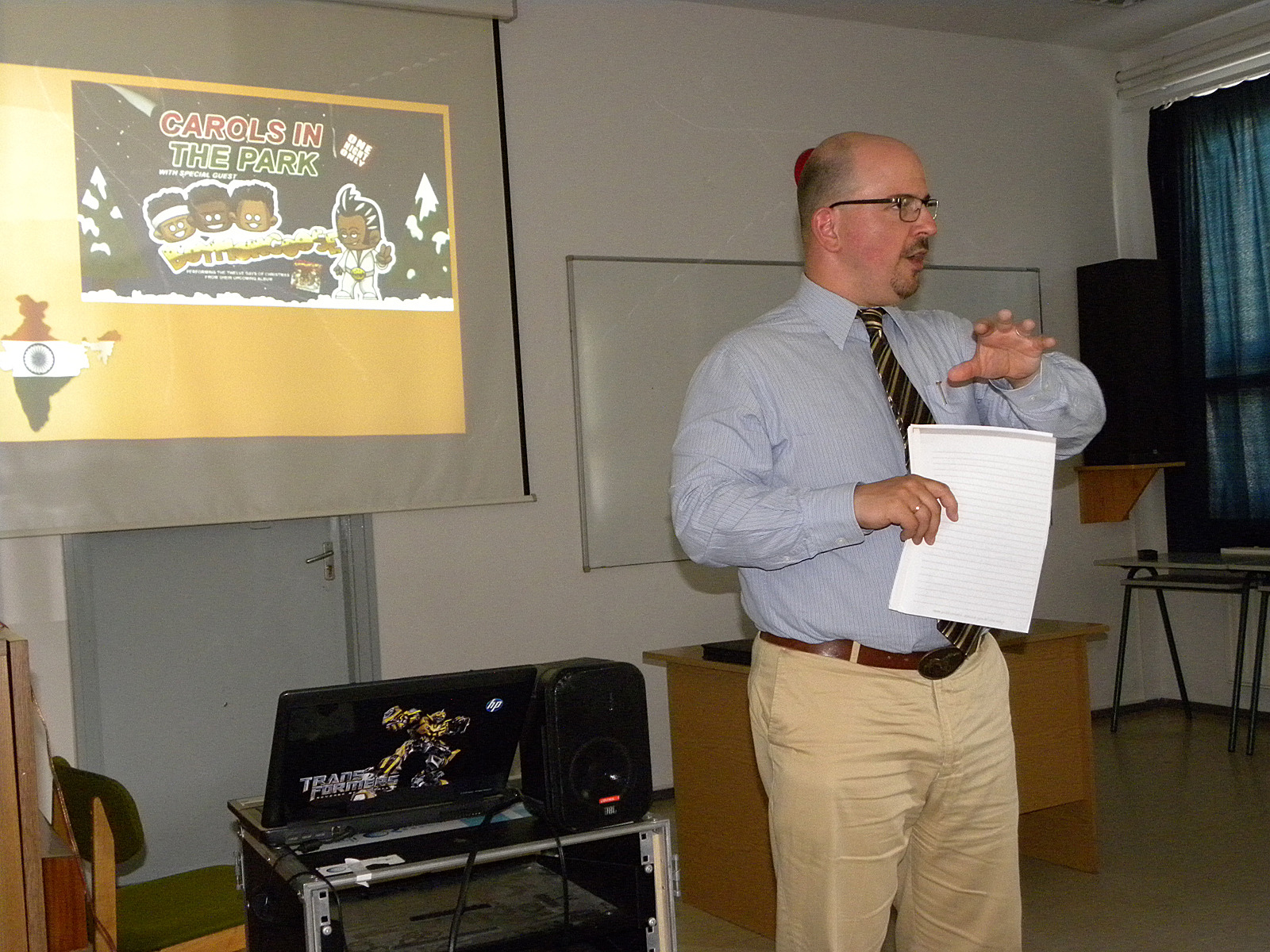 Rendhagyó angolórán tehették próbára nyelvtudásukat az Erkel Ferenc Gimnázium diákjai. Mile András, a Károli Gáspár Református Egyetem tanára második alkalommal tartott ismeretterjesztő, videóbejátszásokkal színesített, interaktív angol nyelvű előadást a középiskolában. Ezúttal India titokzatos világába nyerhettek betekintést a tanulók.