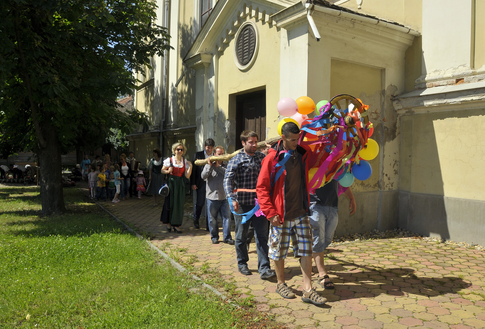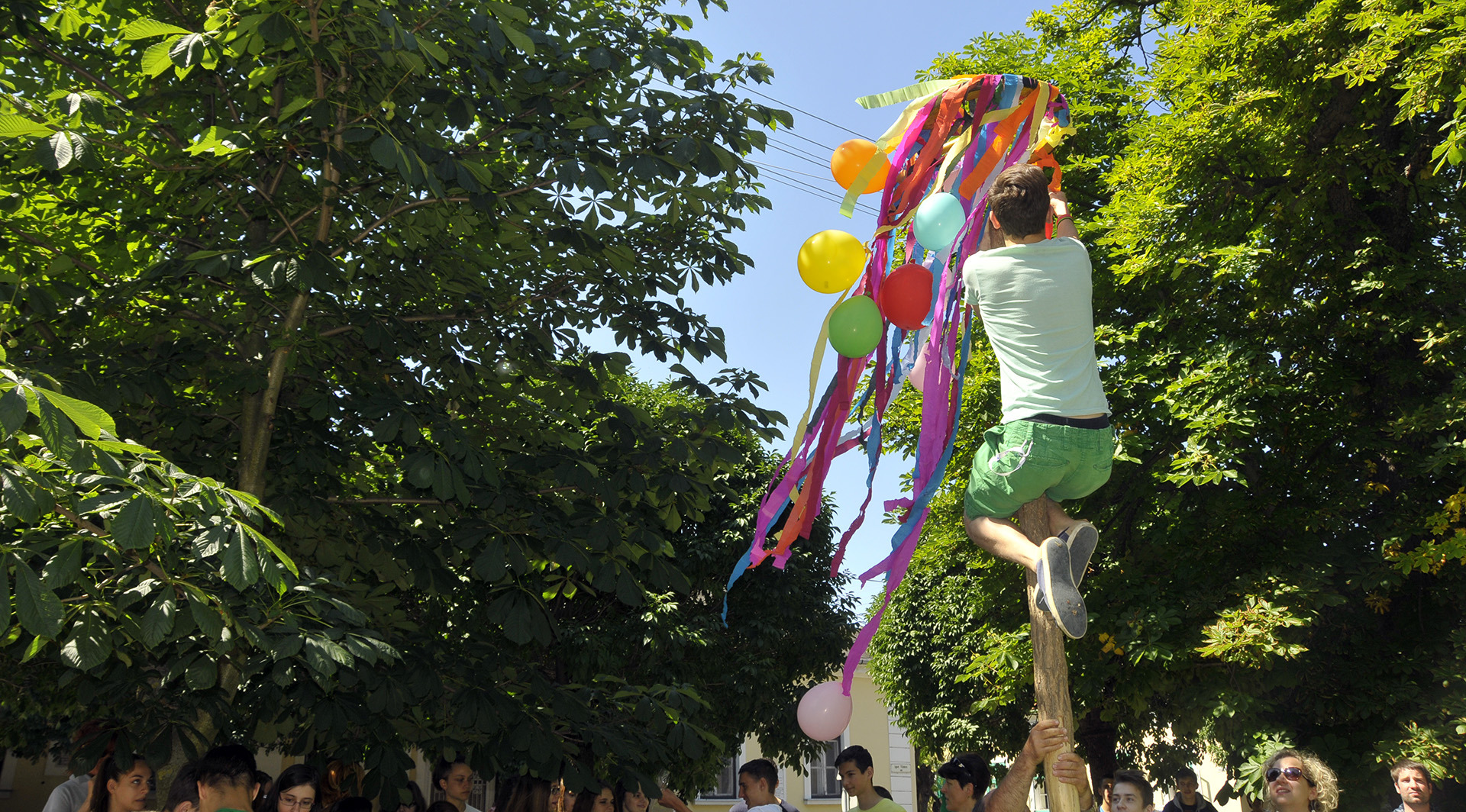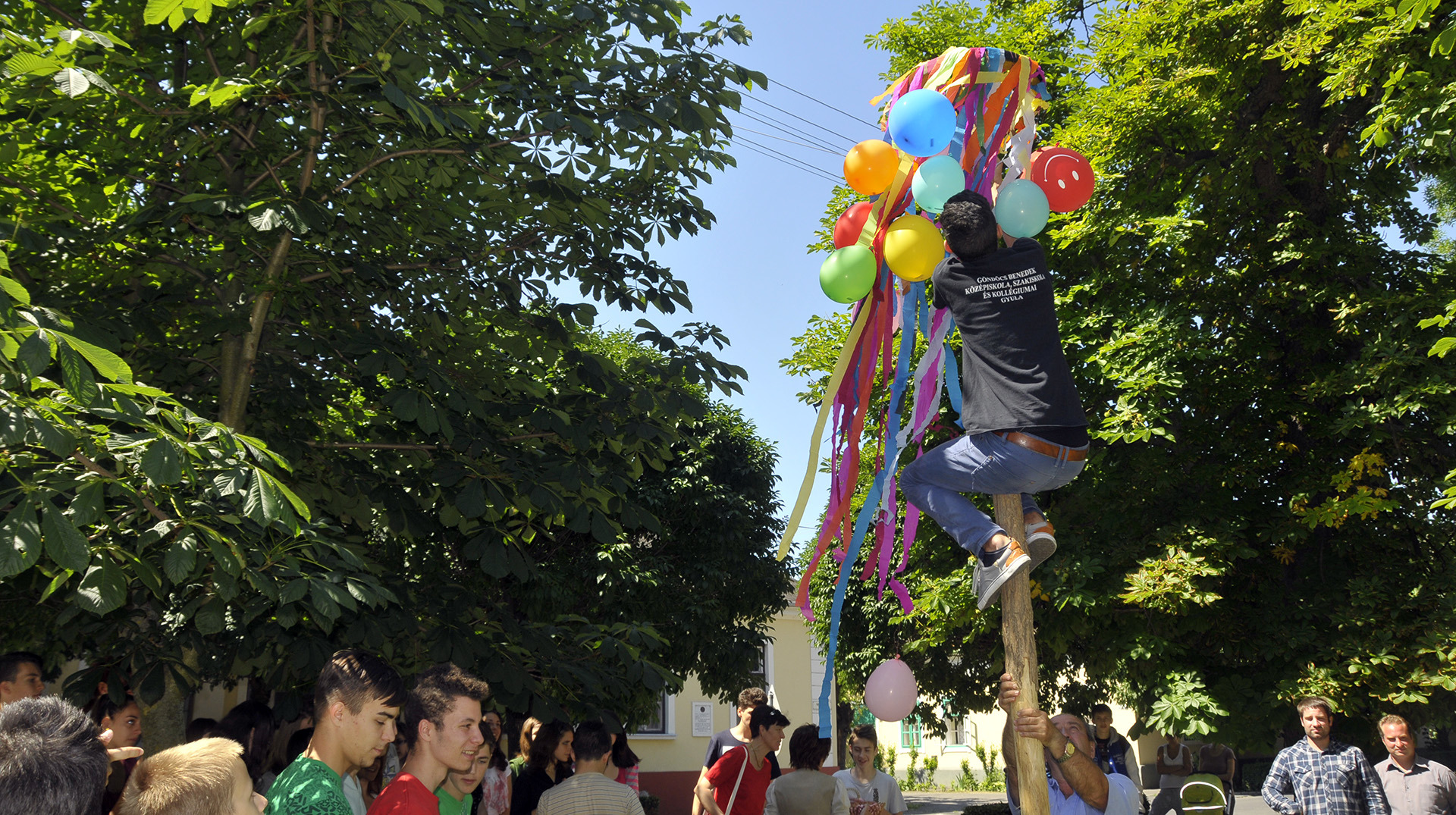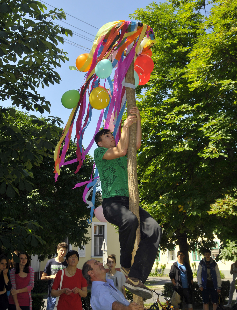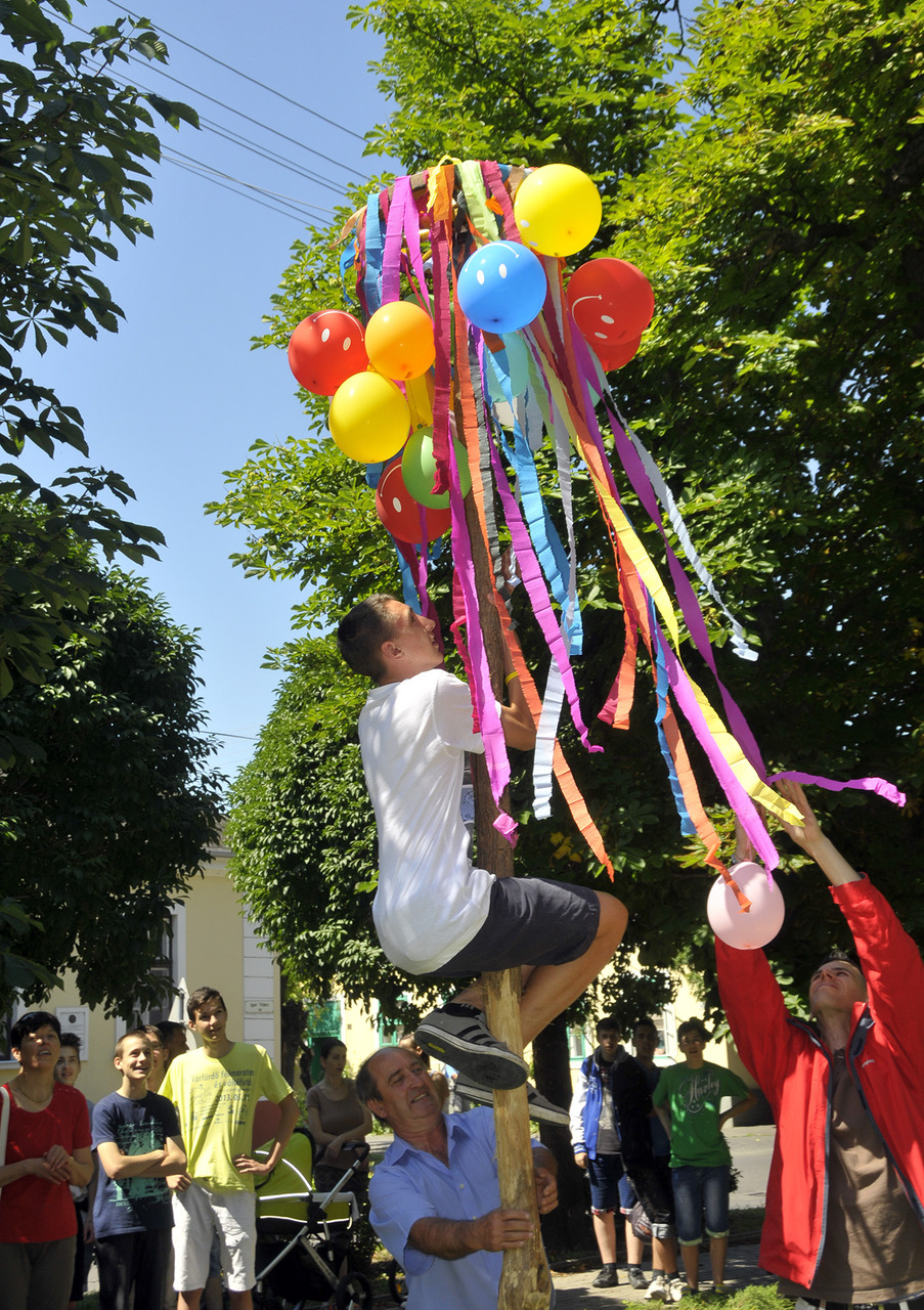 Az ünnepi hagyományokat felelevenítve pünkösdfát állított az Apor Vilmos téren Gyula Város Német Nemzetiségi Önkormányzata. A hajadonok először szalagokkal és léggömbökkel díszítették fel a fát, melyet harmonika- és énekszó kíséretében körbevittek a téren és a Szent József templom körül az ünneplők. A pünkösdfa felállítása után lehetett nekiugrani a próbának, a kisebb-nagyobb legények nekigyürkőztek a színesen ékesített fácska megmászásának.