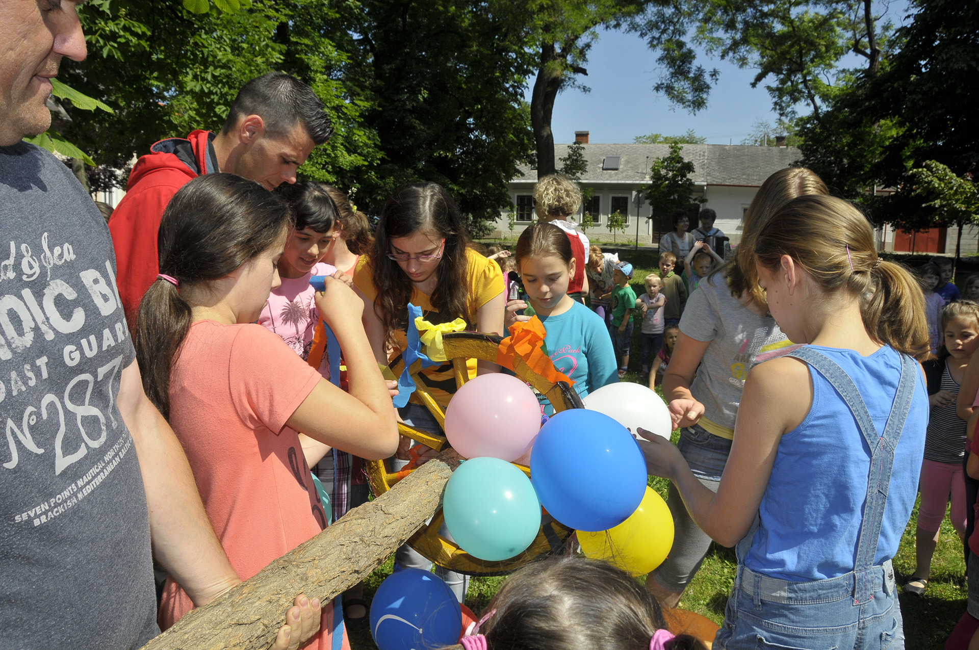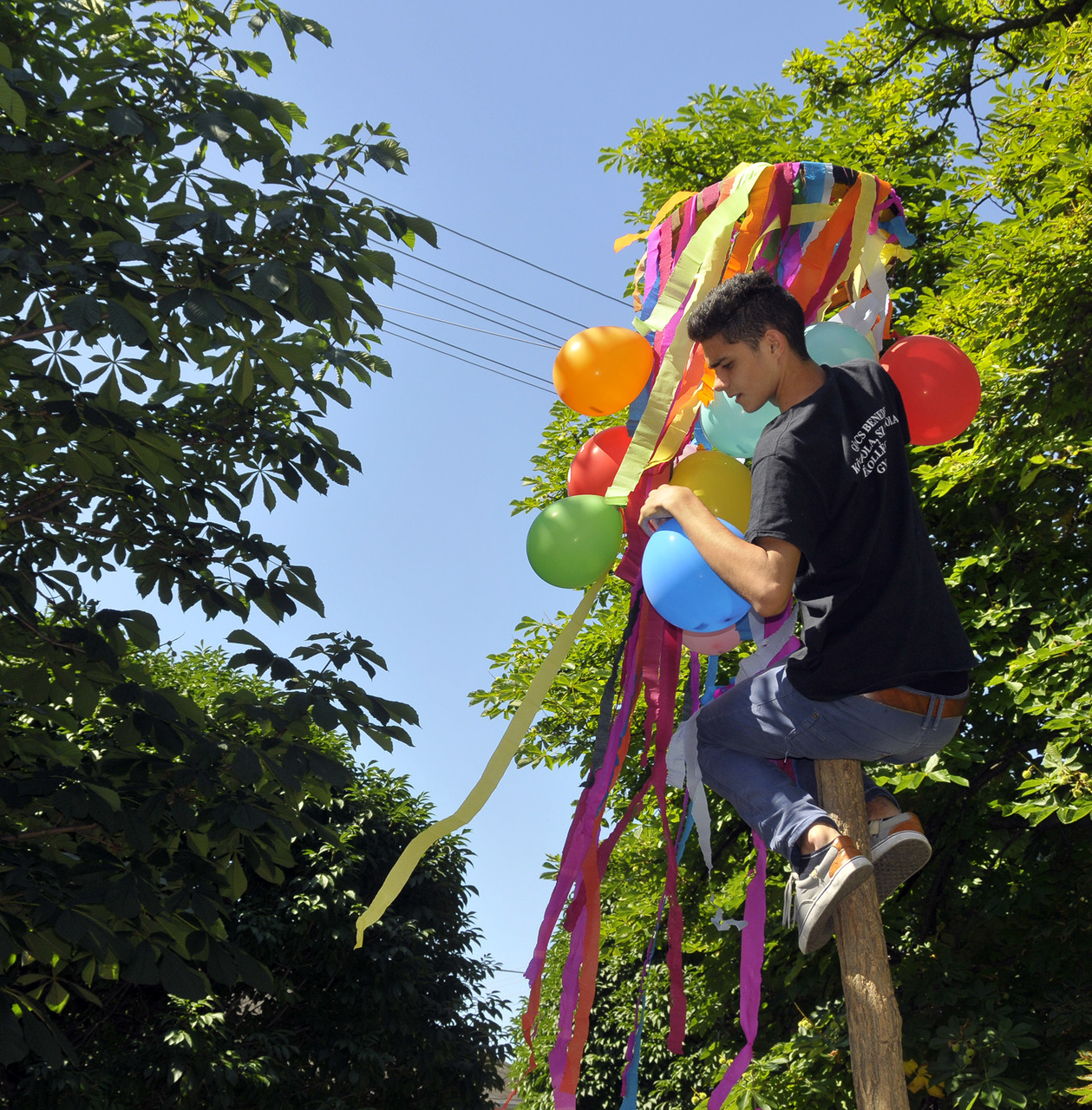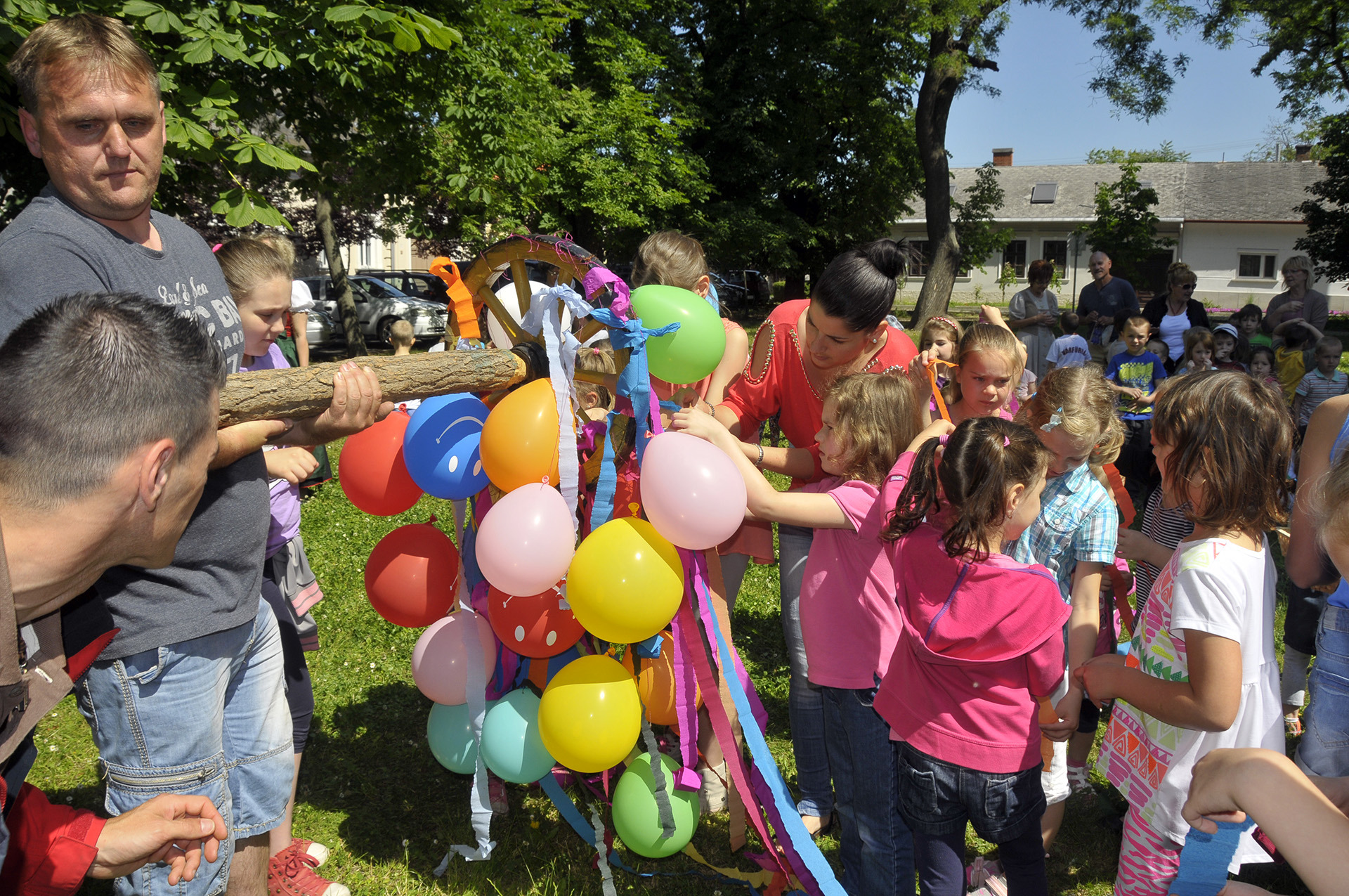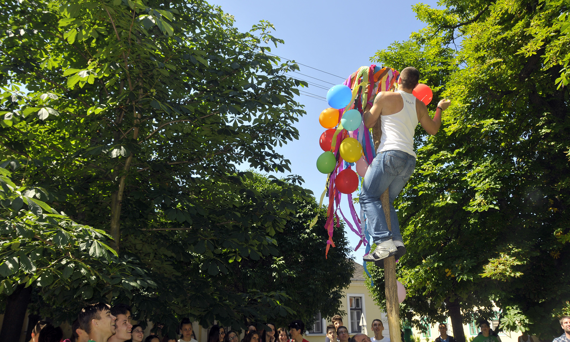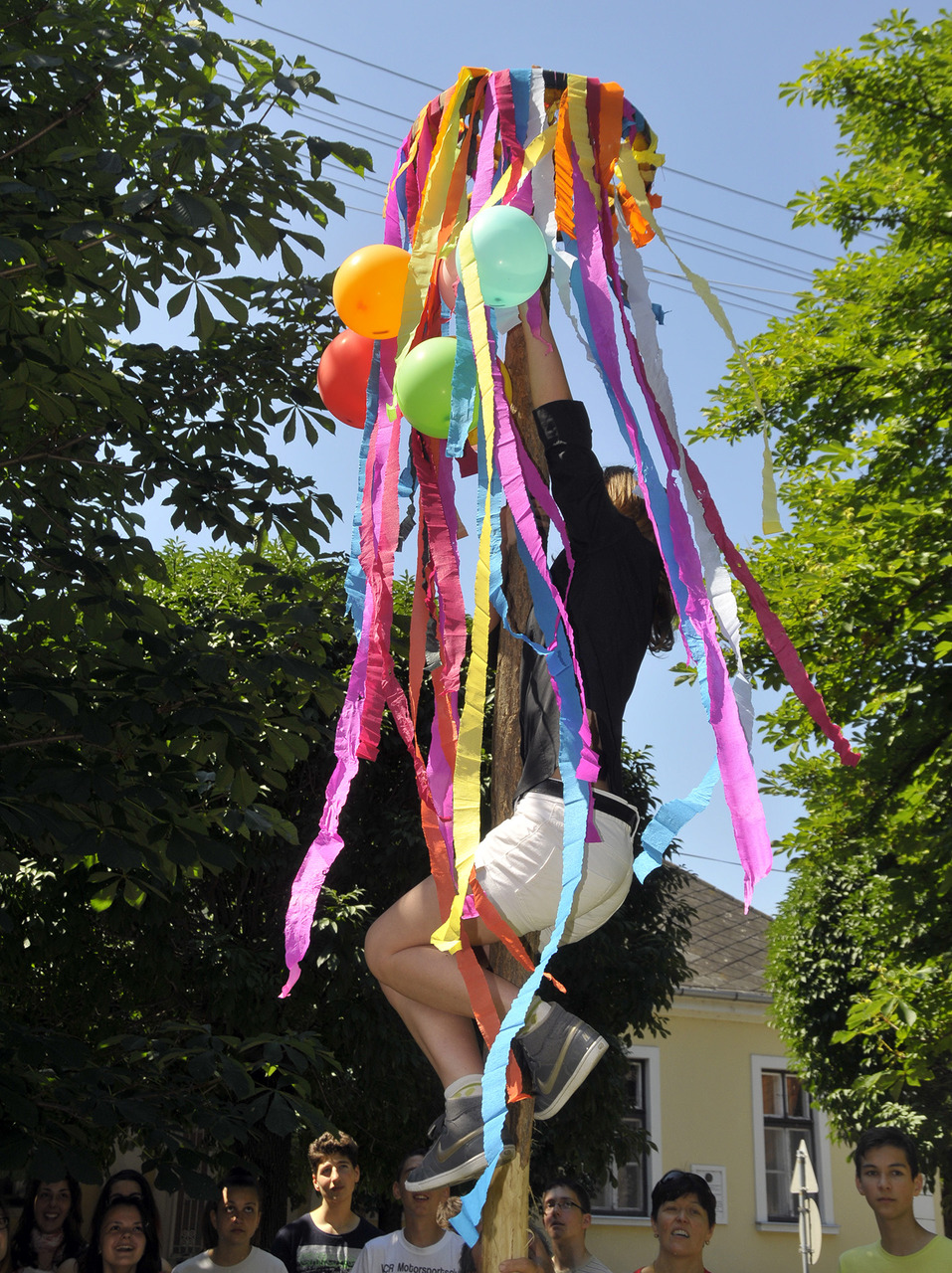 Az ünnepi hagyományokat felelevenítve pünkösdfát állított az Apor Vilmos téren Gyula Város Német Nemzetiségi Önkormányzata. A hajadonok először szalagokkal és léggömbökkel díszítették fel a fát, melyet harmonika- és énekszó kíséretében körbevittek a téren és a Szent József templom körül az ünneplők. A pünkösdfa felállítása után lehetett nekiugrani a próbának, a kisebb-nagyobb legények nekigyürkőztek a színesen ékesített fácska megmászásának.