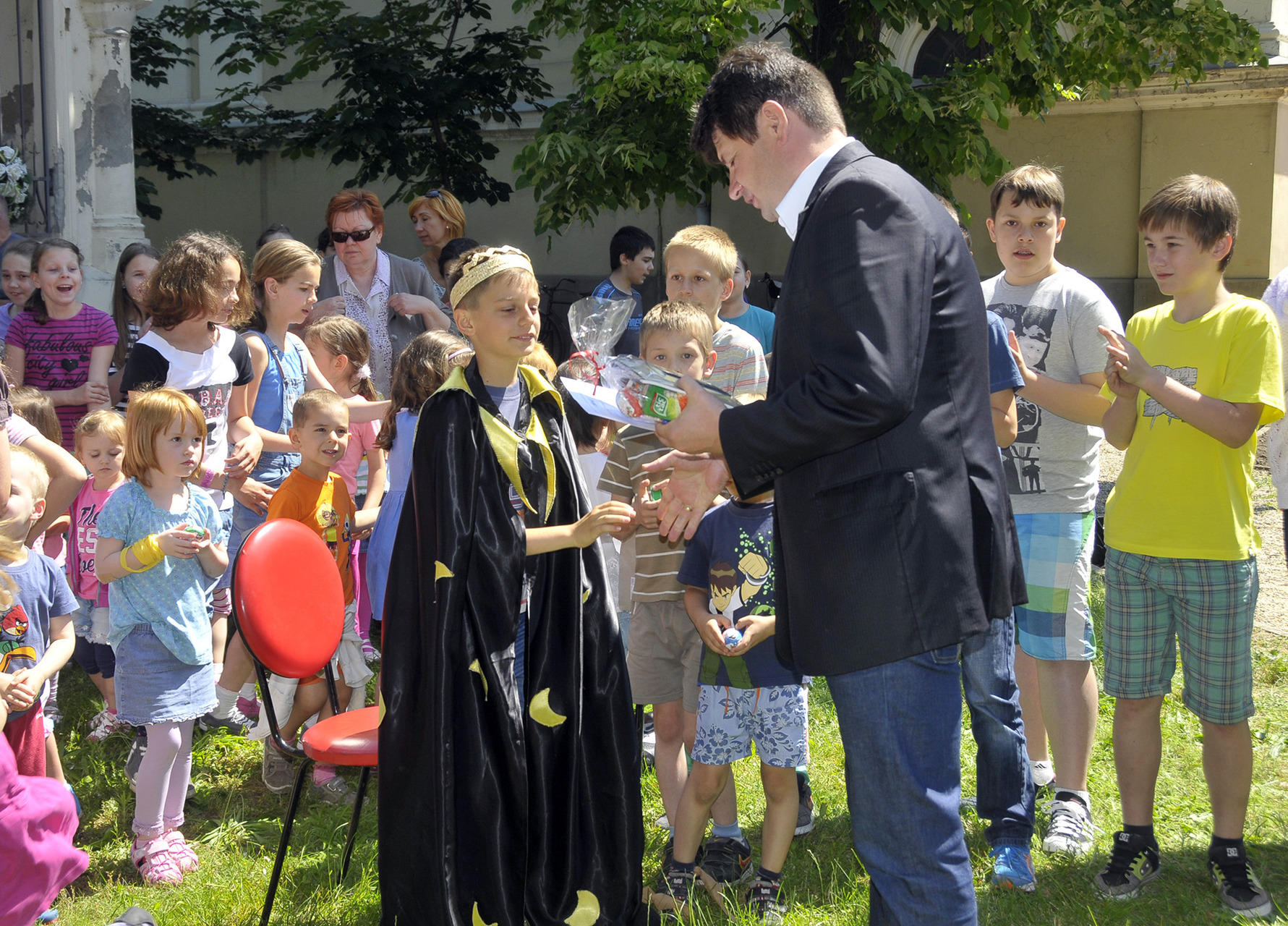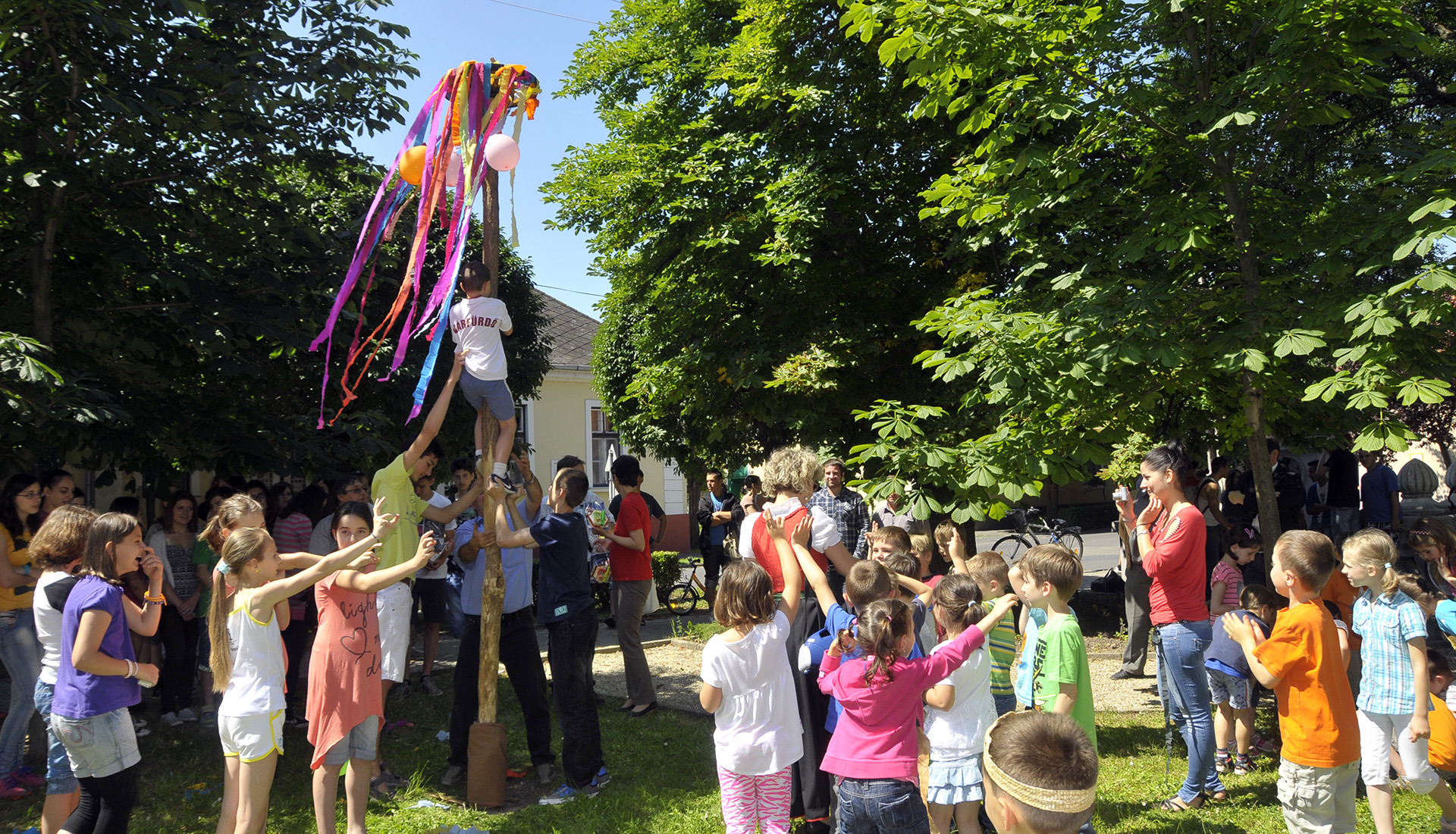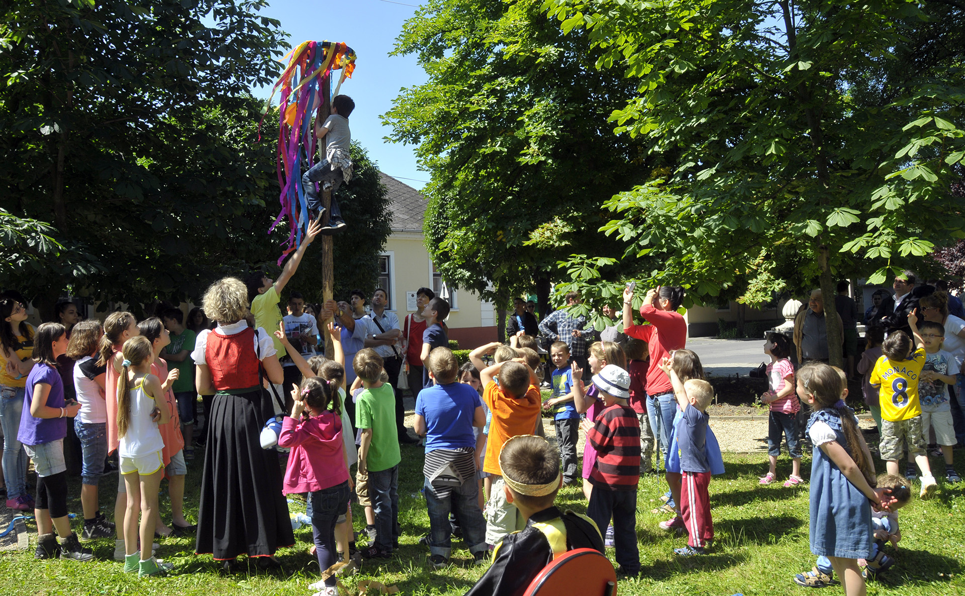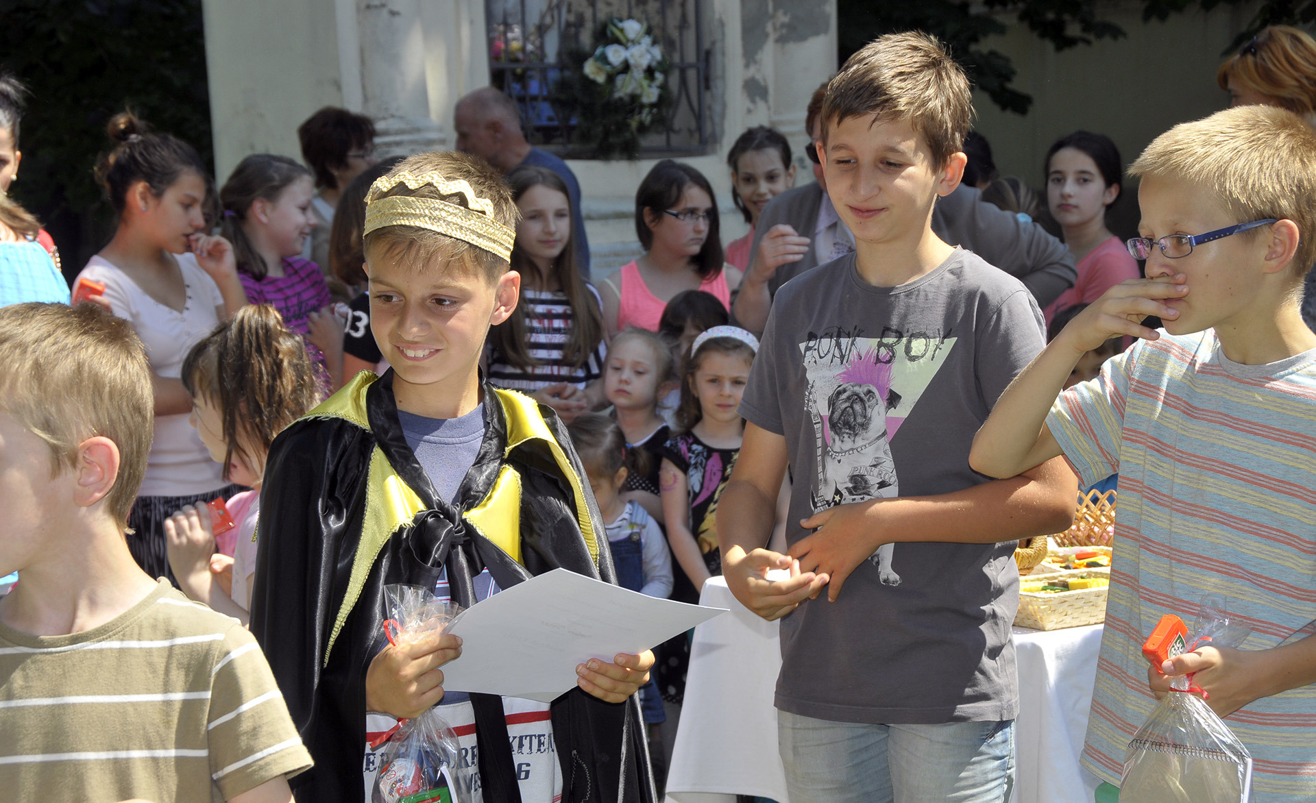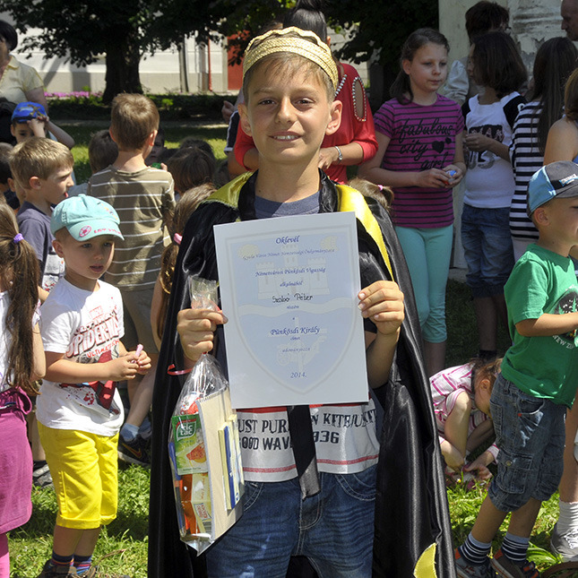 Az idei pünkösdi király Szabó Péter, az Implom iskola ötödikes diákja lett, akit zenés-táncos pünkösdi körtánccal ünnepelt az éneklő-sikítozó gyereksereg.