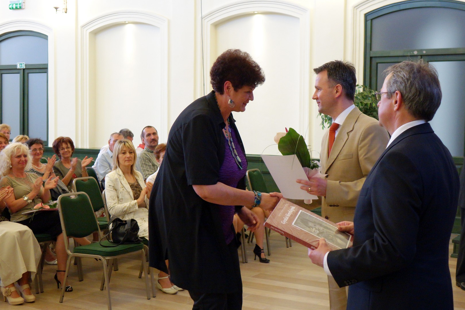 A rendezvényen gyémántdiplomát vehetett át Suhai Ferencné Fülöp Klára, magyar-történelem szakos általános iskolai tanár, aki nyugdíjba vonulásáig az 1. Sz. Általános Iskolában tanított. Pedagógus Szolgálati Emlékéremmel jutalmazták Dorcsinez Jánosnét, aki 1988-tól nyugdíjazásáig tanított az Implom József Iskolában. Aranydiplomát vehetett át Nacsa Istvánné Berki Mária, aki 1968-tól 1979-ig a gyulai 3. Sz. Általános Iskolában tanított, 1979-ben pedig alapító tagja volt a kapuit nyitó 5. Sz. Általános Iskola tantestületének. Bagyinkáné Jász Jolán, a Gyula Általános Iskola és Alapfokú Művészeti Iskola képzőművész pedagógusa munkája elismeréseként Németh László-díjban részesült.