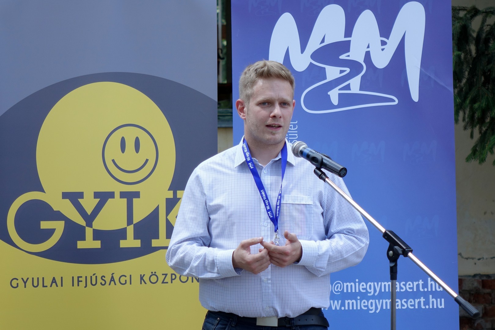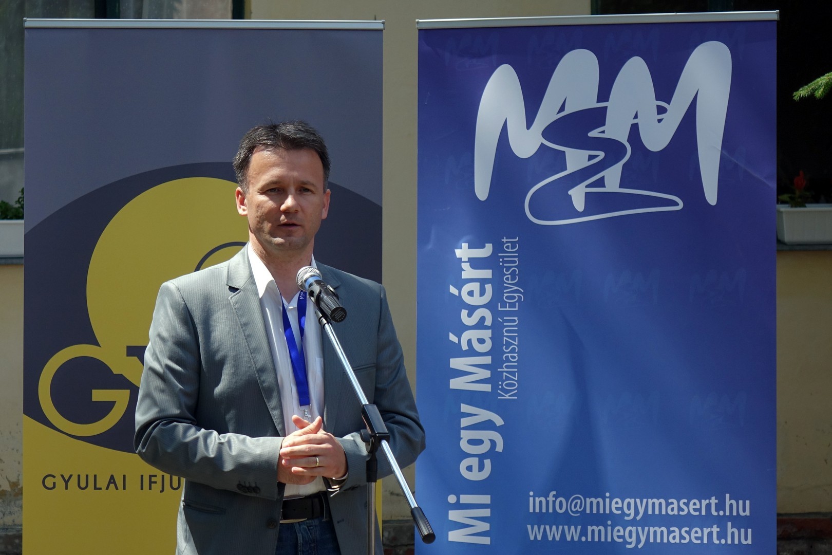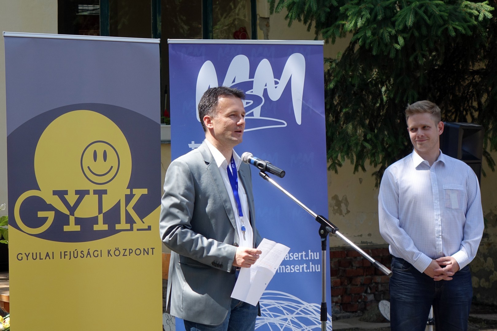 Ament Balázs az egyesület elnöke köszöntőjében felidézte: jogelődjük, a Zabhegyező Gyermekanimátorok Egyesületének gyulai csoportja hazánk első ifjúságfejlesztő szervezeteként alakult meg a 90-es évek elején. A Mi egy Másért Közhasznú Egyesület 2003-tól foglalkozik ifjúsági ügyekkel Gyulán. A jelenleg 18 tagot számláló szervezet tavaly több mint kétszáz önkéntest koordinált.