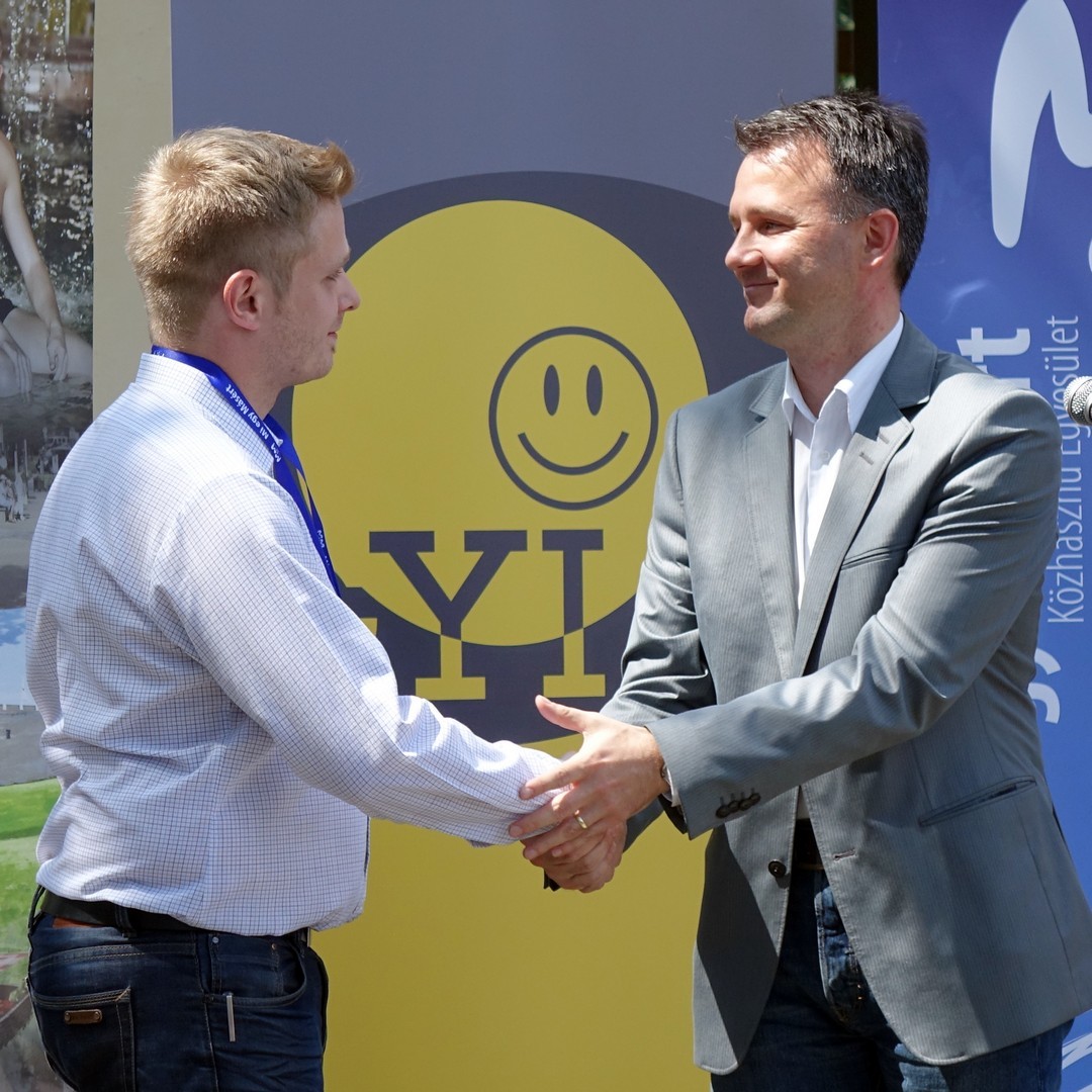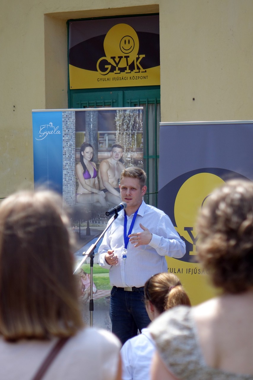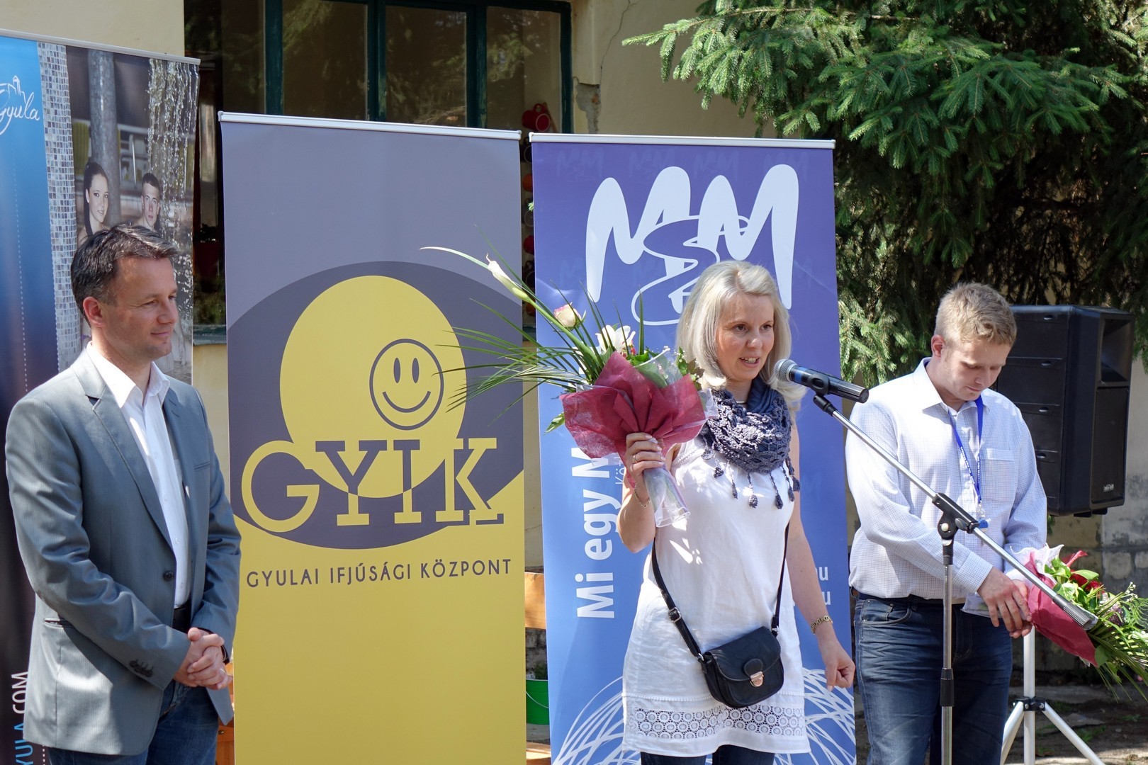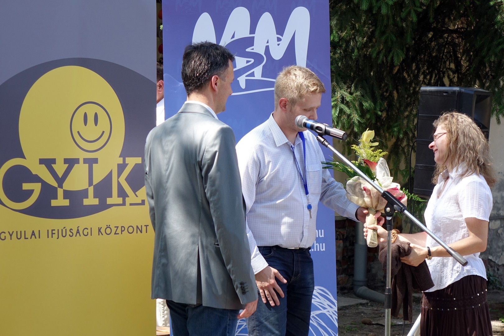 Ament Balázs az egyesület elnöke köszöntőjében felidézte: jogelődjük, a Zabhegyező Gyermekanimátorok Egyesületének gyulai csoportja hazánk első ifjúságfejlesztő szervezeteként alakult meg a 90-es évek elején. A Mi egy Másért Közhasznú Egyesület 2003-tól foglalkozik ifjúsági ügyekkel Gyulán. A jelenleg 18 tagot számláló szervezet tavaly több mint kétszáz önkéntest koordinált.
