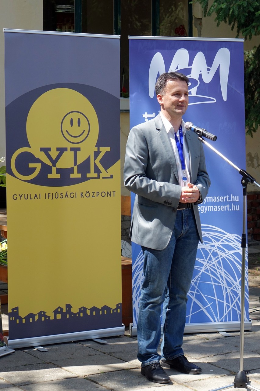 Dr. Görgényi Ernő megnyitóbeszédében hangsúlyozta: a városvezetés kiemelten kezeli az ifjúságpolitikát. A polgármester kifejtette: a szakfeladatot eddig a Gyulai Kulturális és Rendezvényszervező Nonprofit Kft. látta el igen magas színvonalon, ám a fiatalok igényeit is figyelembe véve az önkormányzat úgy döntött, ezután még szervezettebb keretek között foglalkozik az ifjúsági ügyekkel. A képviselő-testület a gyulai önkormányzat partnerszervezetét, a Mi egy Másért Gyulai Gyermekekért és Ifjúságért Közhasznú Egyesület bízta meg a szakfeladat ellátásával, egyúttal térítésmentesen rendelkezésére bocsátotta a Kossuth utcai épületrészt.