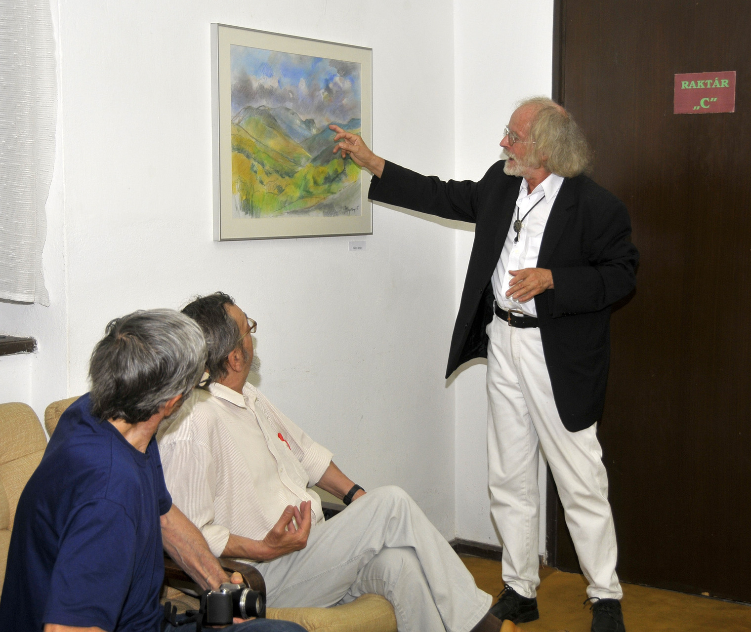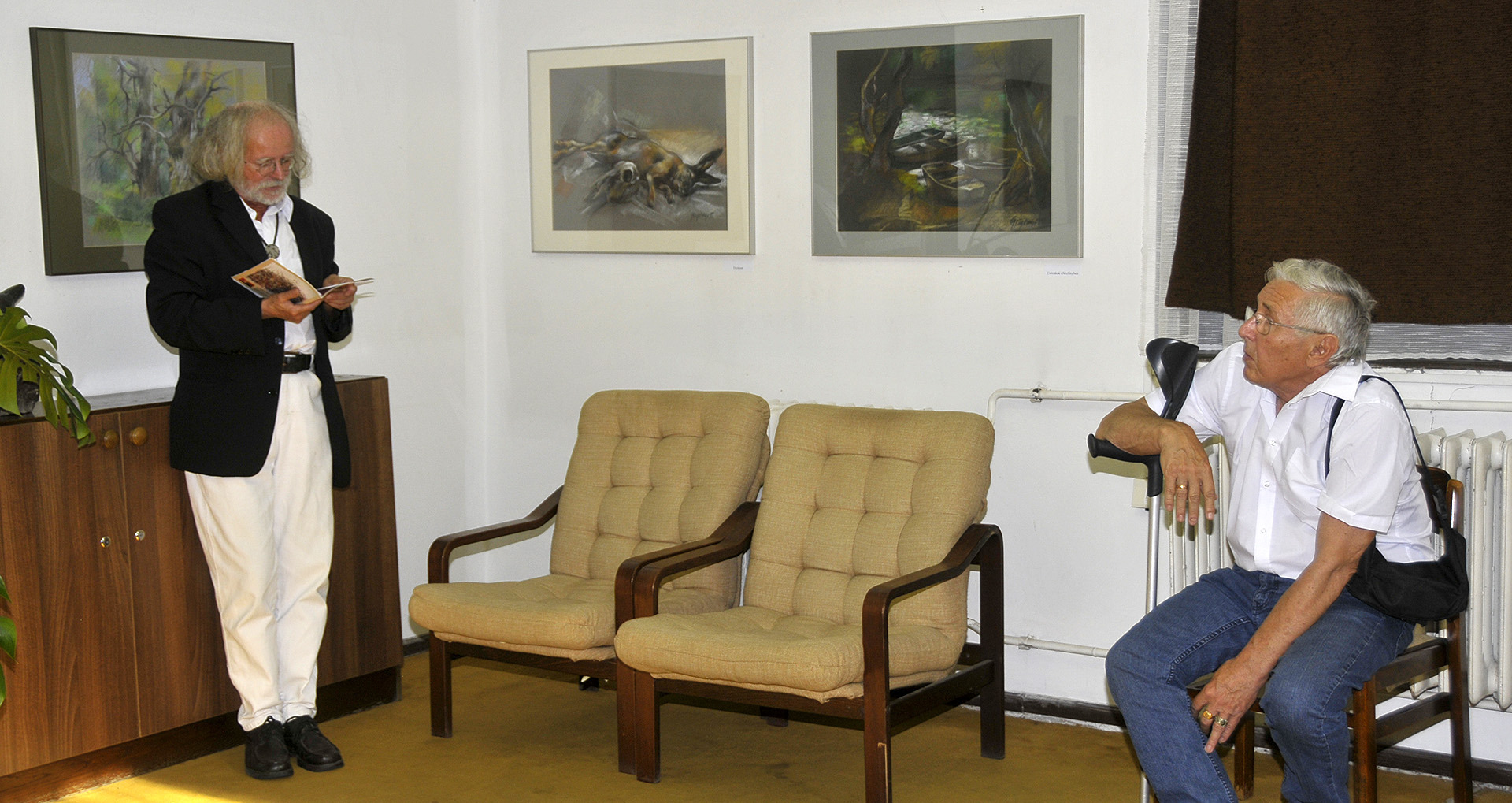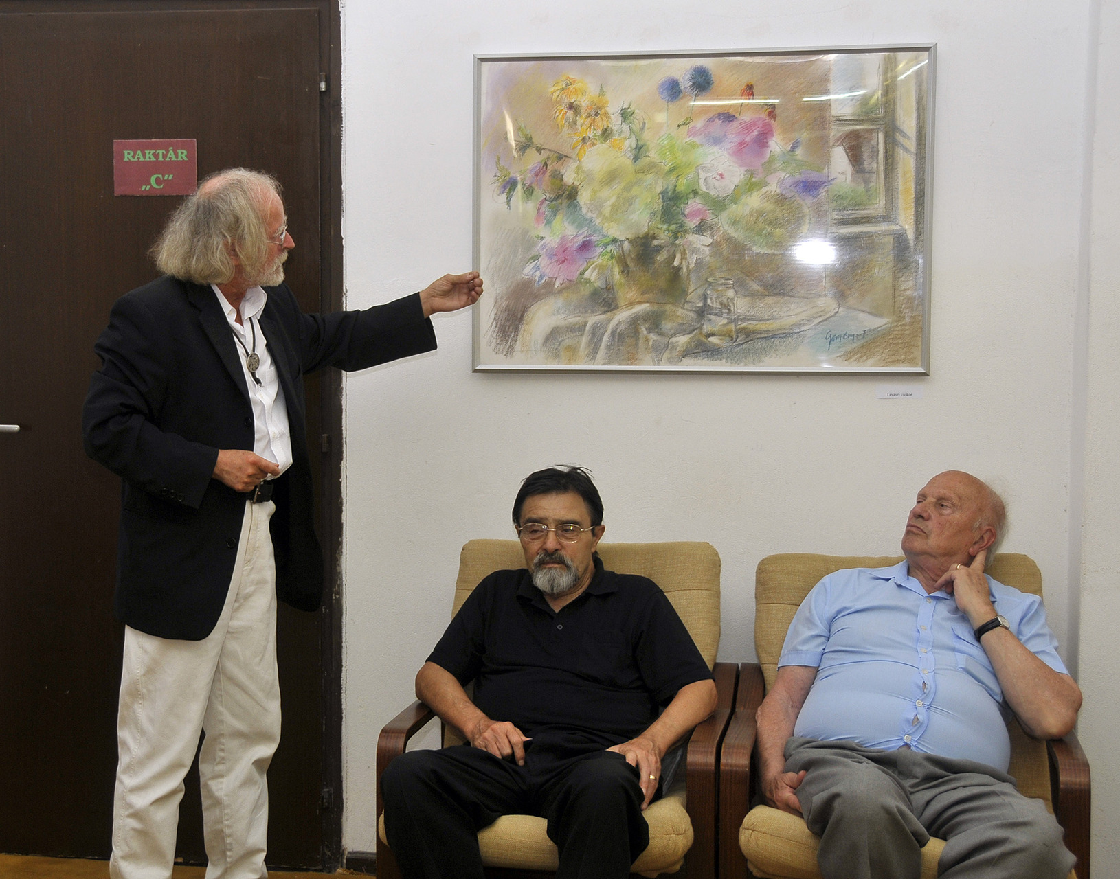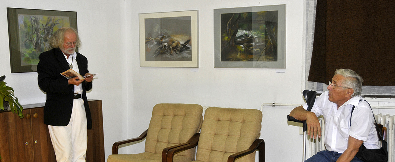 – Minden technikában otthon van, noha ide csak pasztelljeit hozta el. Metsz és szobrászkodik is, méghozzá profi szinten, szívszorító autenticitással. Tudományos képzettsége nehezen überolható, amiként fél évszázados, gondos elméleti felkészültsége és gondolati világra való nyitottsága sem mindennapi – mutatta be az alkotót Turai G. Kamil.