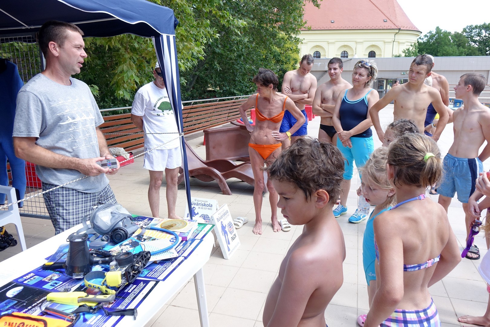 A Kormorán Búváriskola jóvoltából a bátrabbak ingyen próbálhatták ki a könnyűbúvárkodást a helyszínen. A jelentkezők búvárok felügyelete mellett hajtották végre a próbamerülést a medencében.