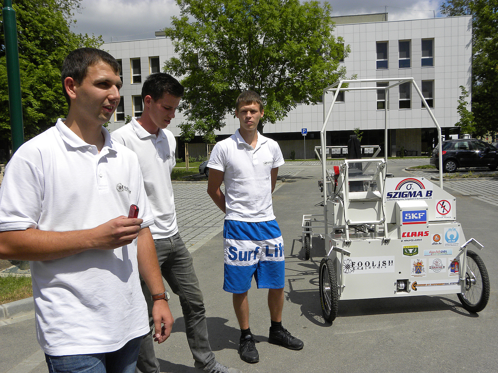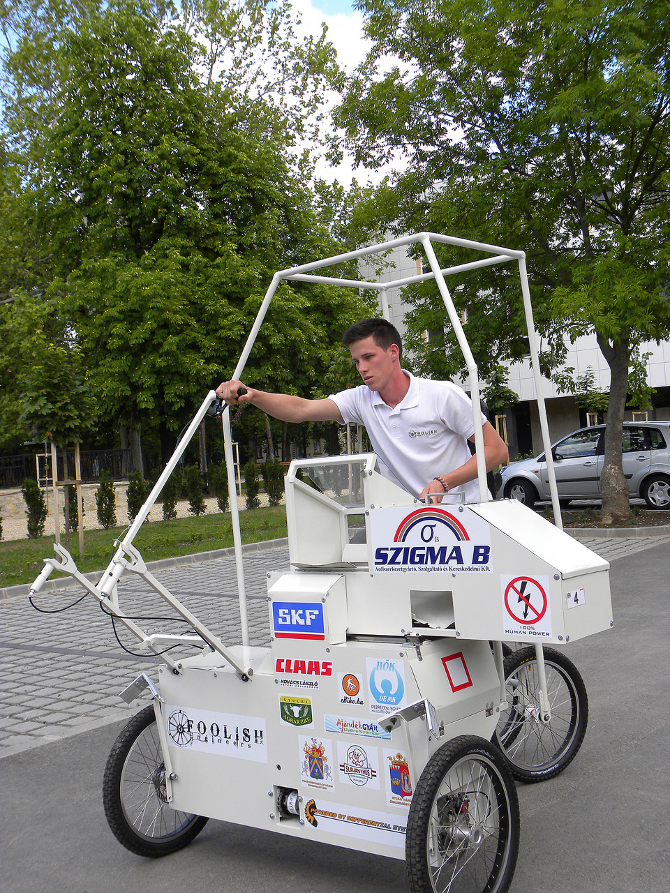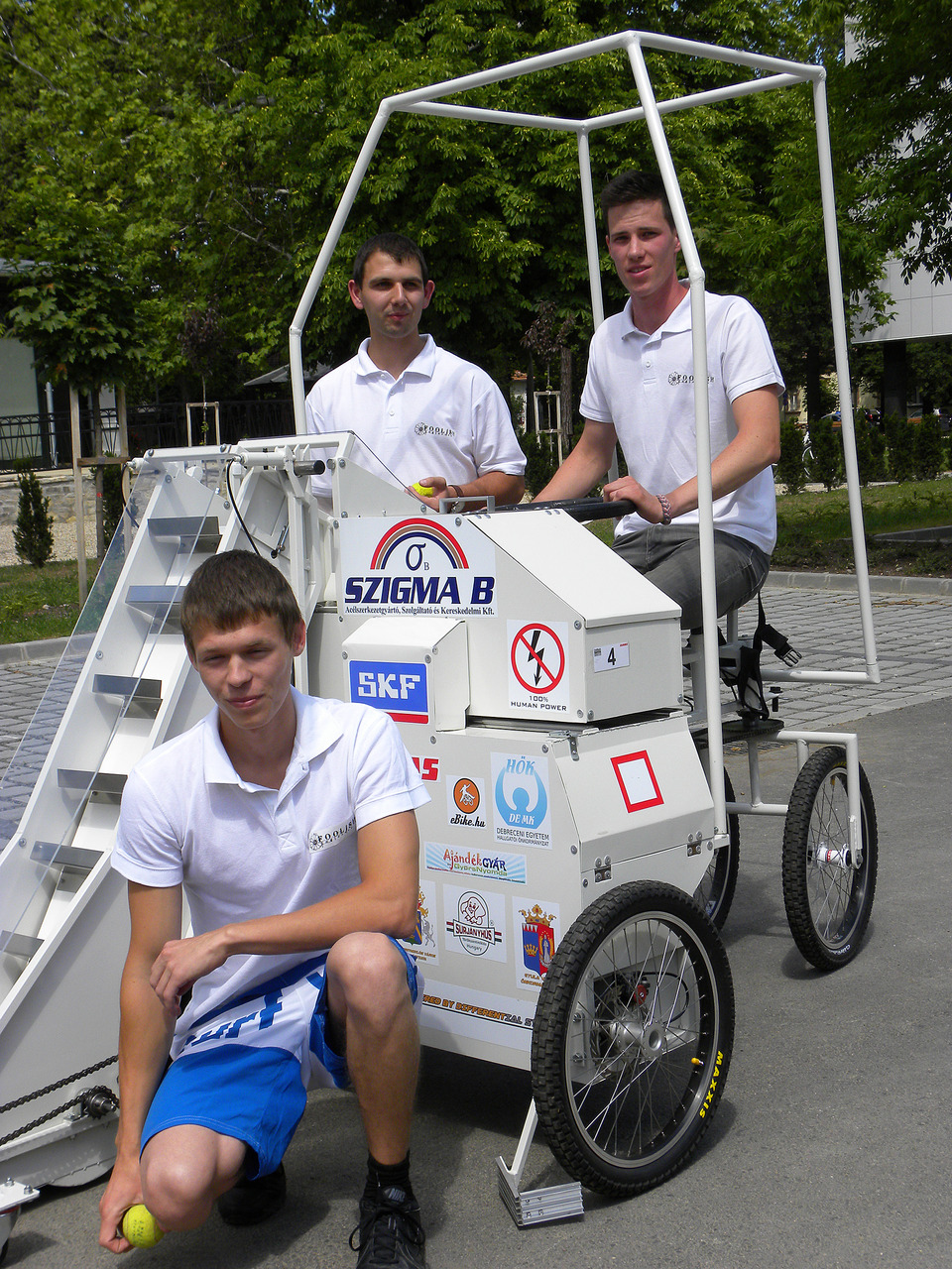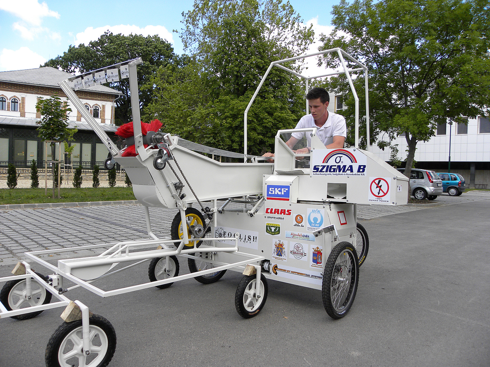 Lapunknak a gyulai csapattag elmondta: az alkatrészek beszerzése igen költséges volt, a váltót Angliából, a differenciálművet Tajvanból rendelték. A szerkezet összeállítása több mint egymillió forintba került, ezért a csapat támogatók nélkül nem tudta volna megépíteni azt. A fiúk olyan gépet terveztek, amely kizárólag emberi erővel működik. Az ellenfelek által fagyiskocsiként emlegetett, pedálos, négykerekű szerkezet a mezőgazdasági gépek közül leginkább a kombájnhoz hasonlít, hiszen különálló vágóasztallal, valamint az annak szállítására alkalmas pótkocsival is rendelkezik.