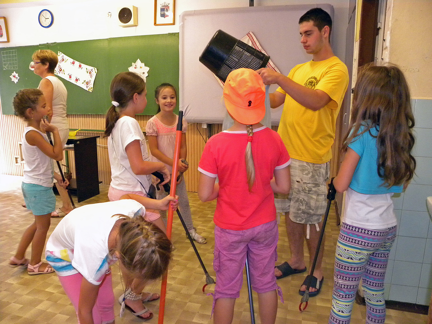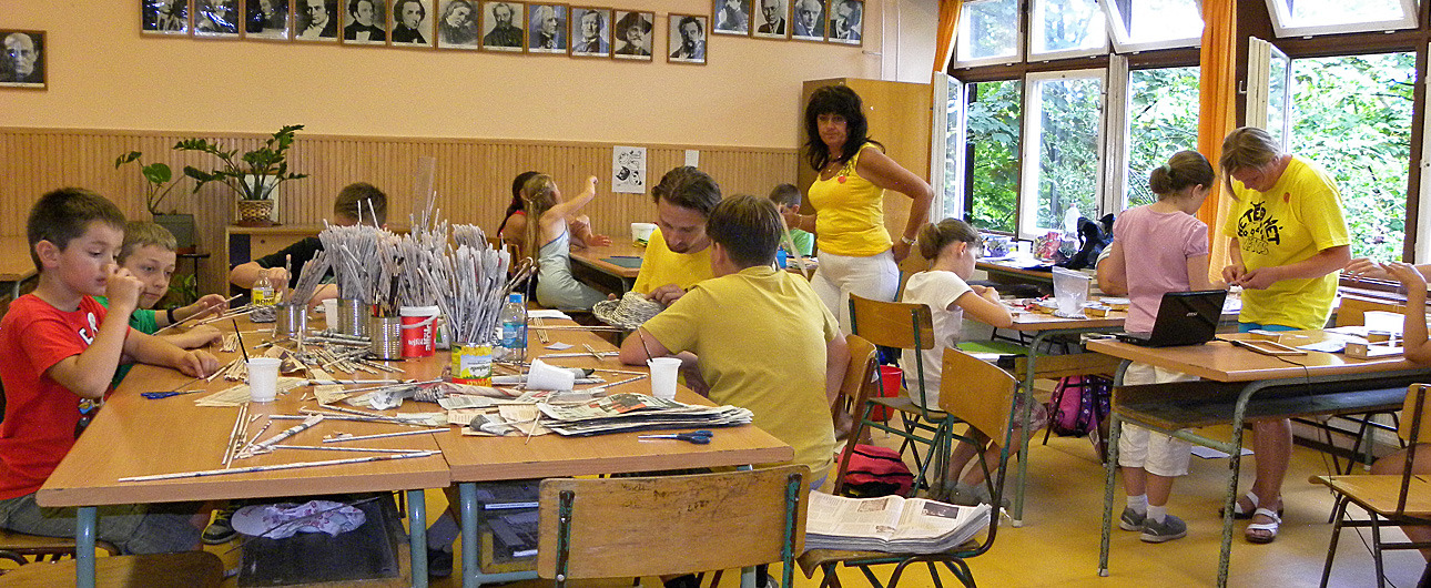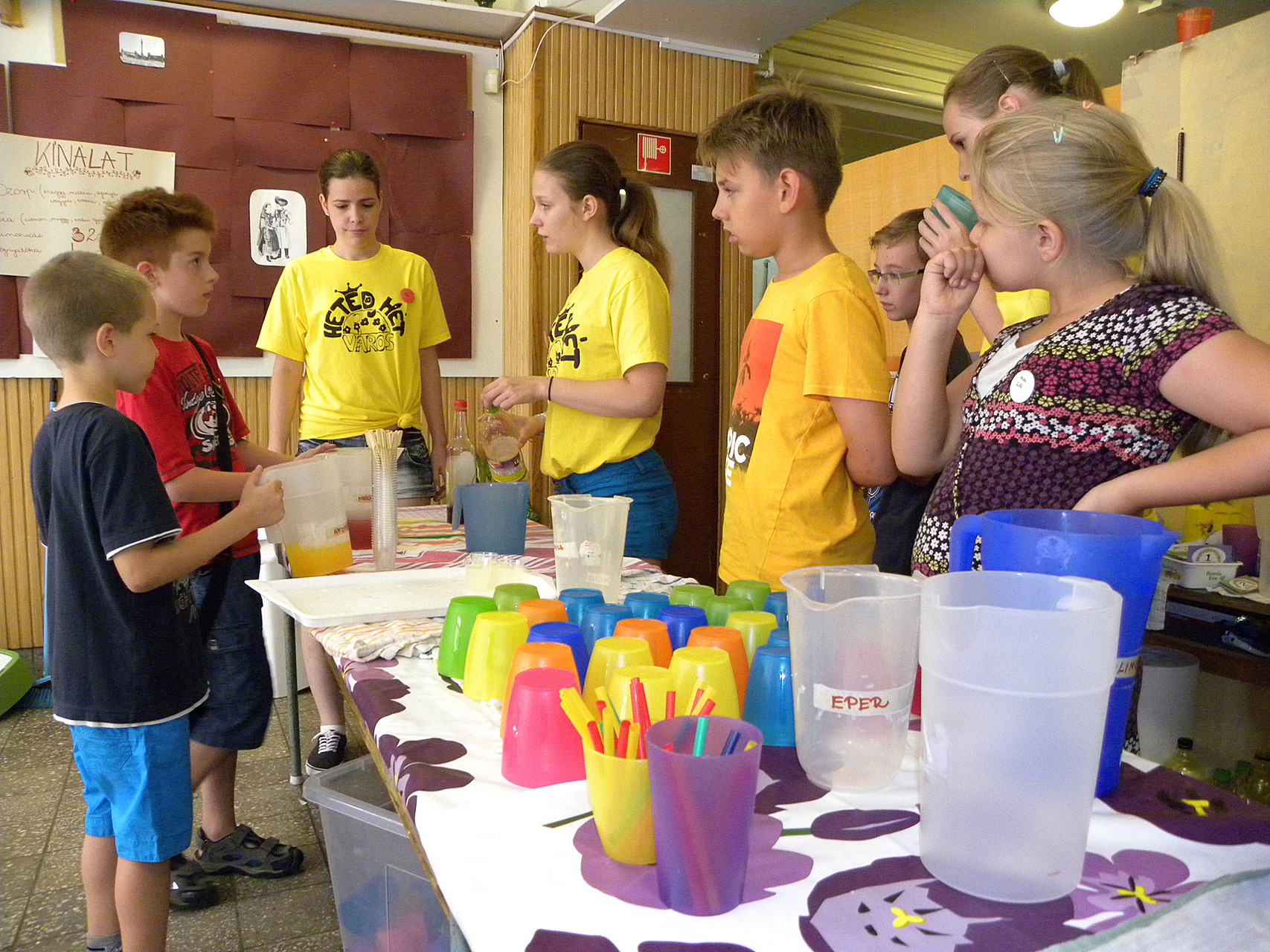 A tíznapos táborban reggel hét és délután öt óra között tartanak ügyeletet, a programok 8 órától délután 4 óráig zajlanak. Ez idő alatt a gyerekek napi öt munkaórát teljesíthetnek a műhelyekben – avatott be a részletekbe az elnök. Mint megtudtuk, játékvárosba a környékbeli településekről is érkeztek résztvevők. A városlakókat segítők között pedagógusok, kortárs segítők, szakmai gyakorlatot teljesítő egyetemisták is vannak. Rajtuk kívül Gyula két testvérvárosából, Ditzingenből és Csíkszeredából is érkeztek vendégek.