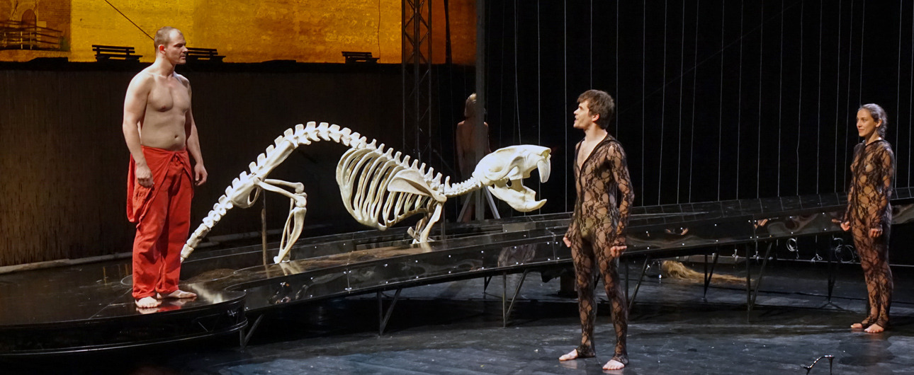 Azt sejthetjük, hogy Patkányországban járunk, hiszen a névadó szobra fogad bennünket, s hogy nem nagyot tévedtünk, azt az utolsó jelenet szintúgy visszaigazolja, amikor a förtelem tetőzésére valódi patkányok lepik el a színpadot. Szerencséje a hatalomért mindenre kész főállatnak, hogy miután a lelkiismerete felzabálta, testi valóját már nem önmaga zabálja fel, hanem az a patkányokra marad. Amúgy emberfélék mászkálnak ide-oda a színpadon, hol levetkőzve, hol félig öltözötten, s egy kiváló zenész (Szűcs Péter Pál) fest a szöveg alá surrogóan félelmes kíséretet. Ettől még a shakepeare-i borzalom nem érint meg bennünket. Pedig az aljasság teljessége, s a fura módon elemeire bomló lelkiismeret igen színes kavalkádot kínál az extremitásra különösen fogékony rendezőnek (Balázs Zoltán). Tévedhetek, de a színészei (Lendváczky Zoltán, Orosz Ákos, Petrik Andrea, Tankó Erika) is csak a patkánycsontvázat játszották körbe, s nem a játékuk, hanem csak a szavaik utaltak a bennük zajló, felöklendezett lelkiismereti gondokra. Nem volt egy felemelő színházi este.