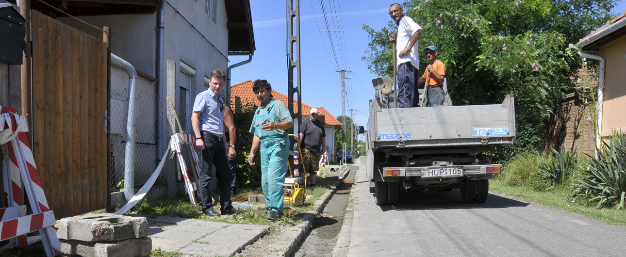 - Korábban betonráccsal fedett, nyitott rendszerként működött a csapadékvíz-elvezetés az utcában, ám ez balesetveszélyesnek bizonyult. Olyan eset is előfordult, hogy egy idős asszonynak beleszorult a lába. Ezen kívül nehezítette az amúgy sem egyszerű gépkocsi-közlekedést a keskeny utcában. Az összetört elemeket ugyan pótoltuk, de ez nem jelentett végleges megoldást, így most fedett esővízelvezető-rendszert kapott az utca, amely nemcsak a fent említett problémákra jelent megoldást, de a csapadék is könnyebben távozik ezután – nyilatkozta a Gyulai Hírlapnak Alt Norbert.