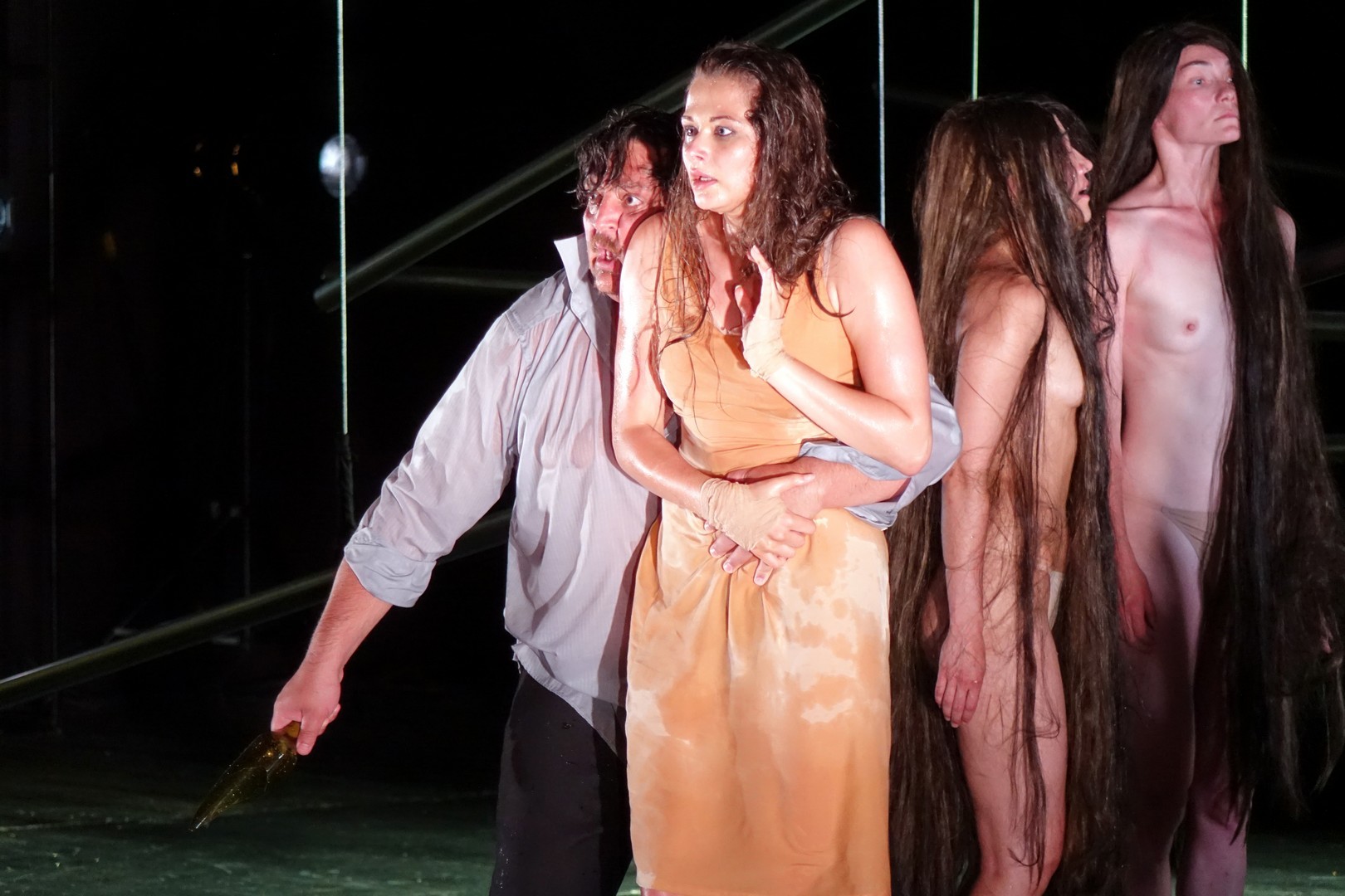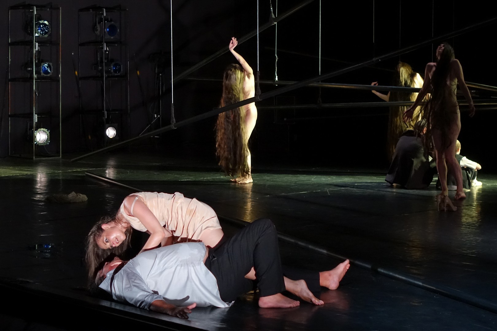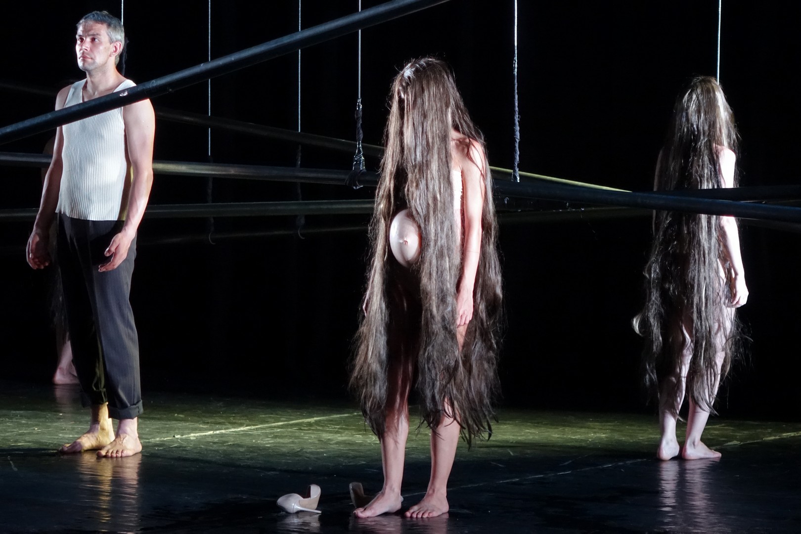 Ez jól kidomborodott a boszorkák koreográfiájában, akik (a férfi nézők örömére) a megszokott létszámot duplázva és csupaszon, földig érő hajjal jelentek meg, és ha ezt a szuggesztív erőt a szláv lélek megmutatkozásának tekintenénk (hasonlót láthattunk a kijevi DAH Színház Előszó a Macbethez című 2005-ös előadásában), sürgősen meg kell említeni a német Ted Stoffer koreográfus szerepét, és azt, hogy ebben a művészi megnyilvánulásban az orosz és a német színház közös tőben gyökerez.