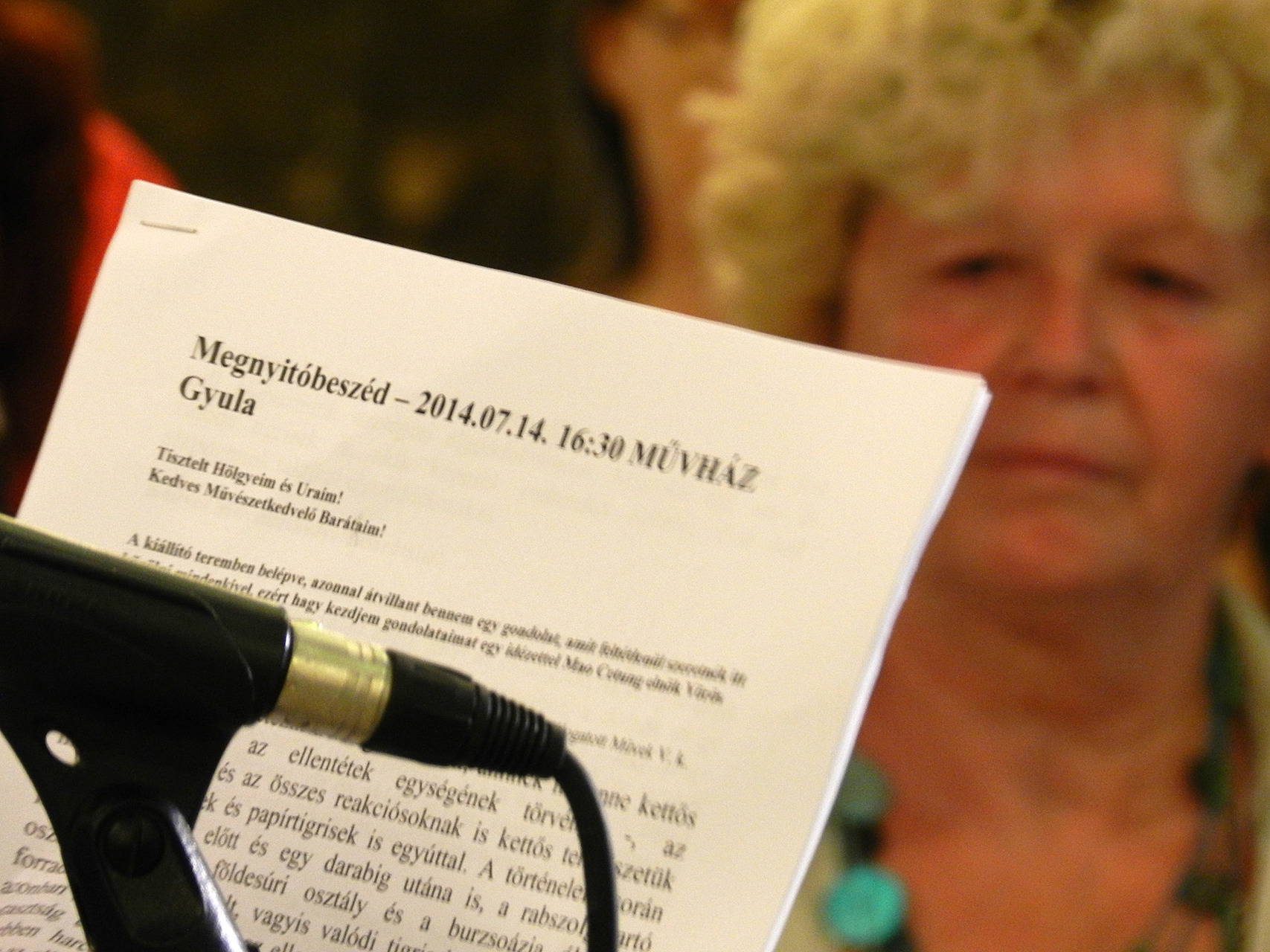 A Focht Anita kiállítását megnyitó Erdődi Ferenc Vilmos egy Mao Ce-tung-idézettel biztatta a közönséget arra, hogy a dolgok mögé nézzen. Vajon hogyan készül egy mű? Mi van egy szegény ápolónő asztalán? Hogyan alkot? – ezekre a kérdésekre kereste a választ beszédében a kreatív elme és alkotó. A válaszokból kiderült: Focht Anita akkor fest, ha van rá ideje, asztalán pedig akrilfesték és számtalanféle ecset hever.