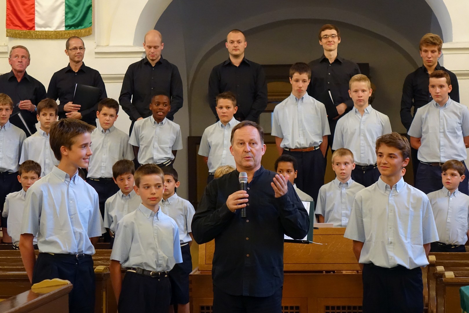 A belga királyi udvarban is szívesen hallgatott Les Pastoureaux fiúkórus bő kétórásra kerekedett gyulai koncertjén Philippe Favette vezényelt, a dalokat orgonán és zongorán Robert De Pauw kísérte.