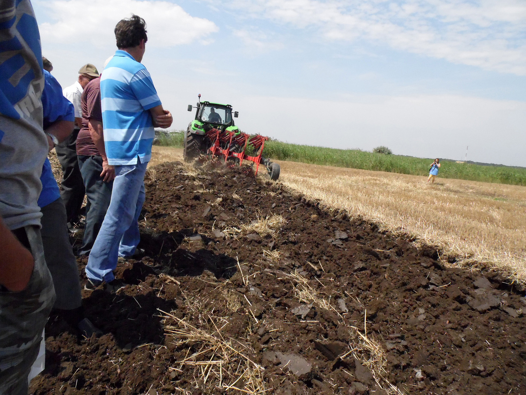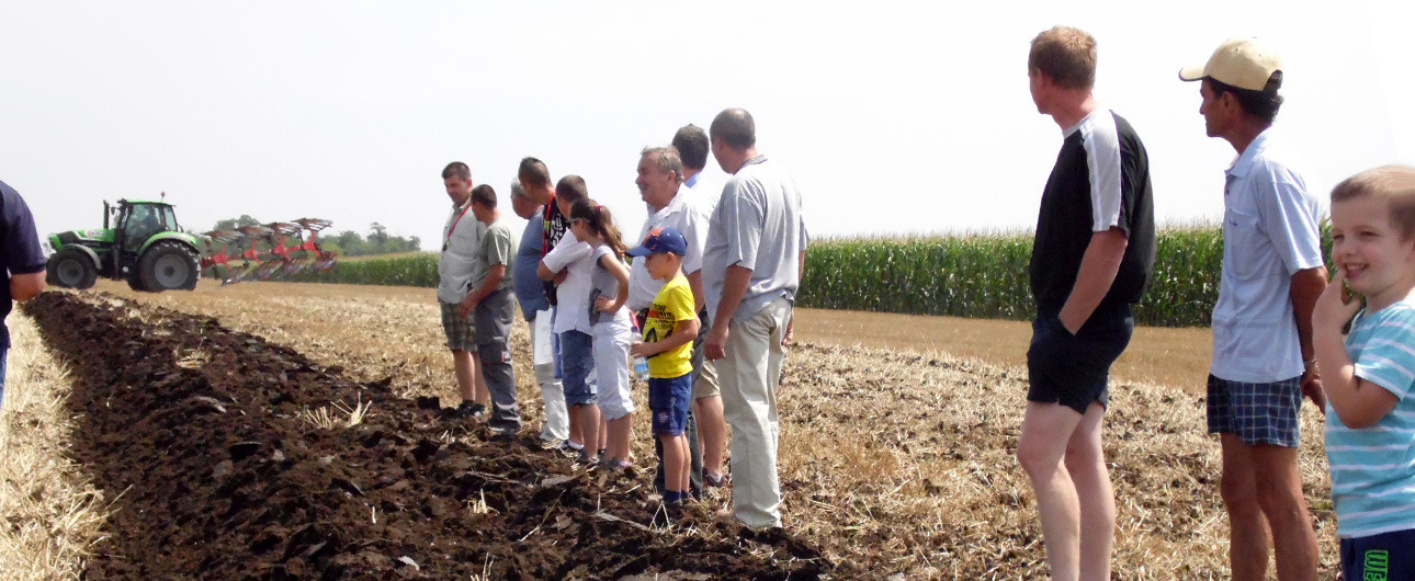 A szántóföldi bemutatóra lovas kocsik szállították a résztvevőket, így az elméletben megismert munkagépek a gyakorlatban is bizonyíthatták tudásukat. A talajmunkák megtekintése után a tanyára visszatérve a Geosan Kft. képviseletében Szalczer József ismertette pár szóban az általuk gyártott mikrobiológiai készítmények előnyeit, melyek használata most a tarlóbontás vonatkozásában különösen időszerűek.