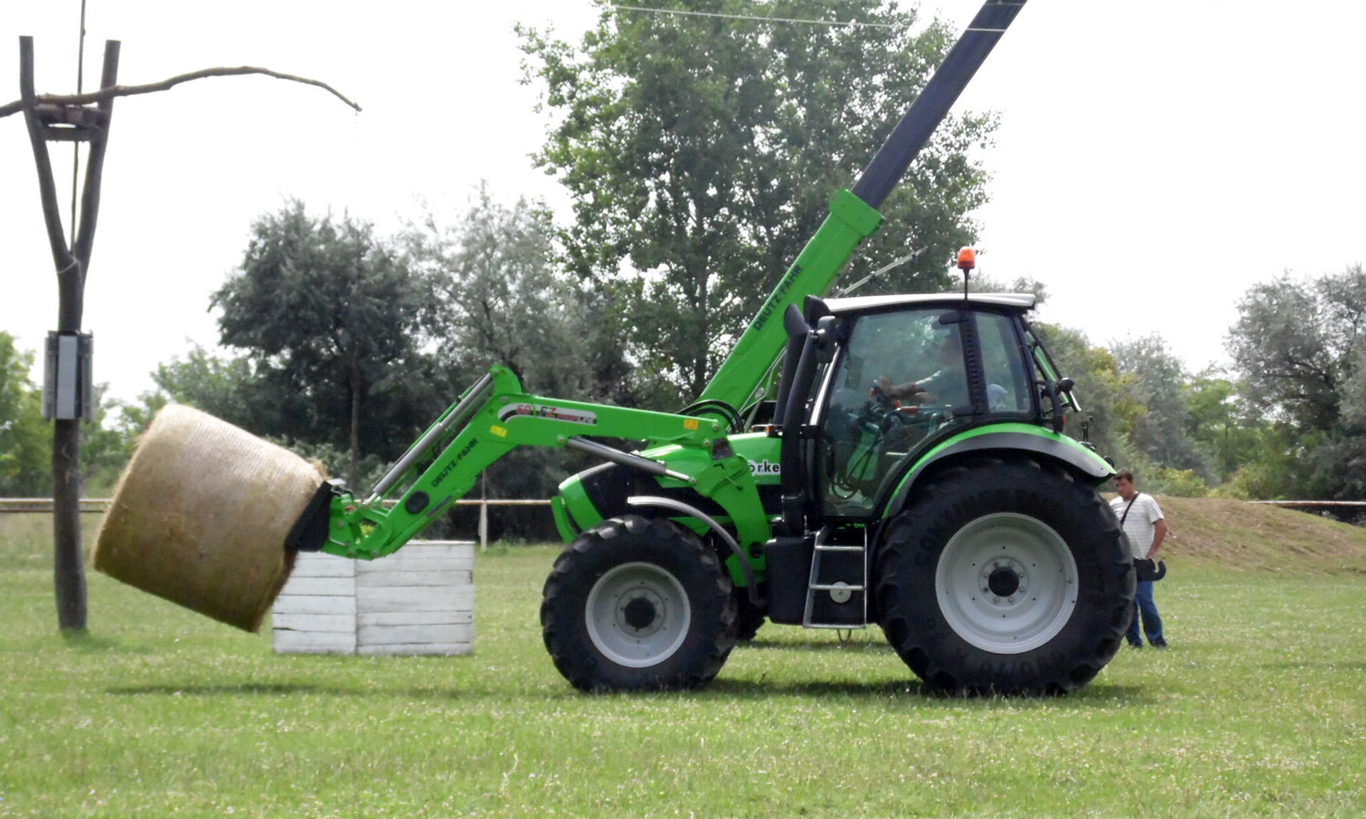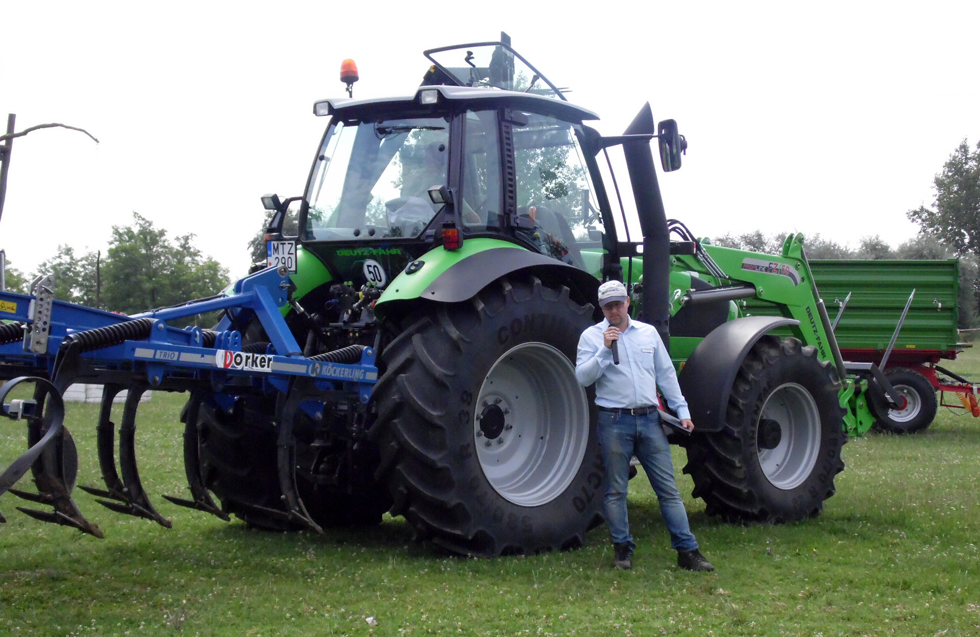 Kiss Gábor, az Agrion termékcsoport termékfelelőse az Agrion gabona- és kukoricavetőgép előnyeit ismertette, miközben az Agrovector 35.7-es homlokrakodója, a T672/1 pótkocsi és a T-023-as bálaszállító is megtekinthető volt.