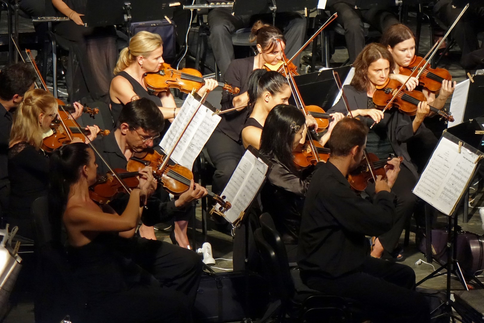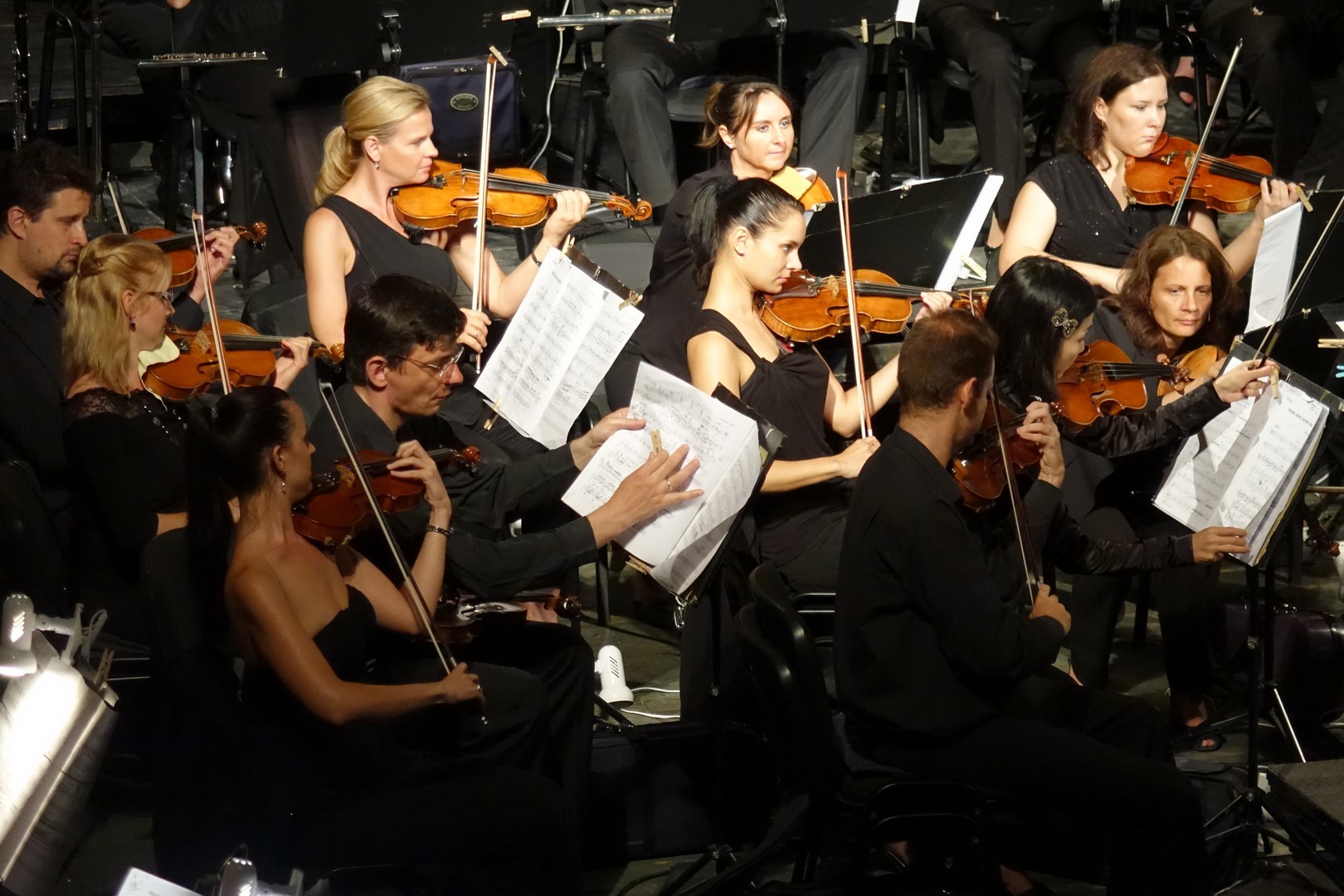 Borús felhők és élénk, vészjósló fuvallat közepette vonult be a közönség a várudvarra, hogy meghallgassa a mintegy hetventagú zenekar előadását. Aki kételkedett benne, hogy ennyien elférnek a vár színpadán, az jól gondolta: míg a vonósszekció egy része a keskeny oldalszínpadra került, a rézfúvósok hányada a színpad feletti karzatra kényszerült. A Dohnányi Ernő zeneszerzőről elnevezett, több mint húszéves szimfonikus zenekar azonban áthidalta a kényelmetlenségeket – az esten nem utoljára.