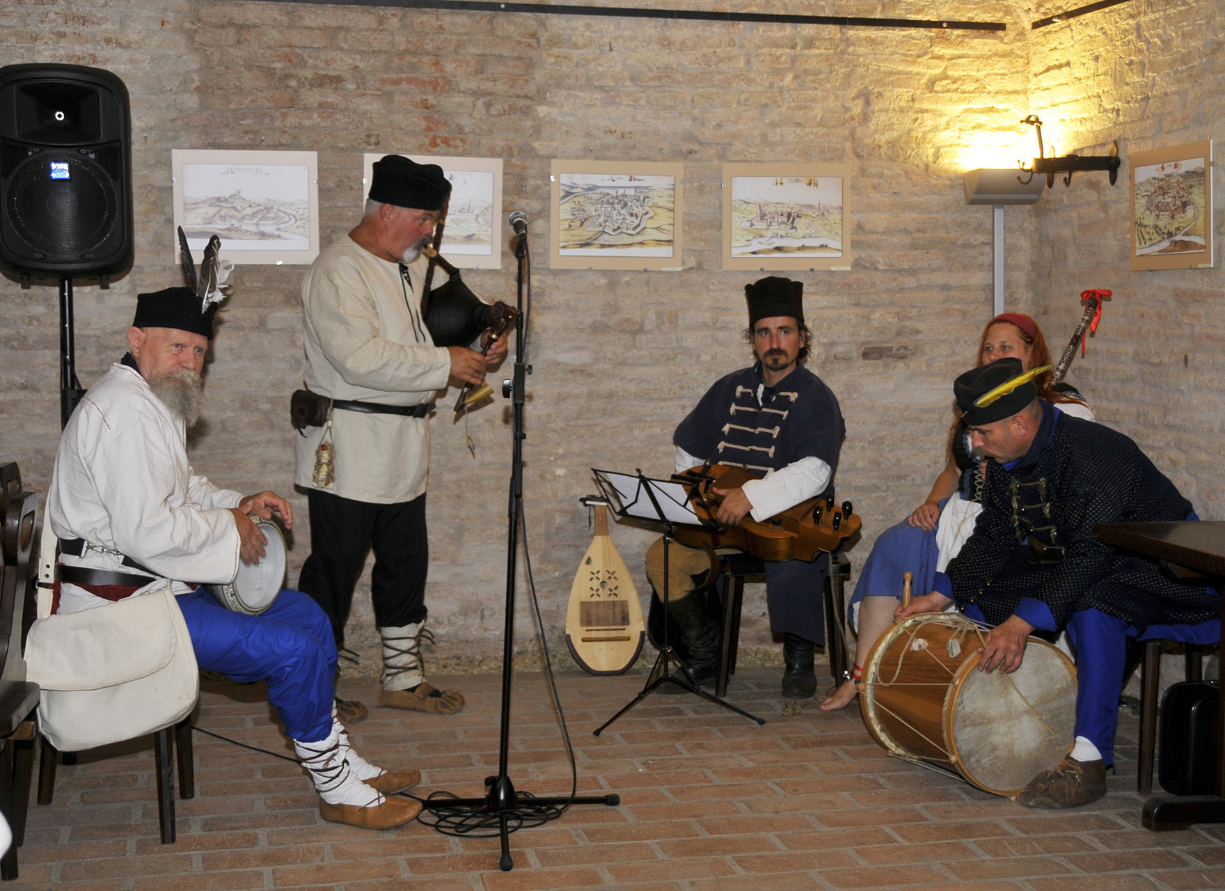 A megnyitó beszédek előtt s után a Turba Luporum zenekar korhű hangszerekkel és zenével szolgált a metszetekből álló tárlat hangulatos megtekintéséhez, amelyet augusztus 12-ig még bepótolhatnak a gyulai vár borozóban.