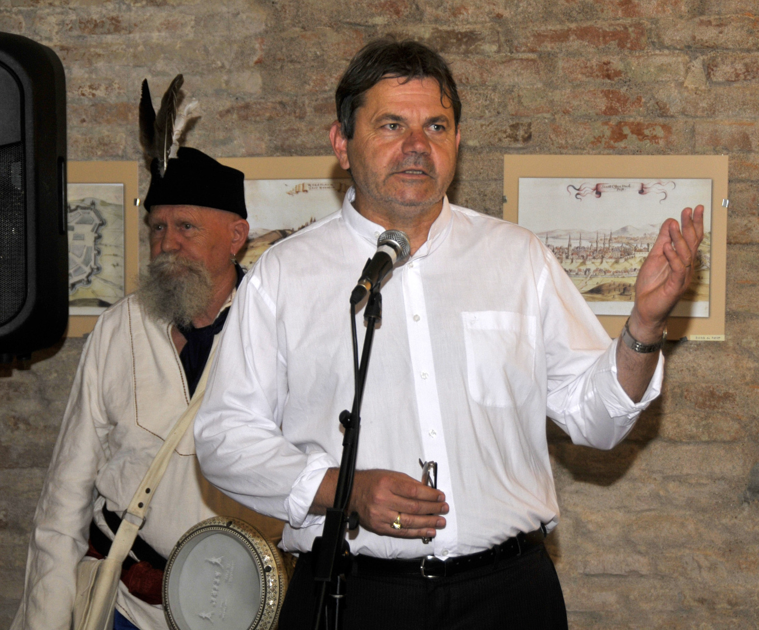Dr. Csikány Tamás hadtörténész, a MTA doktora köszöntőjében a XVI. és XVII. századi korszak katonáskodó emberéről mesélt, akik ezekben a várakban éltek, harcoltak, védték és sokszor visszafoglalták azt. Beszédében kitért a falakon látható, a magyar történelemben jelentős és kevésbé komoly szerepet játszó erődítményekre, amelyekhez kapitányok történetei is kapcsolódnak, úgy mint Kanizsához Thúry Györgyé, Tatához Tasso Hannibalé, vagy Gyulához Kerecsényi Lászlóé.