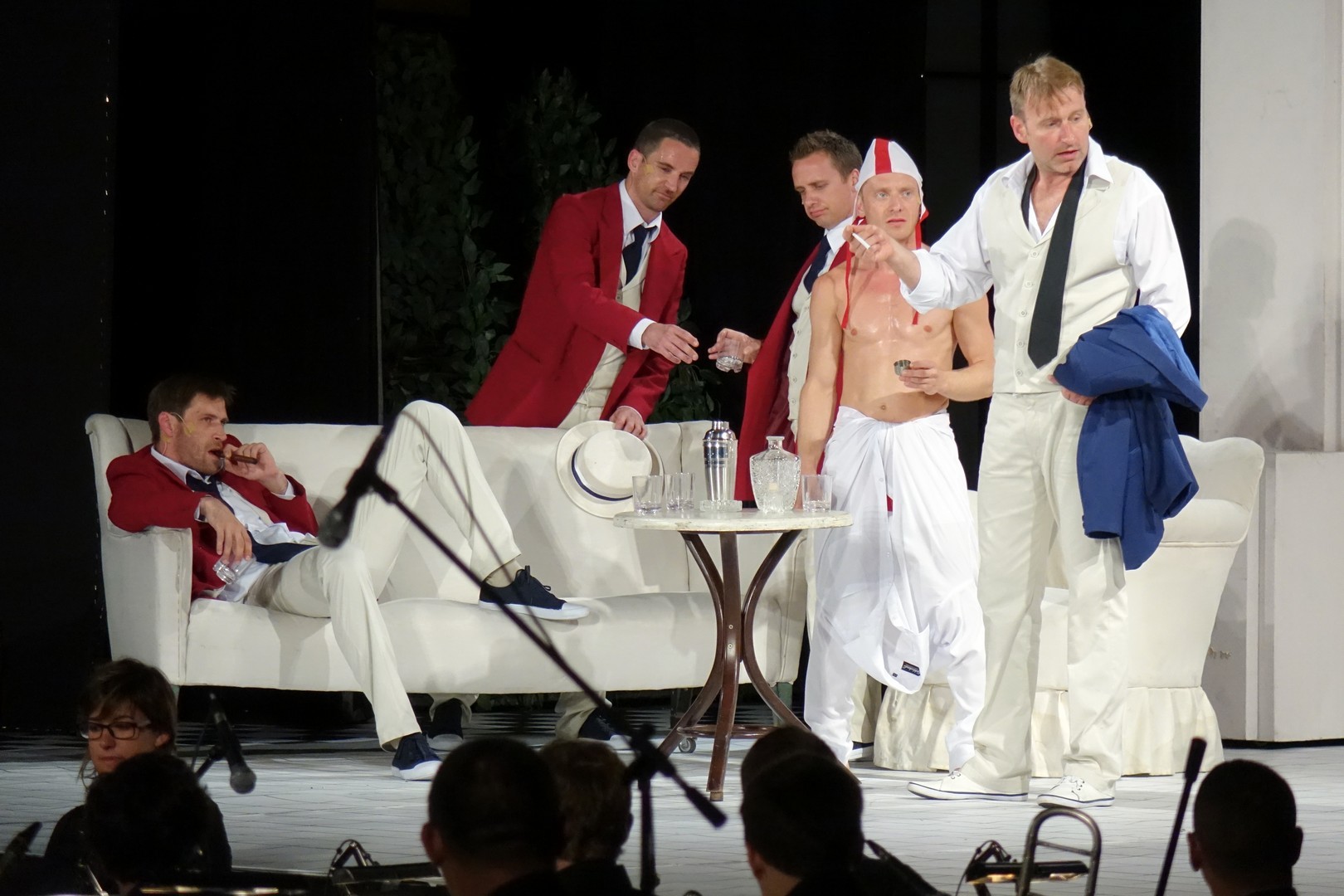 A minden mozzanatában alaposan kidolgozott jelenetek és a zenei betétek meg is kapták a nyíltszíni tapsot, Földes Eszter, Sághy Tamás minden pillanatában szerethető volt, a több karaktert is magára öltő Juhász Illés pedig a villa gondnokaként megjelenő Bence szerepében brillírozott leginkább. Külön figyelmet érdemel Sántha Borcsa ötletes díszletmegoldása, míg a remek koreográfia Blaskó Borbála munkáját dicséri, na és persze a 16 tagú, fúvósokból álló zenekar, melynek tagjai szintén kimagaslót produkáltak, de ennek ellenére is picit soknak tűnik a másfél órás első felvonás.