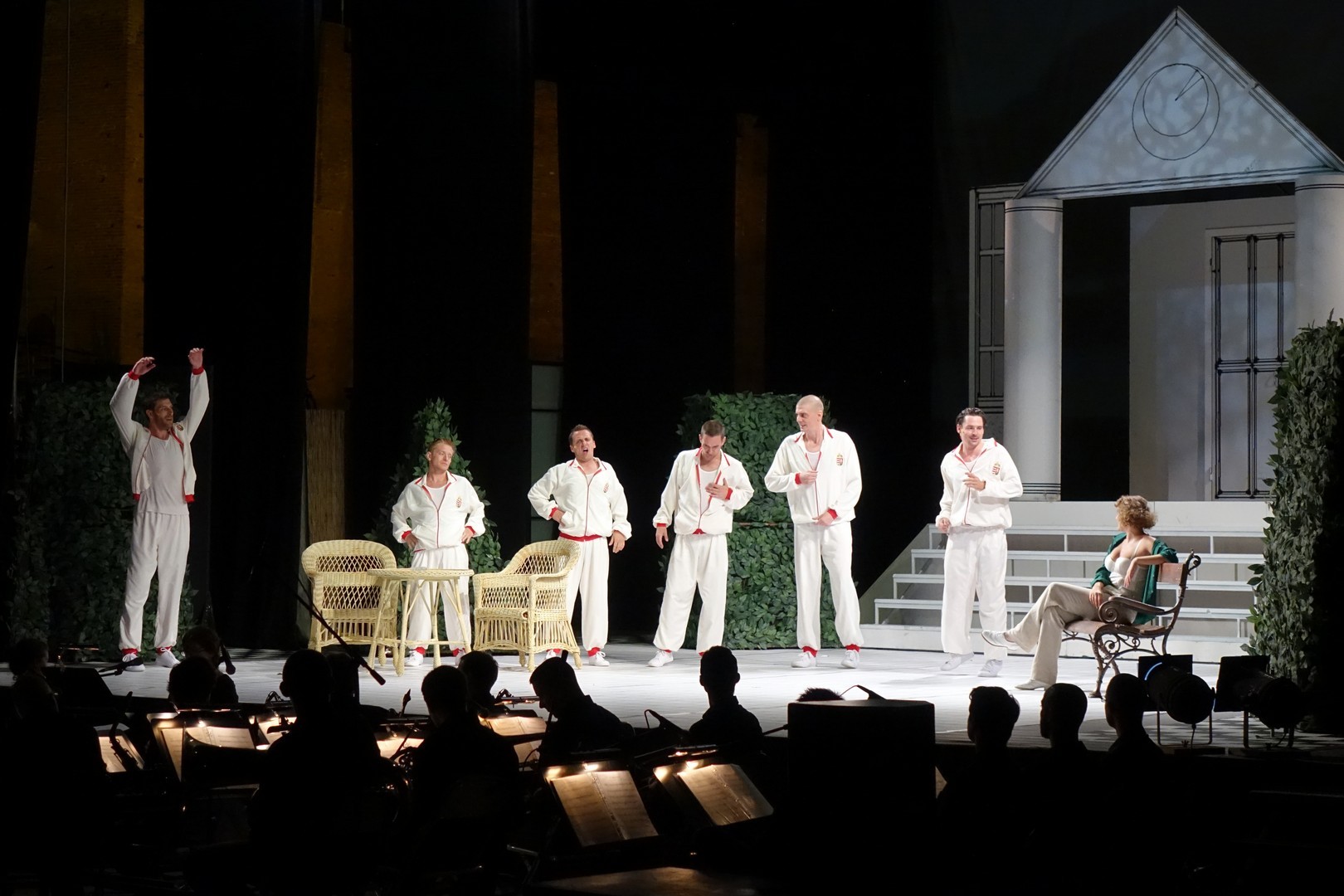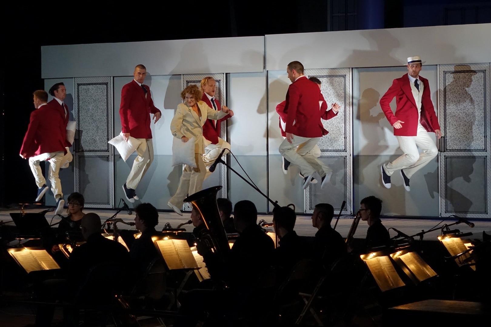 Azonban amit a produkció vállal, azt maradéktalanul megtartja, hisz a könnyed, nyáresti szórakoztatást mindvégig magas szinten tálalja. Már amennyire a bemutató estéjén erre lehetőség nyílt, ugyanis az alig megkezdődő második felvonásra az ég is áldását adta, egyre szaporábban hullani kezdő eső formájában. A rendezőt ezzel utolérte az előző napi sajtótájékoztatóra üldözőbe vett rémülete, hisz az aggódva lesett időjárási előrejelzés a főpróbát hivatott elmosni, ám az egy nappal később, a bemutatóra érkezett meg. Így az, hogy a második felvonás végére ki kivel talál párra, remélhetőleg a másnapi előadáson már kiderült, de a nyári játékok kontra időjárás mérkőzésében egyelőre 1:0 az égiek javára írandó.