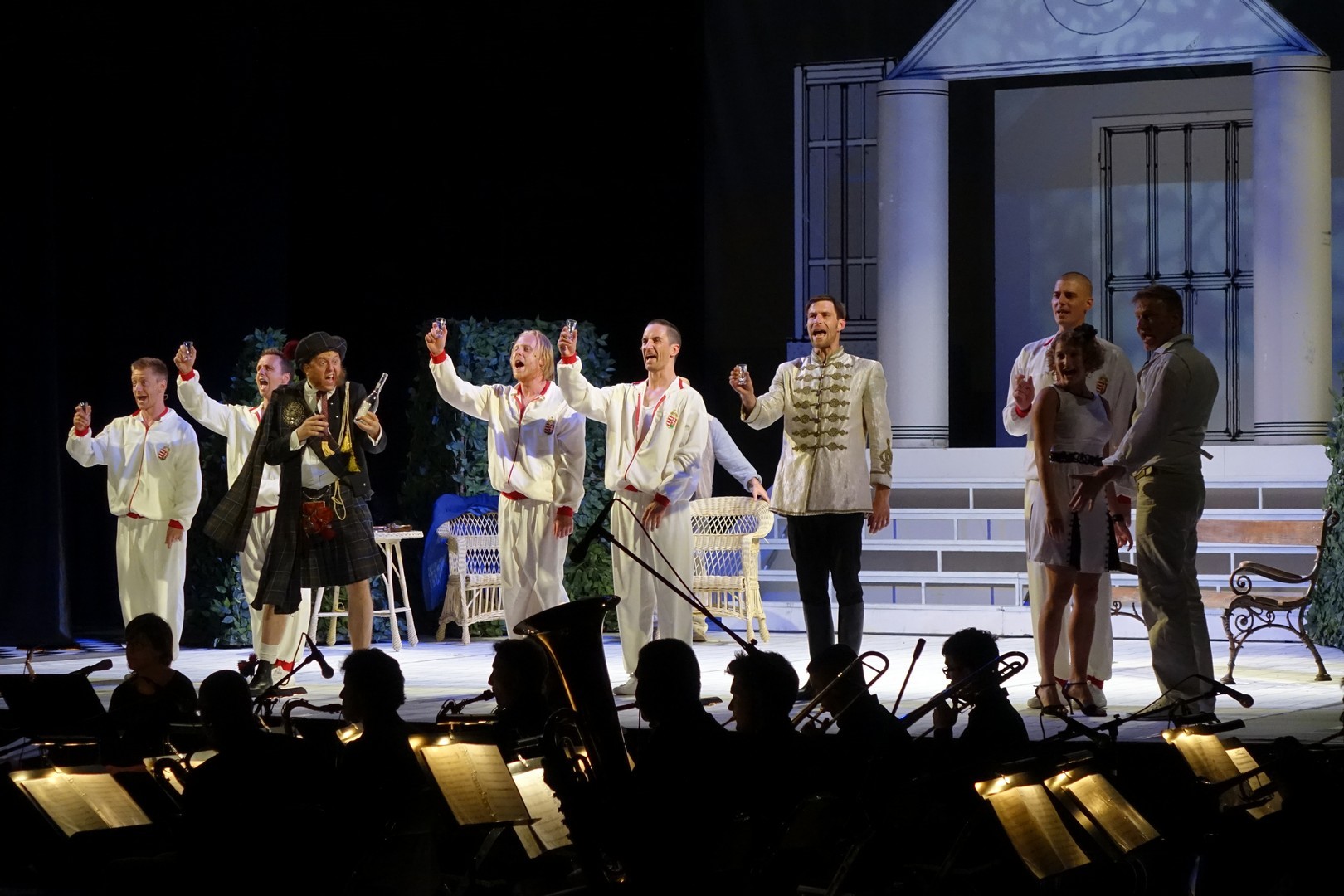 A Gyulai Várszínház veretes műsorai között időnként elfér egy-egy vígjáték is, persze, szigorúan az igényesség kritériumainak megfeleltetve. Így készült el az 51. évad harmadik bemutatójaként – egy Shakespeare-mű és Szerb Antal Utas és holdvilág regényének színpadi adaptációja után – az 1936-os berlini olimpián győzedelmeskedő magyar vízilabda csapat és egy szép skót hölgy fordulatos kalandjairól szóló zenés vígjáték a székesfehérvári Vörösmarty Színház előadásában, Bagó Bertalan rendezésében. Az eredetileg Ábrahám Pál - Harmath Imre - Szilágyi László - Kellér Dezső által jegyzett, 3:1 a szerelem javára című színpadi műből film is készült, most azonban – alapos leporolás után – egy igencsak mozgalmas előadásban látható újra.