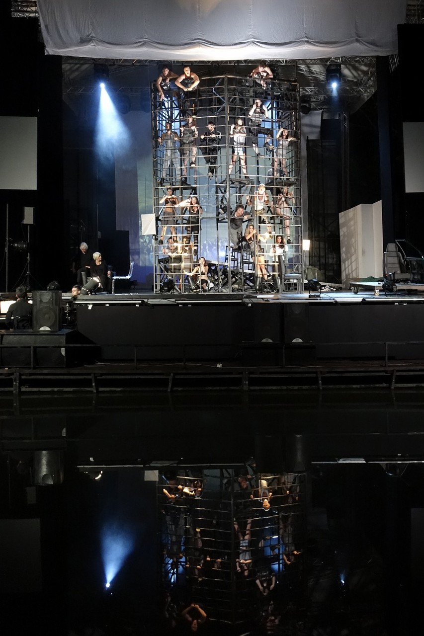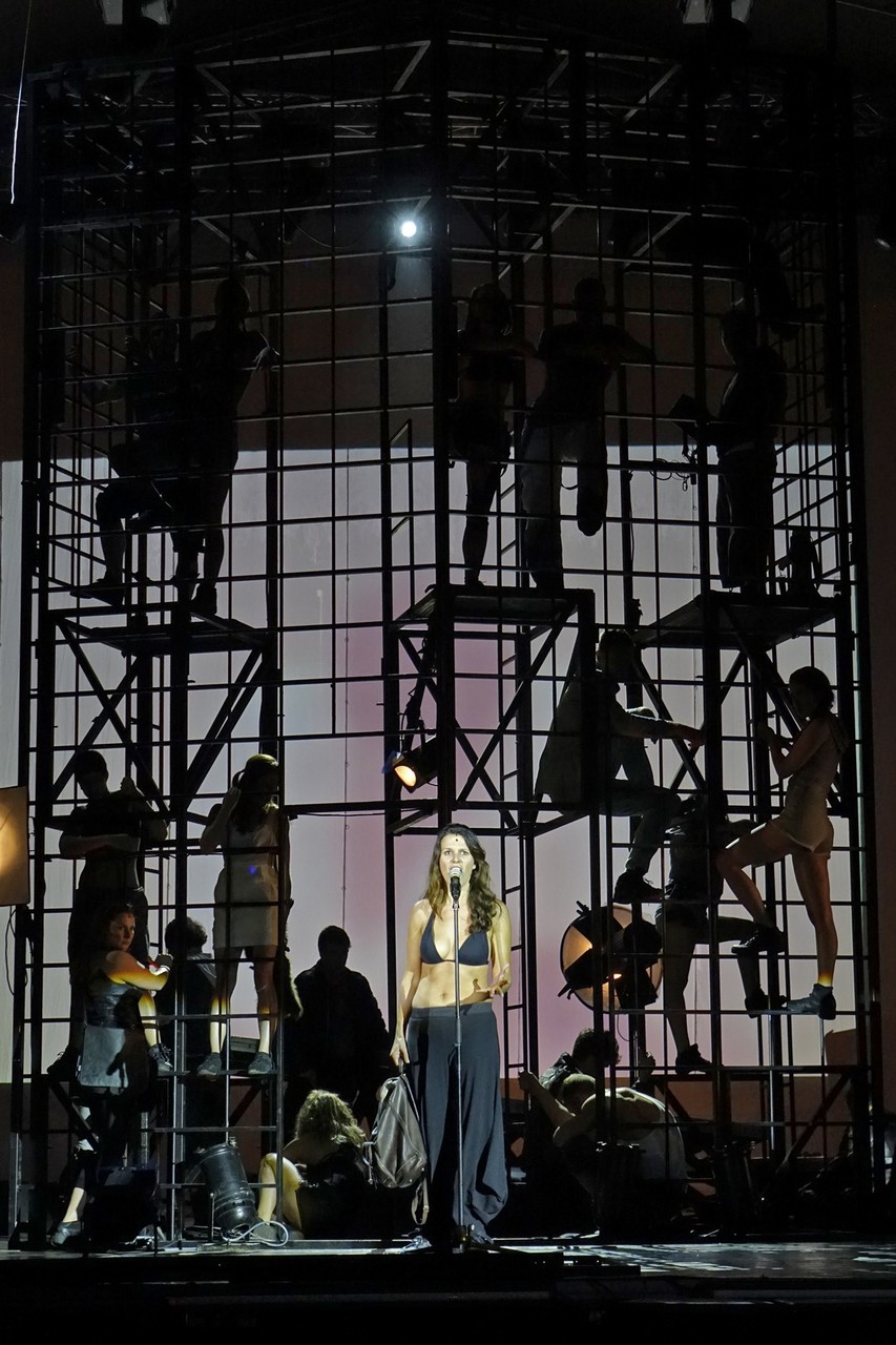 A modernségében is klasszikus díszlet, a fém rácsok, pallók ketrecüzenete a darabban lobogó szabadságvágy bezárása, ahogy negyven évvel ezelőtt szalmabálák közé szorult az ifjúság szenvedélye, duzzadó életereje. A szín nélküli, fekete-fehér jelmezek egy jövőbeli rockfesztivál képeit is sejtet(het)ik, szemben Almási Éva és Tahi Tóth László letisztultságot, a lezárás nyugalmát sugalló jelmeztelenségével. Mert ifjakból vének leszünk, múlik a szenvedély, csak a szerelem örök, és a rock and roll.