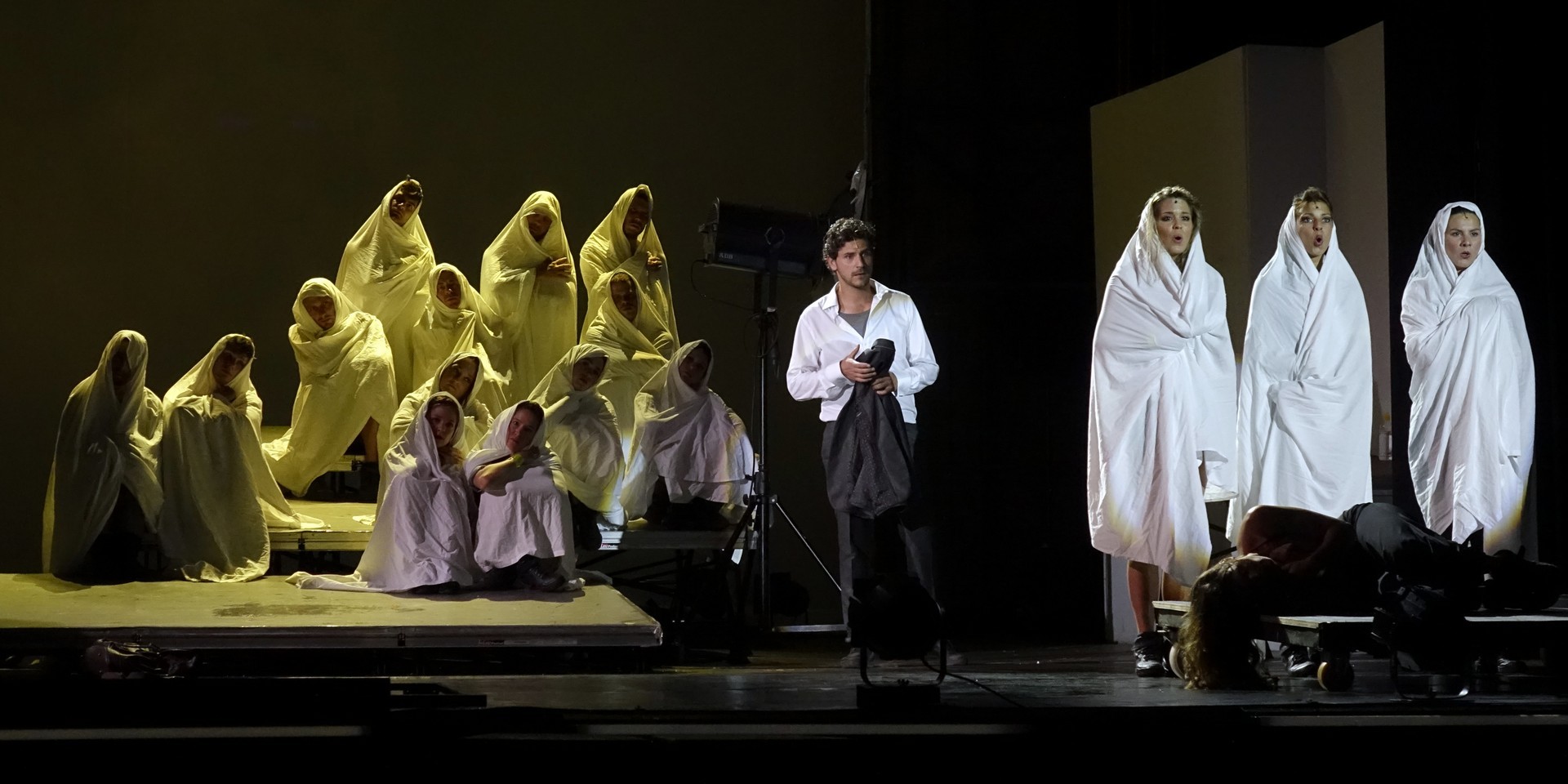 Elavult, de mégis varázsa van, nyilatkozik Presser Gábor a darabban bemutatott egyik archív felvételen, amely a Képzelt riport háromszázadik bemutatóján készült. Elavult, mondja a zeneszerző a hétesztendős sikertörténet és a közönség lankadatlan érdeklődése ellenére. Elavult, fogalmazták meg a darab bírálói is időnként. Igen, talán, na de ott a varázs. Ezért várakozott türelmesen, tömött sorokban az előadás előtt egy szűk órát a Gyulai Várszínház publikuma, hogy bebocsátást nyerjen a tószínpad nézőterére augusztus 8-ának estéjén. Ezért lett mindkét gyulai est telt házas, pótszékekkel. Déry Tibornak a pop és a rock zenei világát elutasító, a hippikultúrát negatívan ábrázoló, propagandaműnek is titulált kisregénye egyszerre mutatja meg az ifjúságra máig ható értékválság erejét és tüneteit, a valóságos és szimbolikus útkeresés elengedhetetlen, ugyanakkor mindenkor eredménytelen, éppen ezért értelmét veszett voltát.