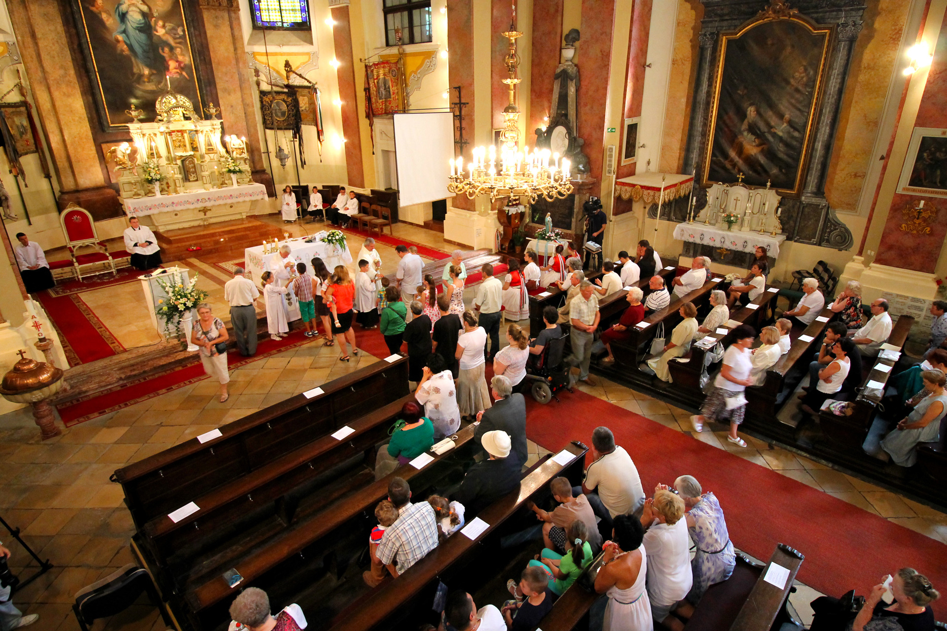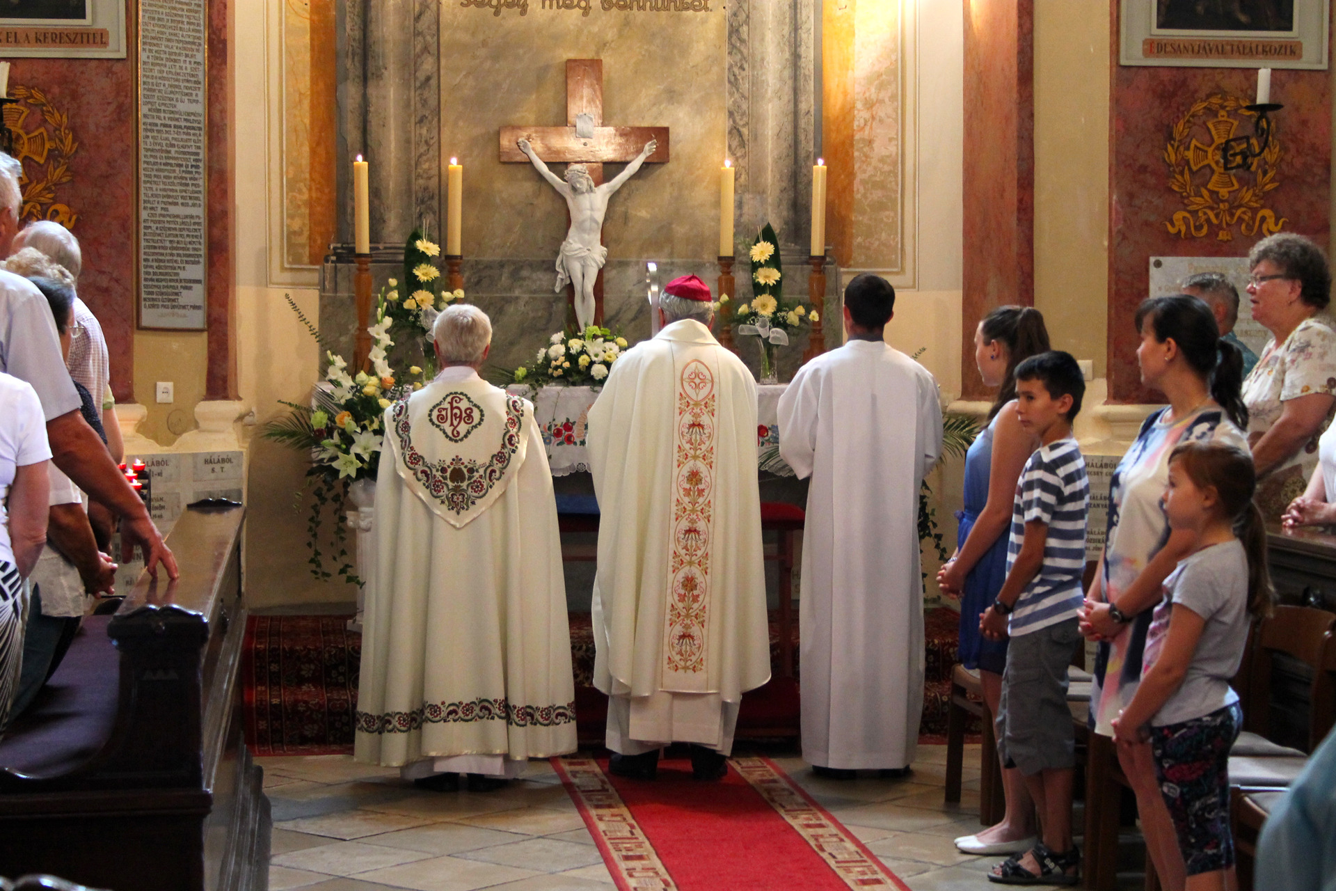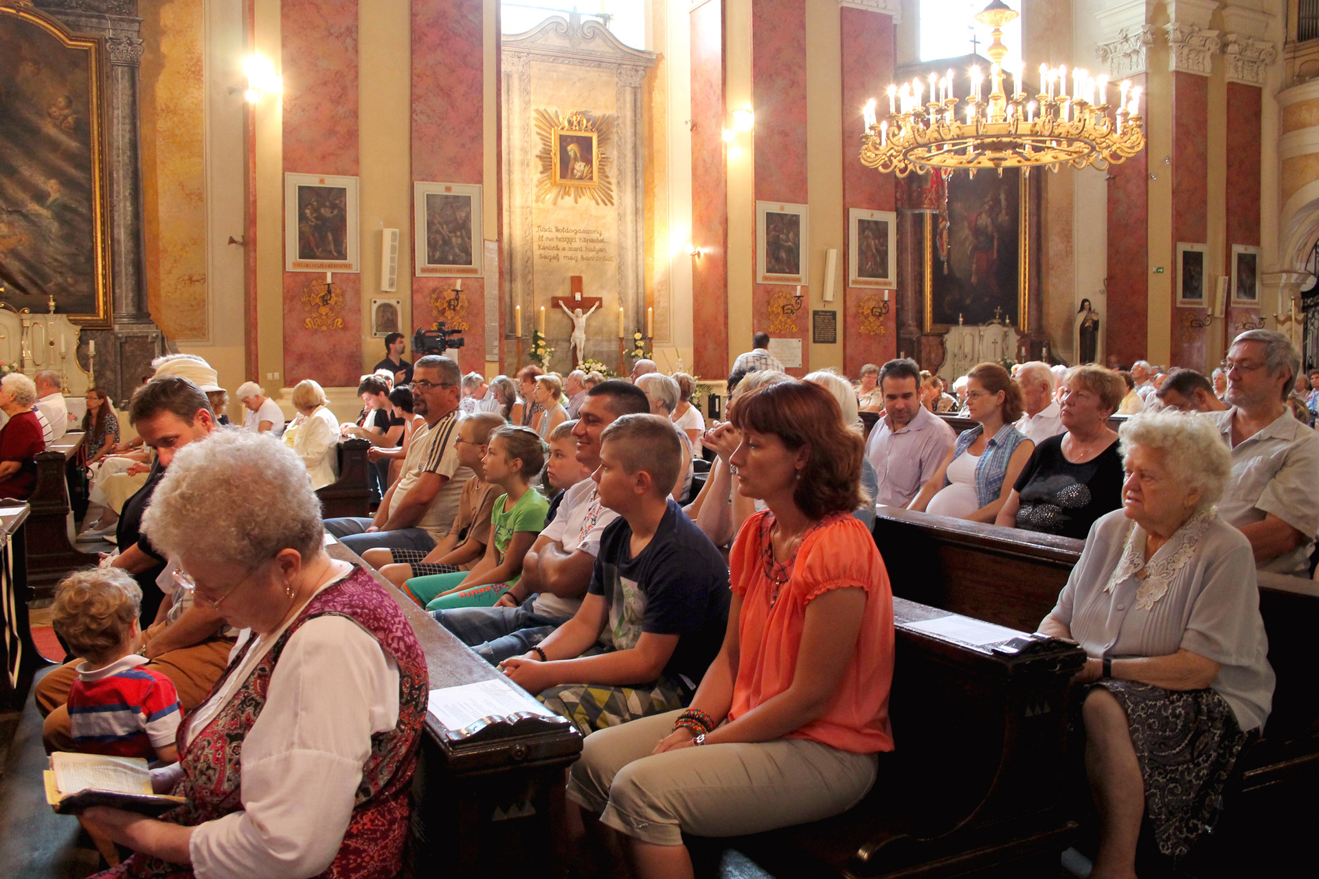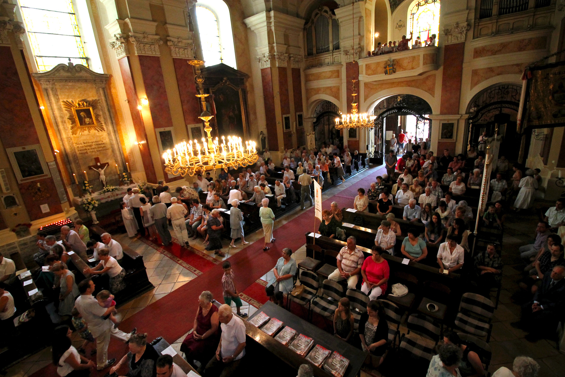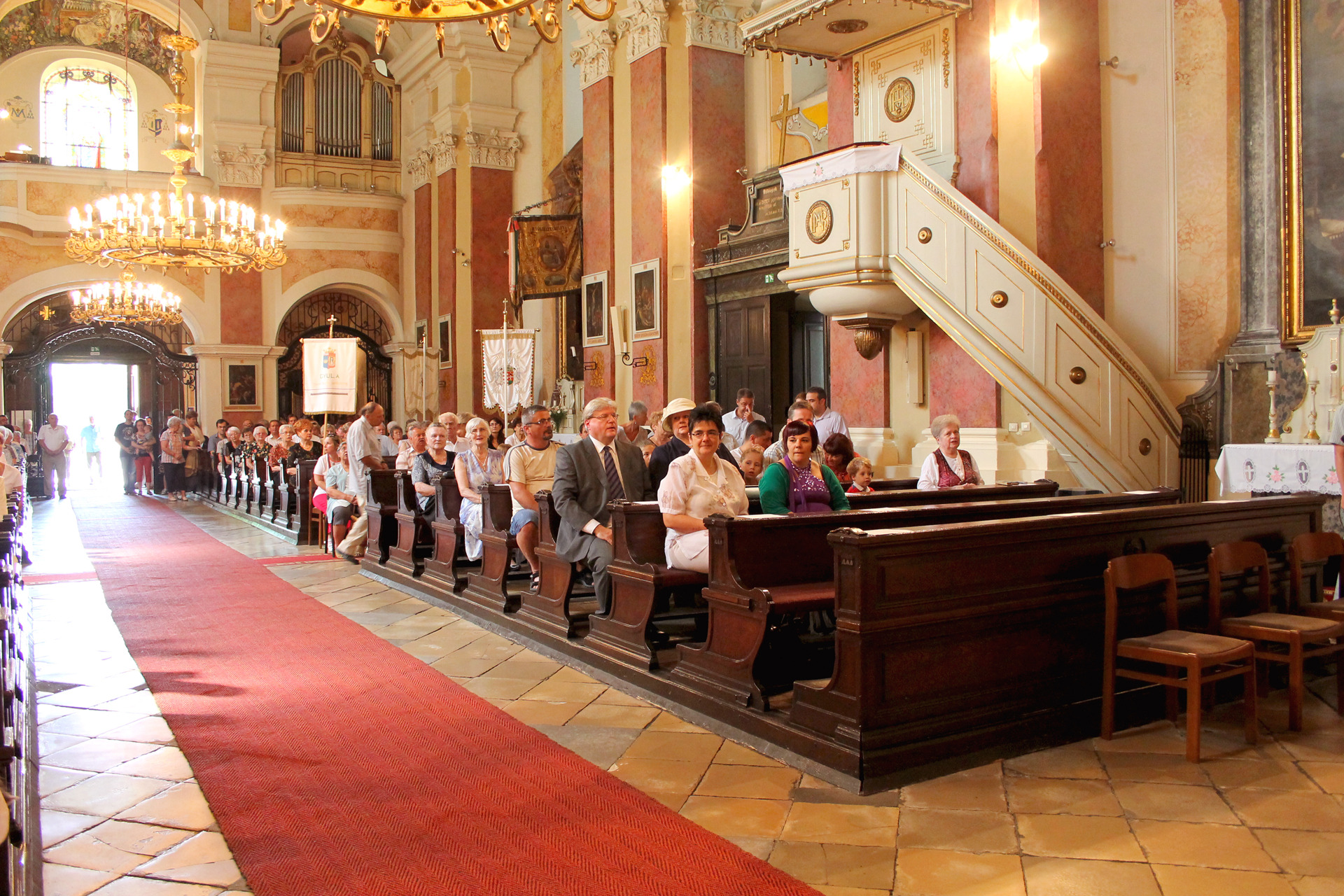 A Gyulai Nádi Boldogasszony templom nagybúcsúján, a bevonuló miséző püspök és kísérete először a Nádi Boldogasszony kegyoltár elé járult, majd a főoltárhoz lépett és a Szűzanyát ábrázoló óriási főoltárkép előtt tartotta meg az ünnepi szentmisét, amelyen hívők és zarándokok – ez alkalommal – elhunyt szeretteikért imádkoztak.