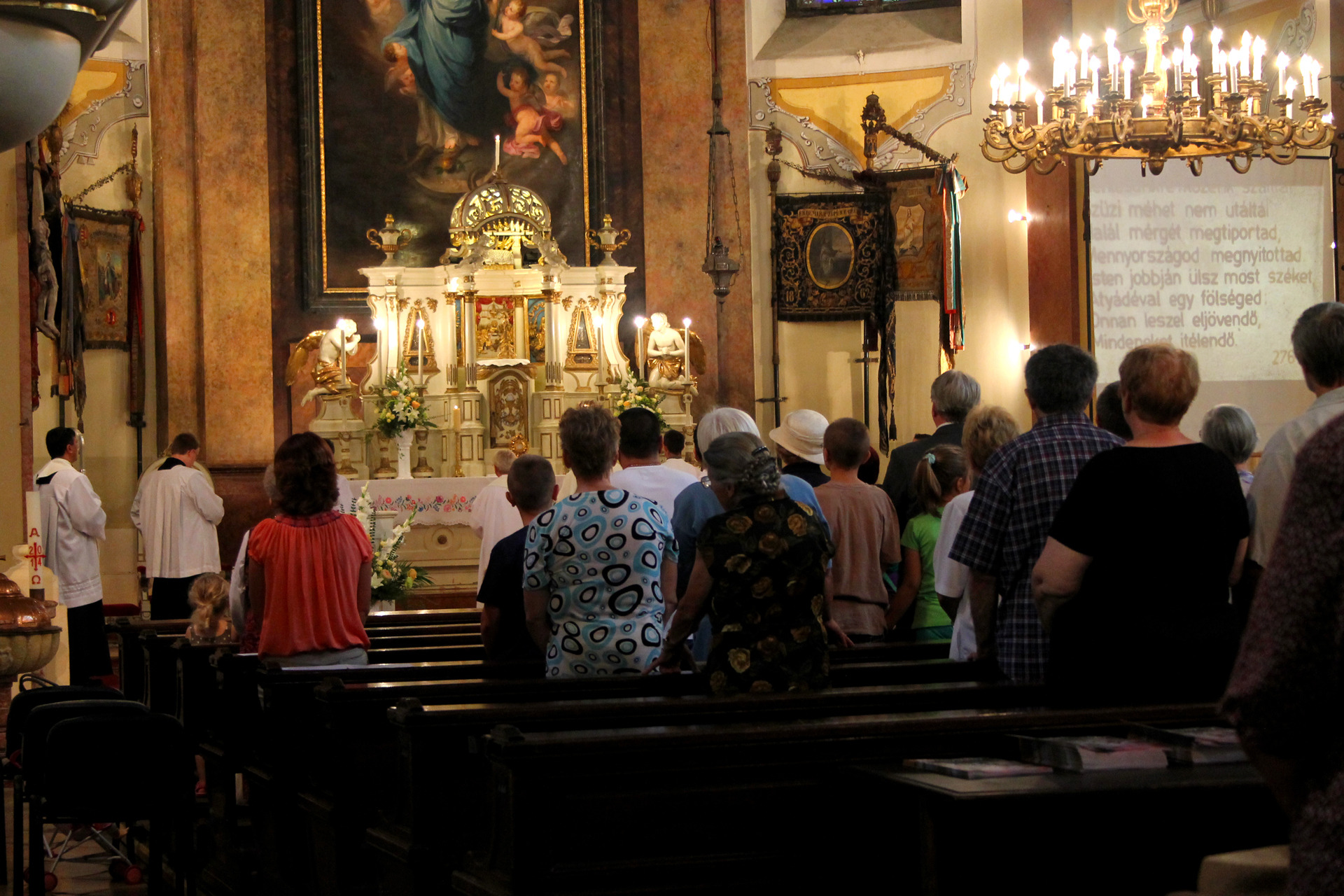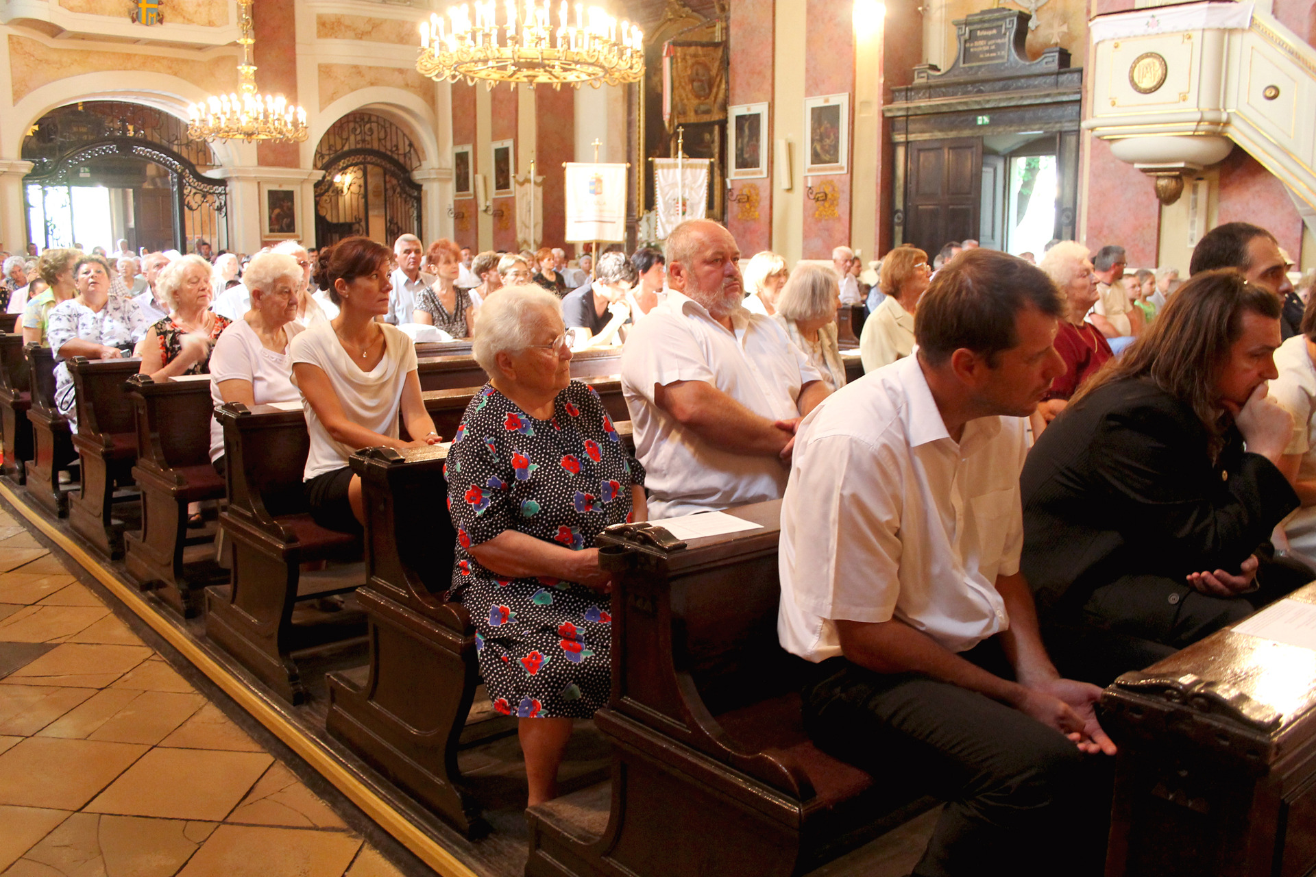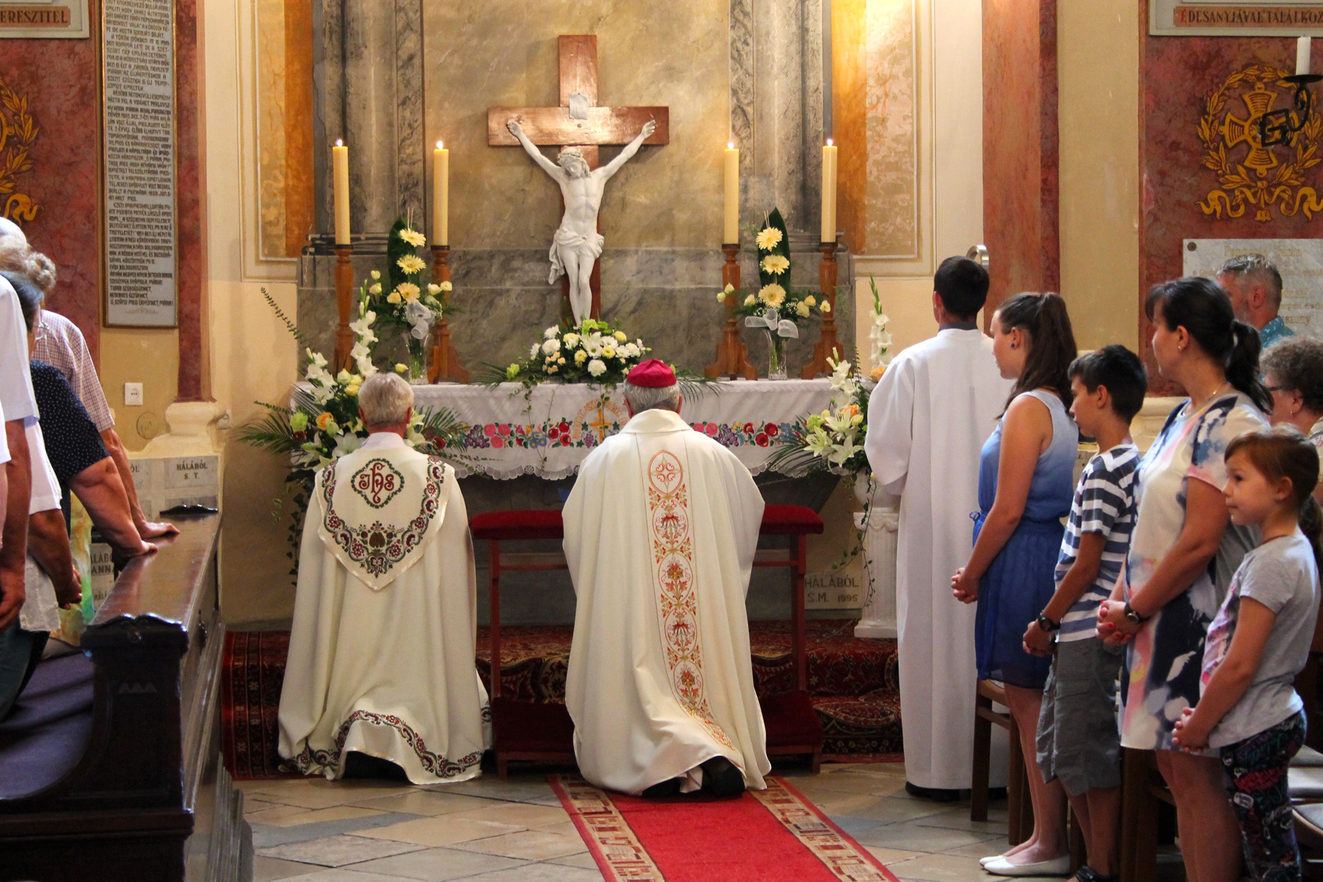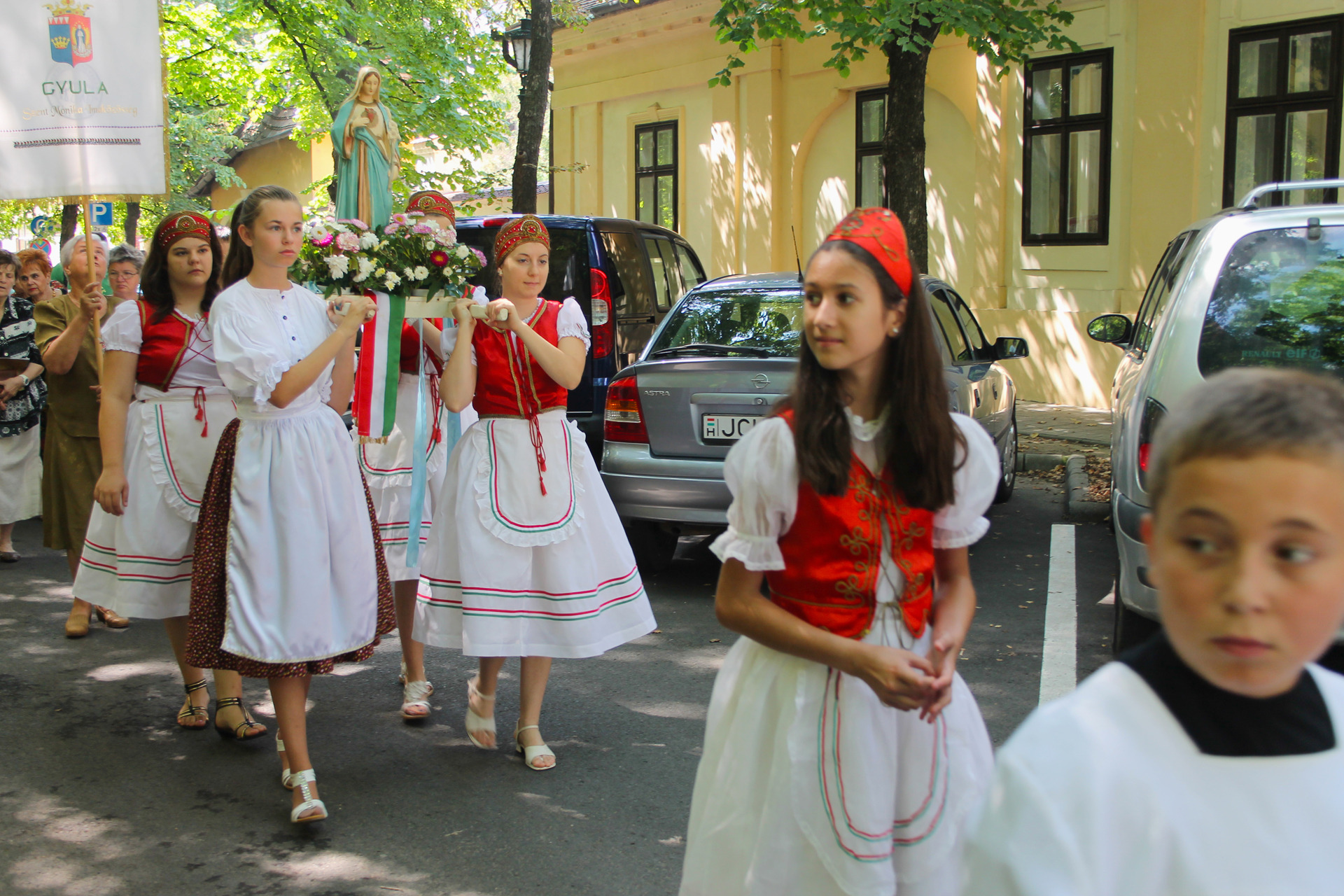 A Gyulai Nádi Boldogasszony templom nagybúcsúján, a bevonuló miséző püspök és kísérete először a Nádi Boldogasszony kegyoltár elé járult, majd a főoltárhoz lépett és a Szűzanyát ábrázoló óriási főoltárkép előtt tartotta meg az ünnepi szentmisét, amelyen hívők és zarándokok – ez alkalommal – elhunyt szeretteikért imádkoztak.