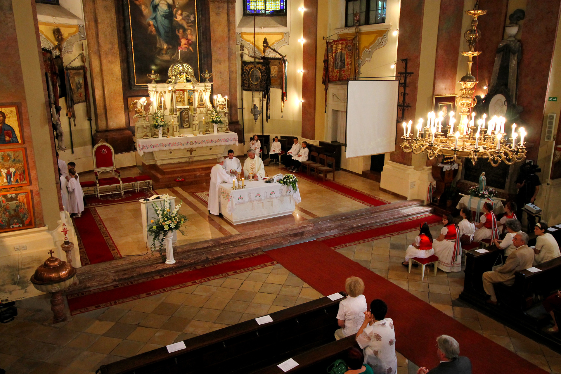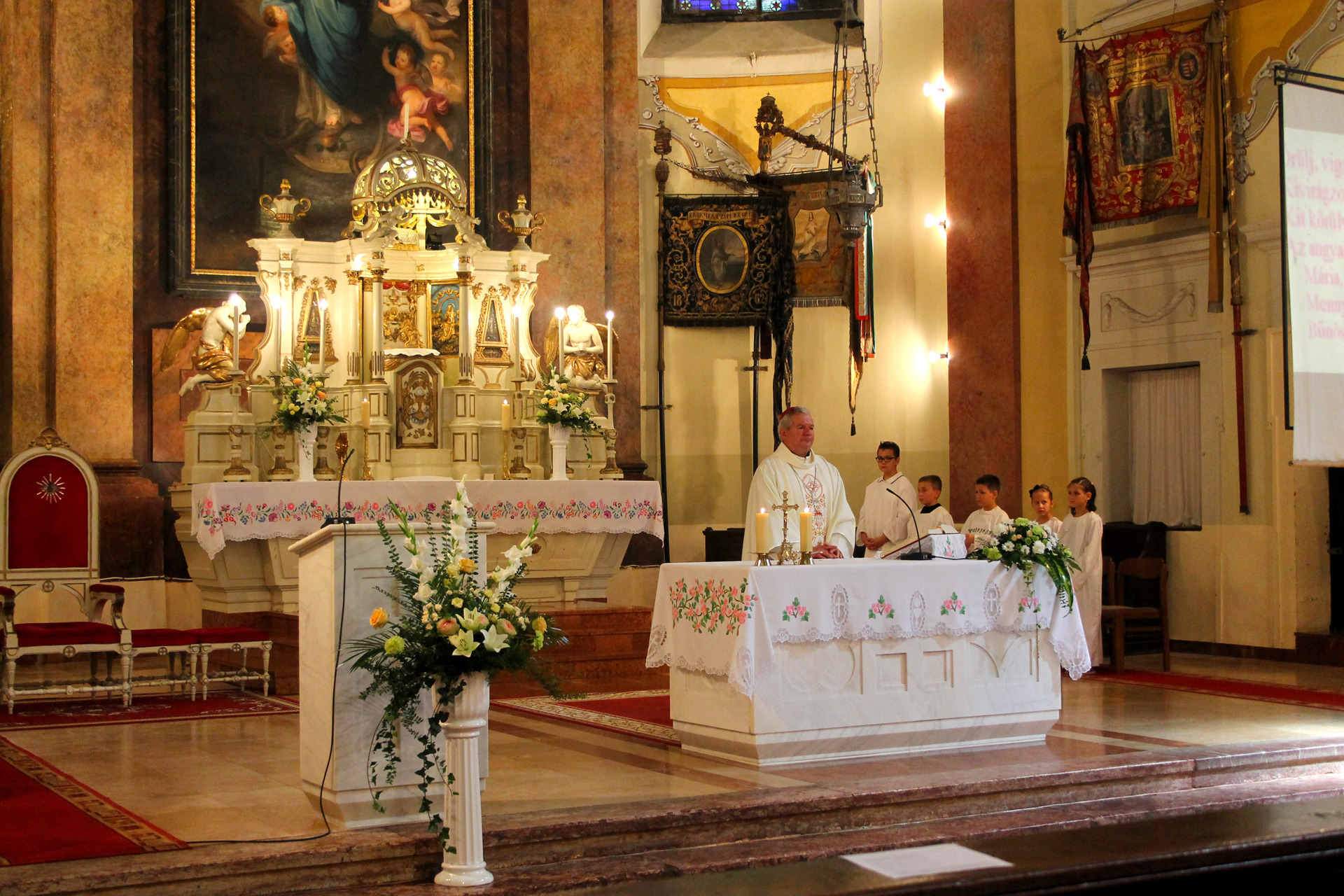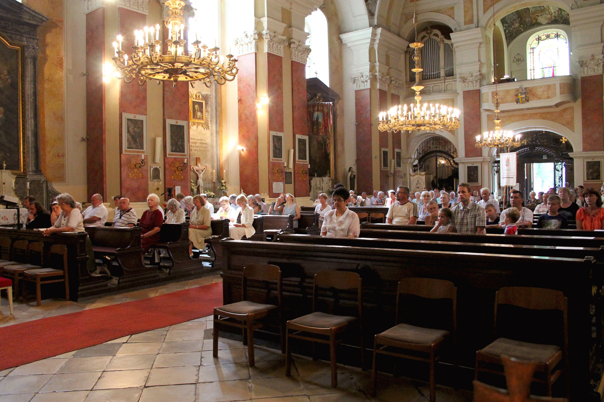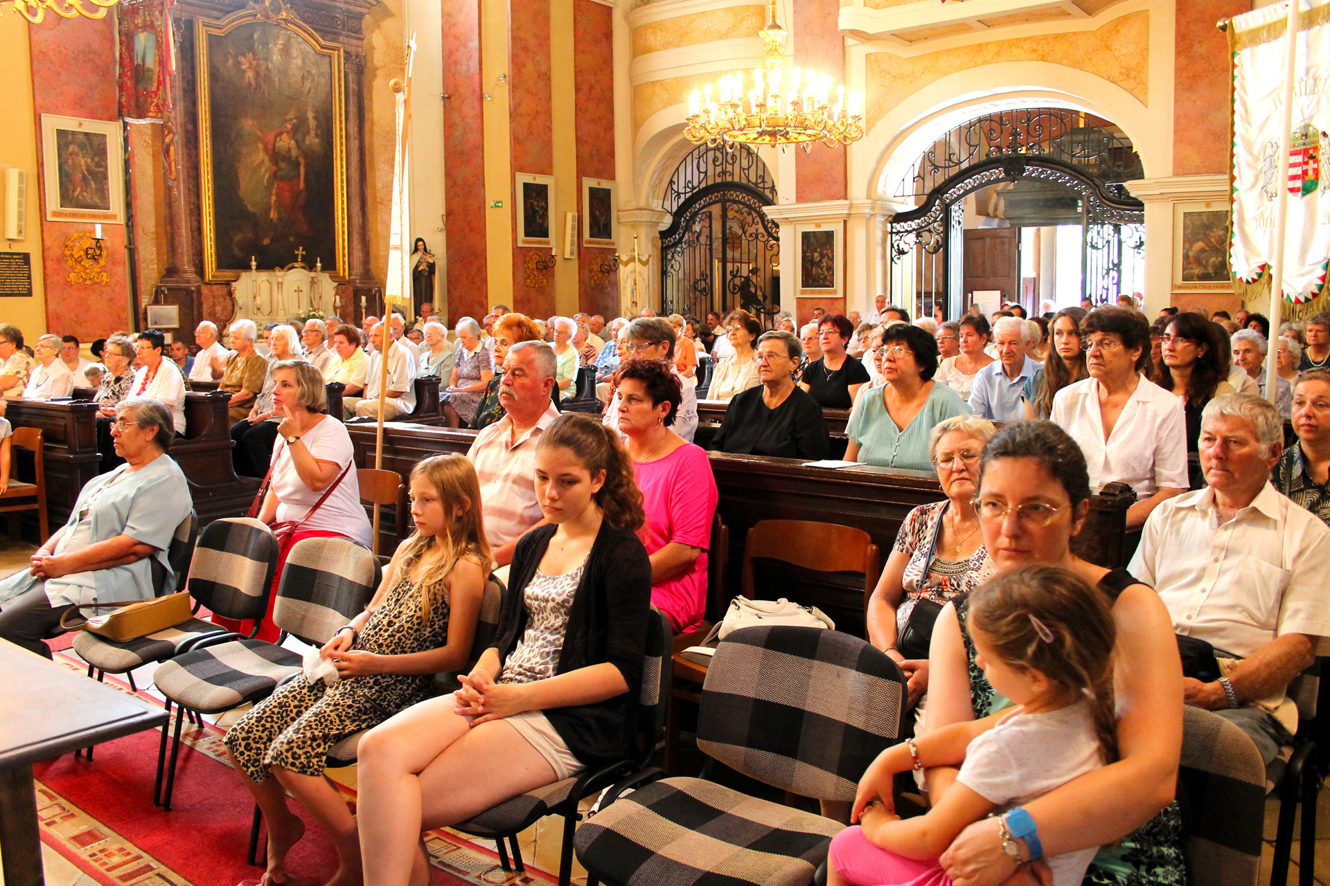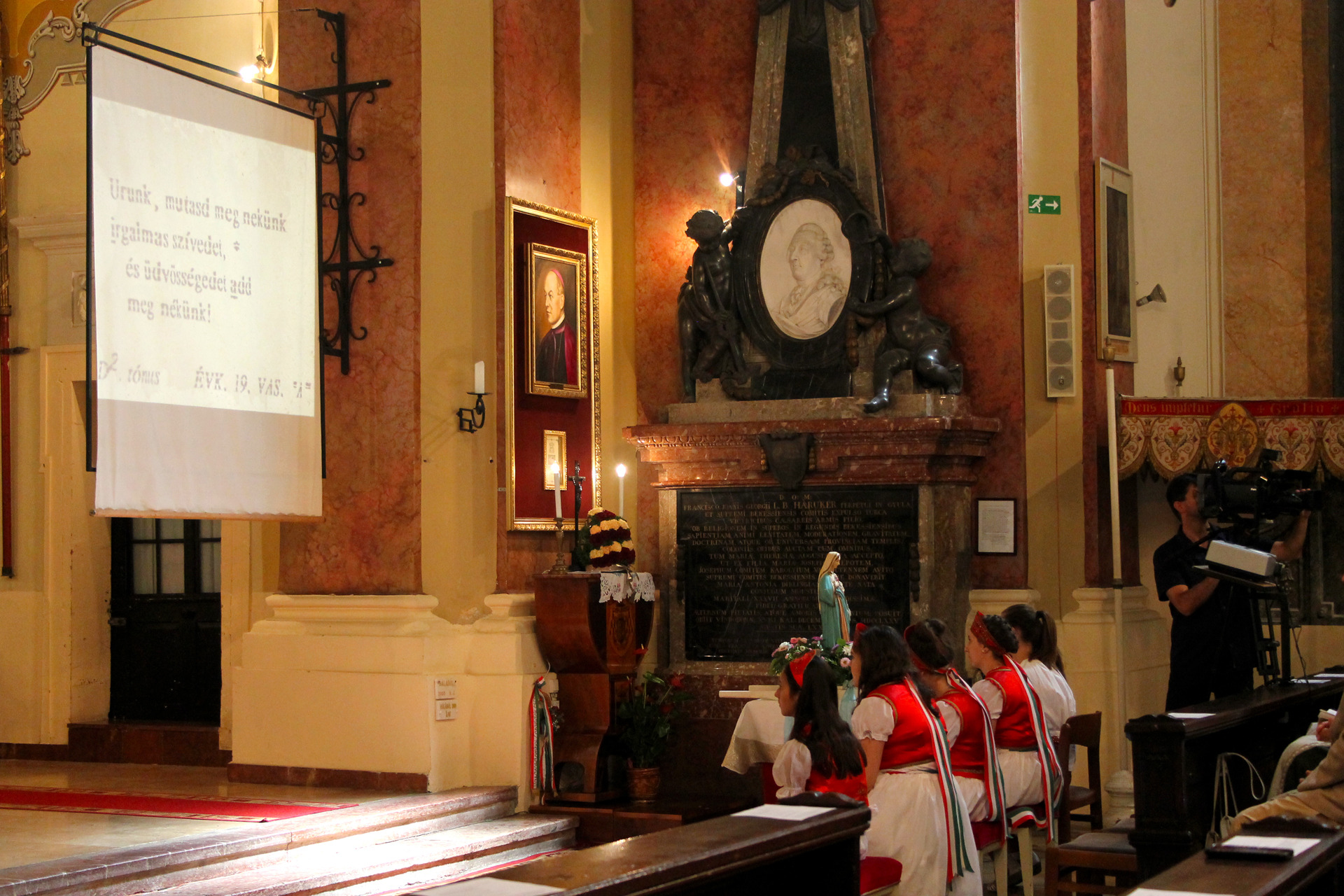 A Gyulai Nádi Boldogasszony templom nagybúcsúján, a bevonuló miséző püspök és kísérete először a Nádi Boldogasszony kegyoltár elé járult, majd a főoltárhoz lépett és a Szűzanyát ábrázoló óriási főoltárkép előtt tartotta meg az ünnepi szentmisét, amelyen hívők és zarándokok – ez alkalommal – elhunyt szeretteikért imádkoztak.