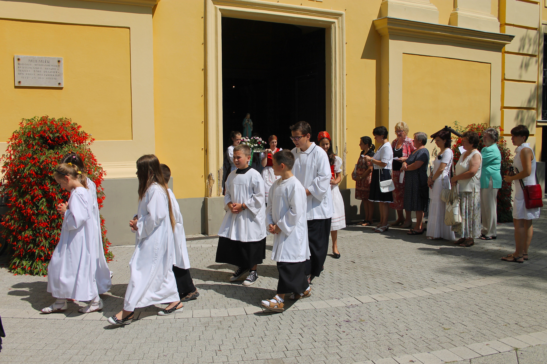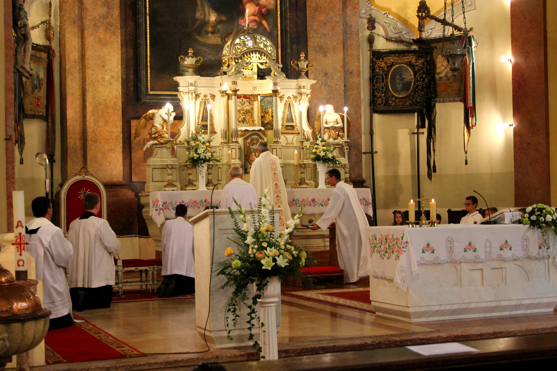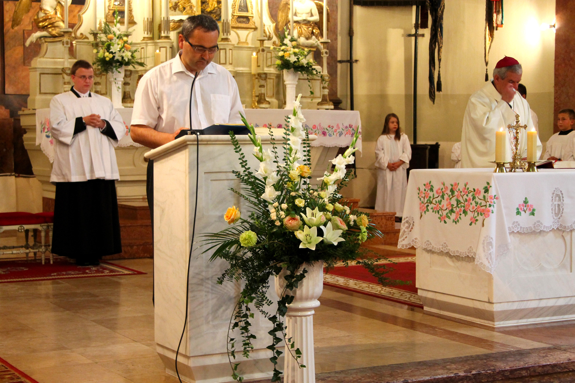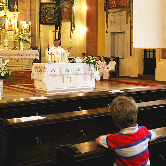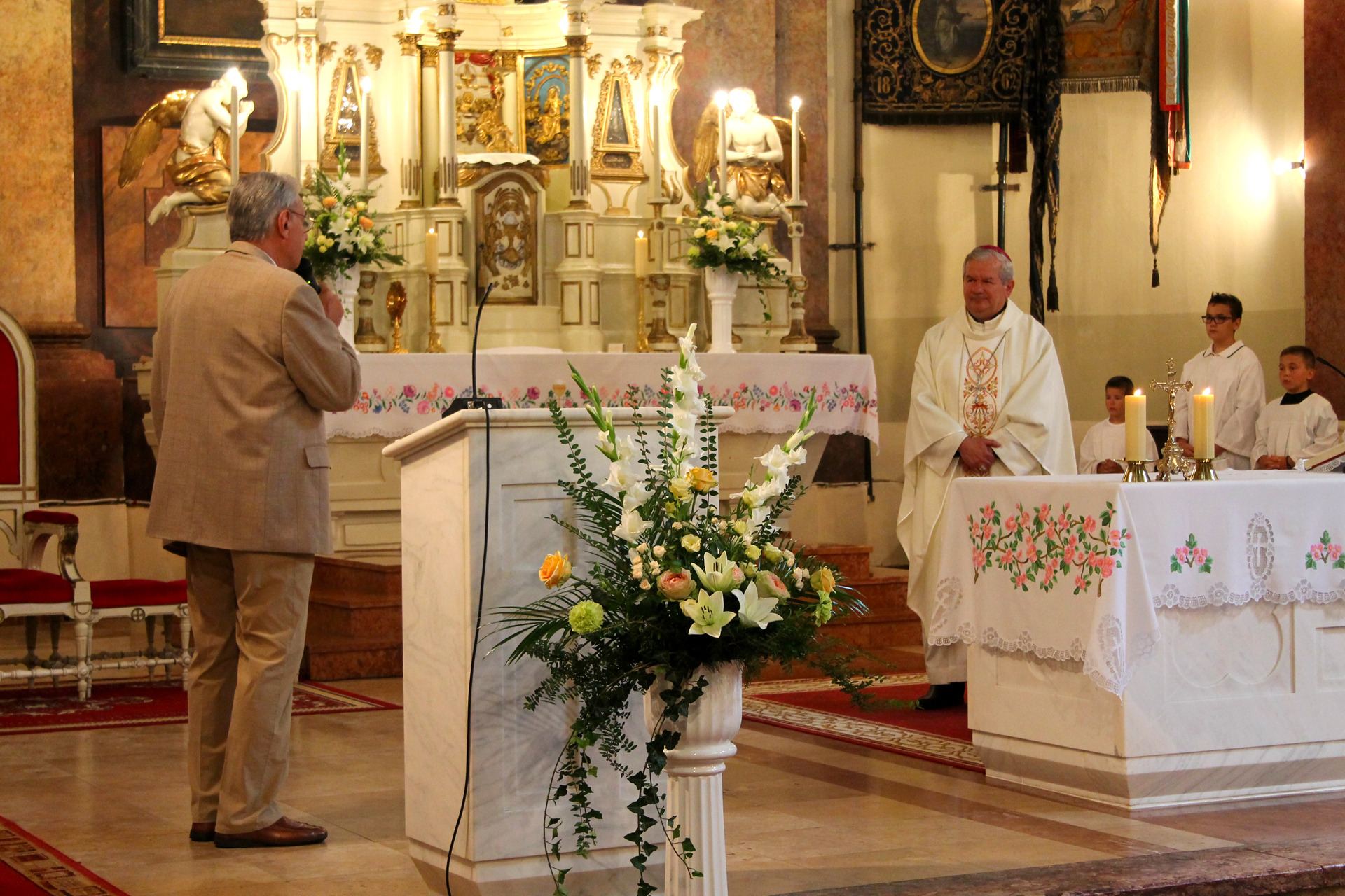 A Gyulai Nádi Boldogasszony templom nagybúcsúján, a bevonuló miséző püspök és kísérete először a Nádi Boldogasszony kegyoltár elé járult, majd a főoltárhoz lépett és a Szűzanyát ábrázoló óriási főoltárkép előtt tartotta meg az ünnepi szentmisét, amelyen hívők és zarándokok – ez alkalommal – elhunyt szeretteikért imádkoztak.