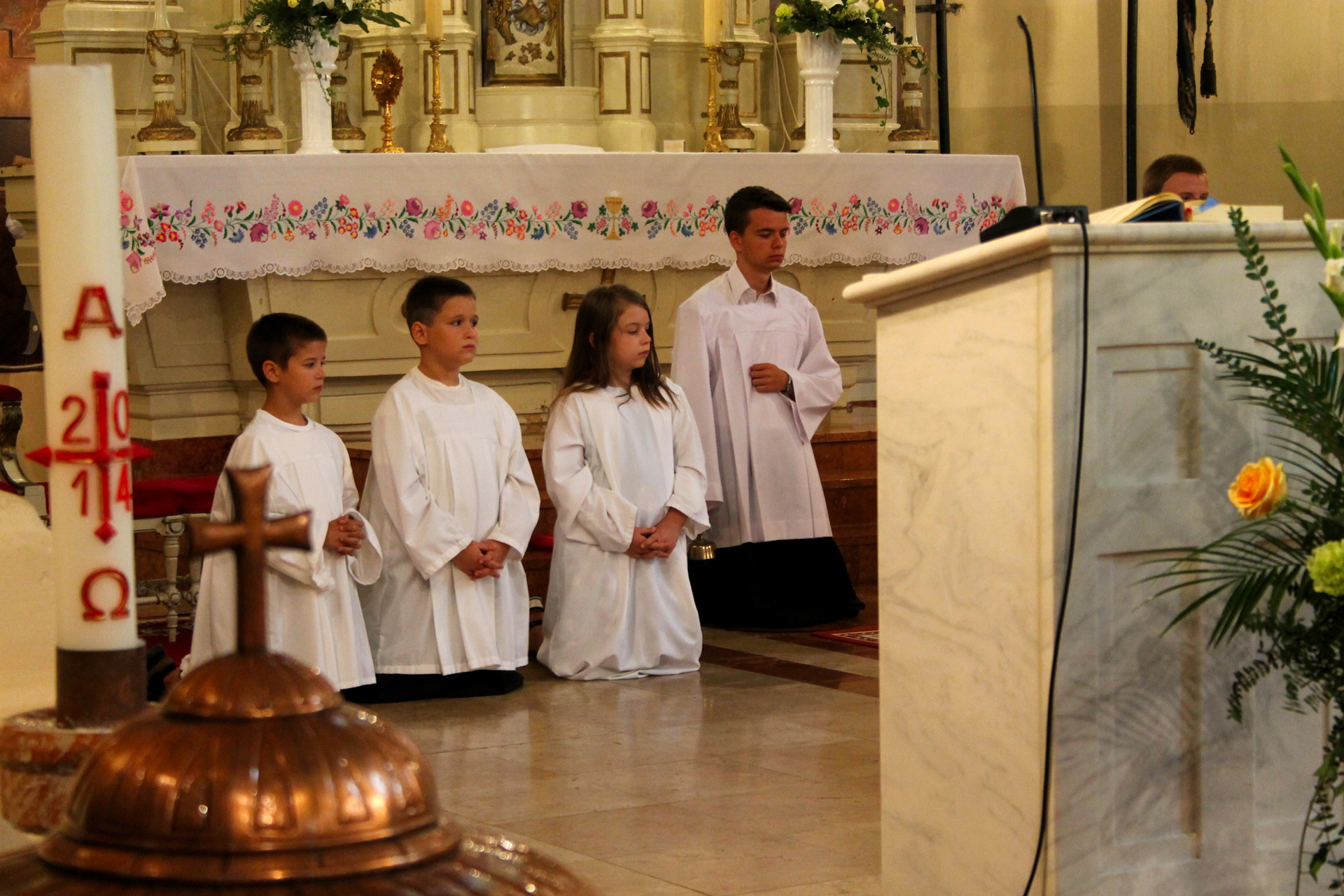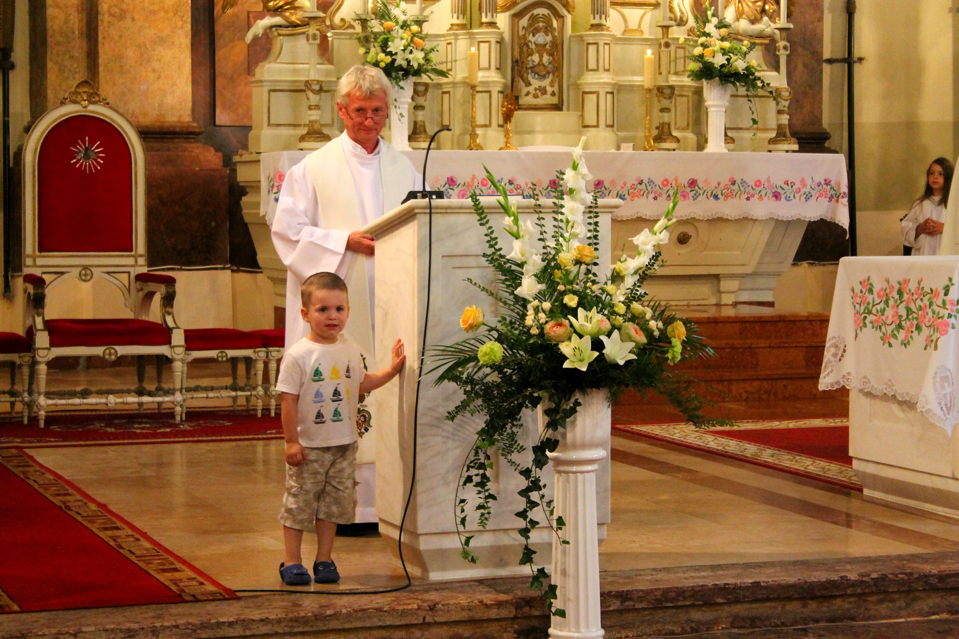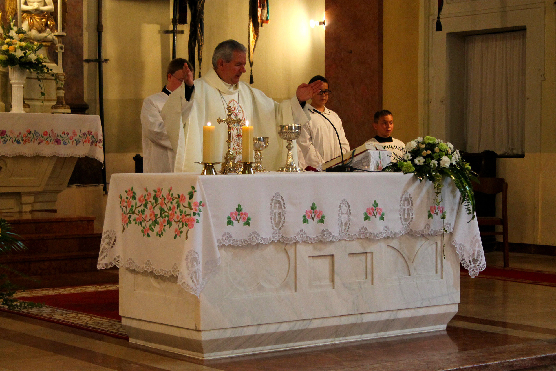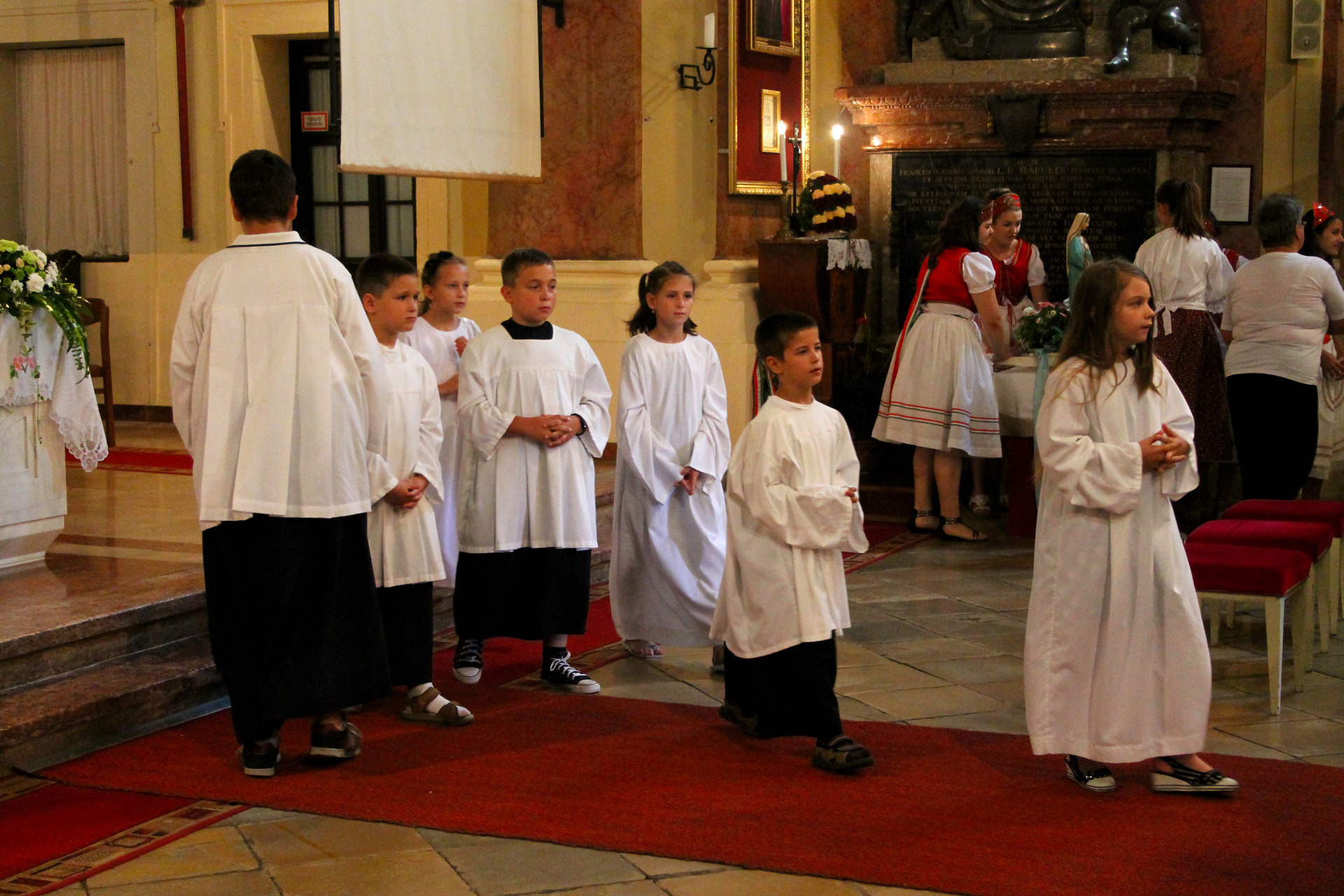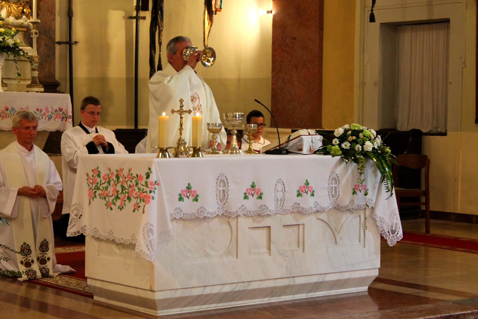 A Gyulai Nádi Boldogasszony templom nagybúcsúján, a bevonuló miséző püspök és kísérete először a Nádi Boldogasszony kegyoltár elé járult, majd a főoltárhoz lépett és a Szűzanyát ábrázoló óriási főoltárkép előtt tartotta meg az ünnepi szentmisét, amelyen hívők és zarándokok – ez alkalommal – elhunyt szeretteikért imádkoztak.