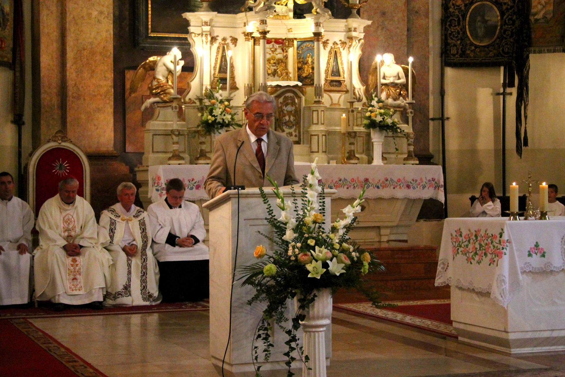 Dr. Kiss-Rigó László beszédét megelőzően részletek hangzottak el a Szentírásból, amely során – többek között – Kovács Péter gyulai esperesplébános is felszólalt. A szeged-csanádi megyepüspök homíliájában Boldogságos Szűz Máriáról, illetve a szent sajátos, magyar megnevezéséről, vagyis a „Nagyboldogasszony” kifejezésről és annak jelentéséről beszélt. Ennek kapcsán főként a nagyság és a boldogság kérdéseit feszegette, mint: Mi is az a nagyság? Mitől válhatunk naggyá? Mit jelent igazán boldognak lenni?