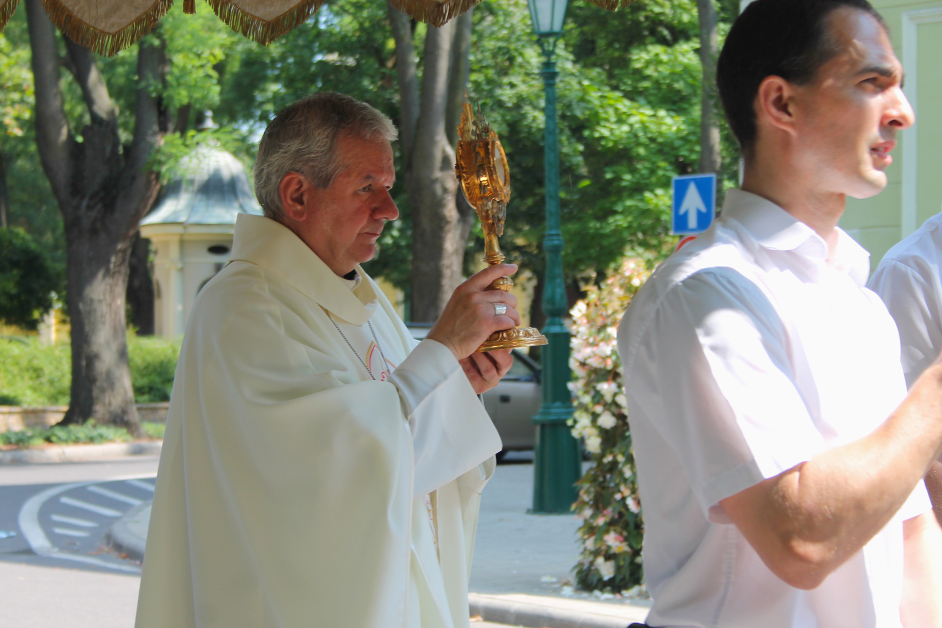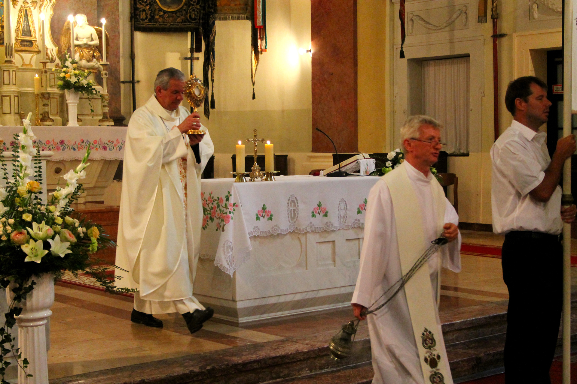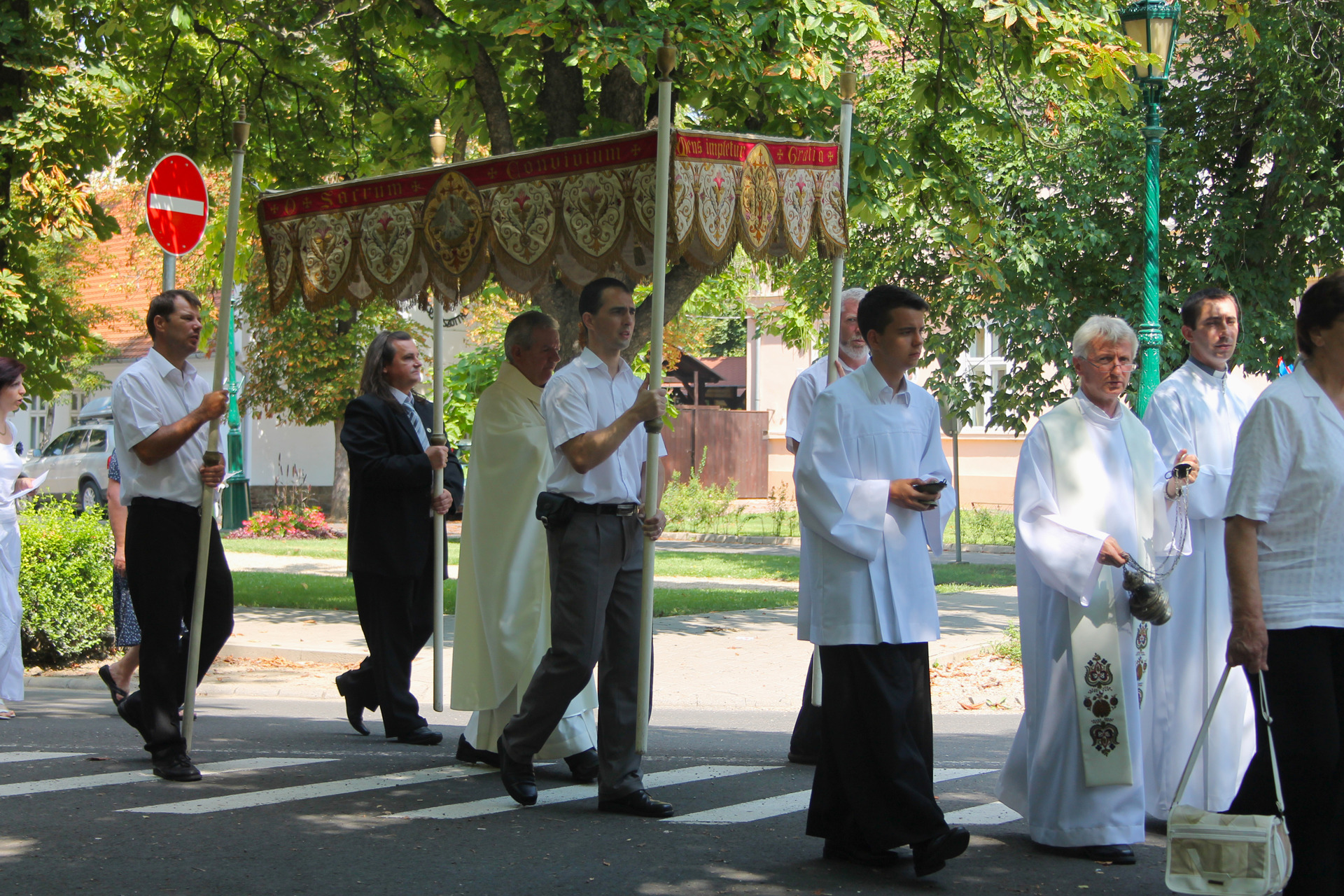 A misét követő szentségi körmenetet szintén dr. Kiss-Rigó László megyepüspök vezette. Ennek során a miséző püspök, kísérete és a több száz fős, katolikus vendégsereg szent énekeket zengve járták körbe a belvárosi templomot, majd visszatérve az Úr házába, az utolsó közös imákat és énekeket követően, a püspök megáldotta a jelenlévőket, majd a főoltár tabernákulumába, oltárszekrényébe helyezte az oltáriszentséget – így zárva le a Mária-ünnepi nagybúcsút.