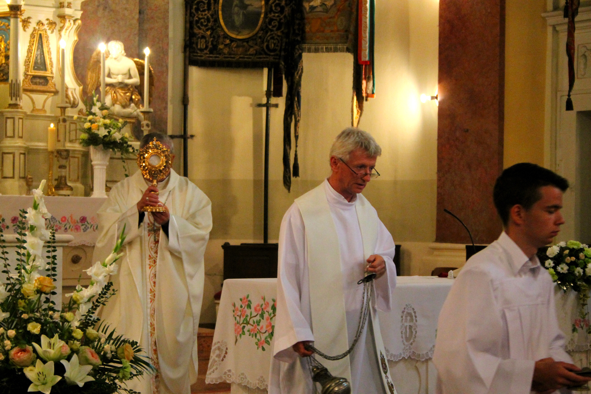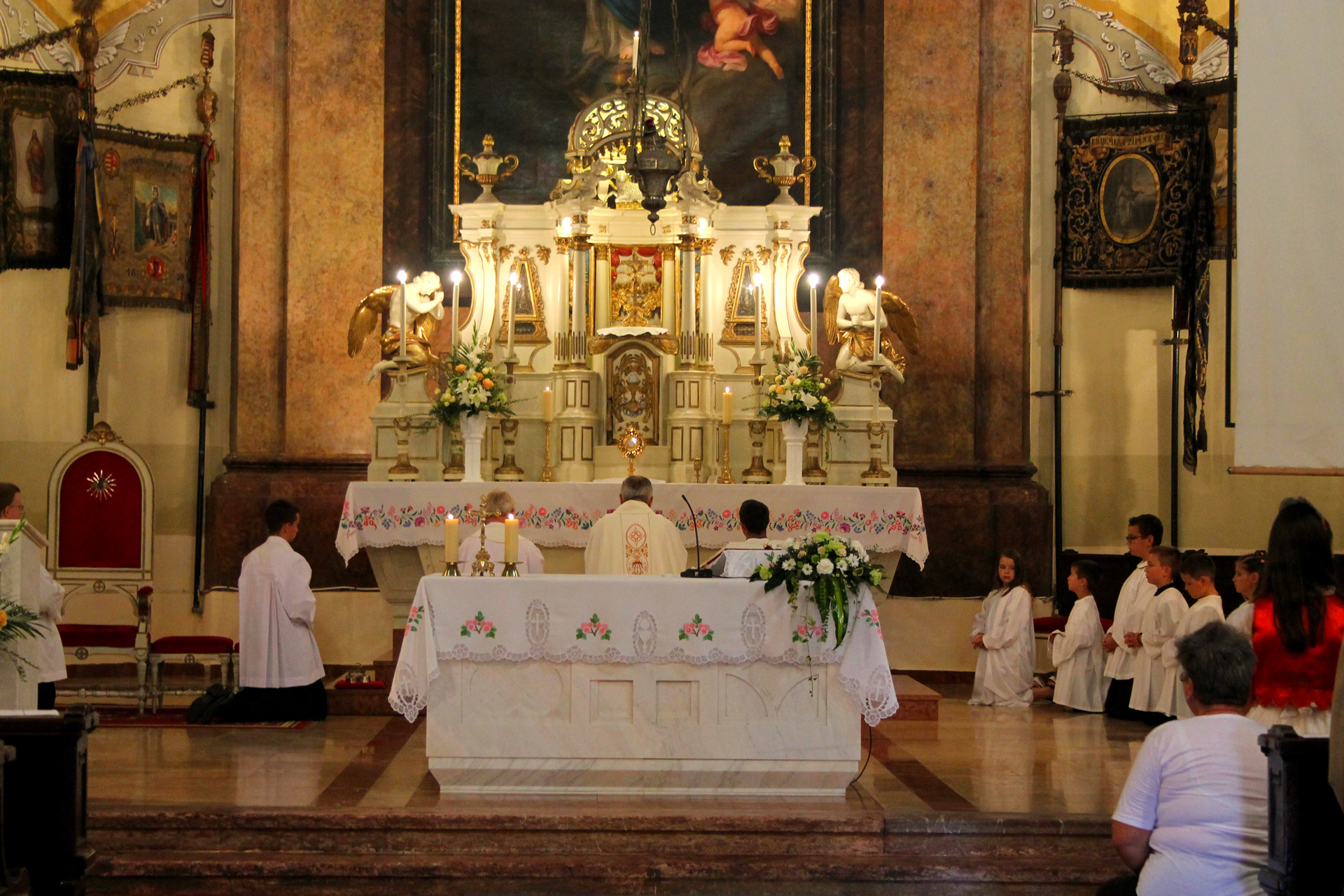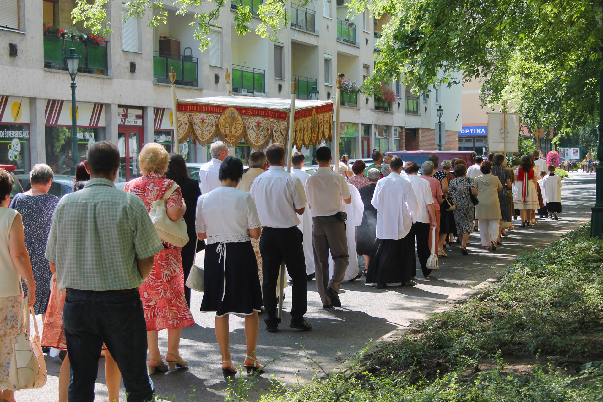 A misét követő szentségi körmenetet szintén dr. Kiss-Rigó László megyepüspök vezette. Ennek során a miséző püspök, kísérete és a több száz fős, katolikus vendégsereg szent énekeket zengve járták körbe a belvárosi templomot, majd visszatérve az Úr házába, az utolsó közös imákat és énekeket követően, a püspök megáldotta a jelenlévőket, majd a főoltár tabernákulumába, oltárszekrényébe helyezte az oltáriszentséget – így zárva le a Mária-ünnepi nagybúcsút.