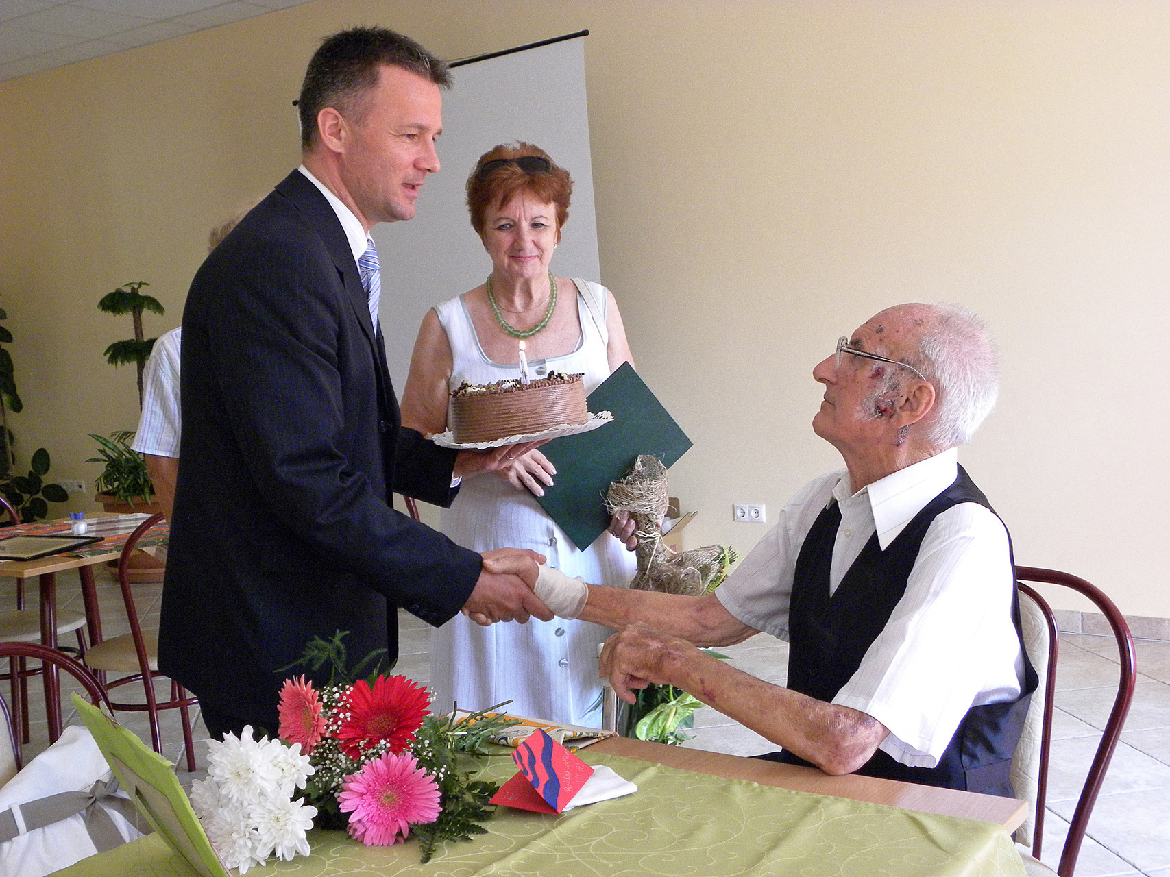 Kilencvenedik születésnapja alkalmából köszöntötte a városvezetés Orovecz Józsefet a gyulavári Kastélykert Idősek Otthonában. A lánya, unokája, két dédunokája és unokatestvére társaságában ünneplő Józsi bácsit Becsyné dr. Szabó Márta címzetes főjegyző és dr. Görgényi Ernő polgármester virágcsokorral, tortával és a miniszterelnök jókívánságait tartalmazó emléklappal lepte meg.