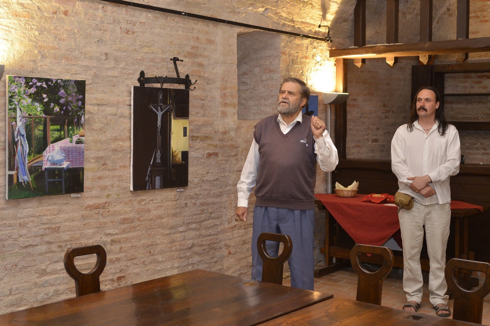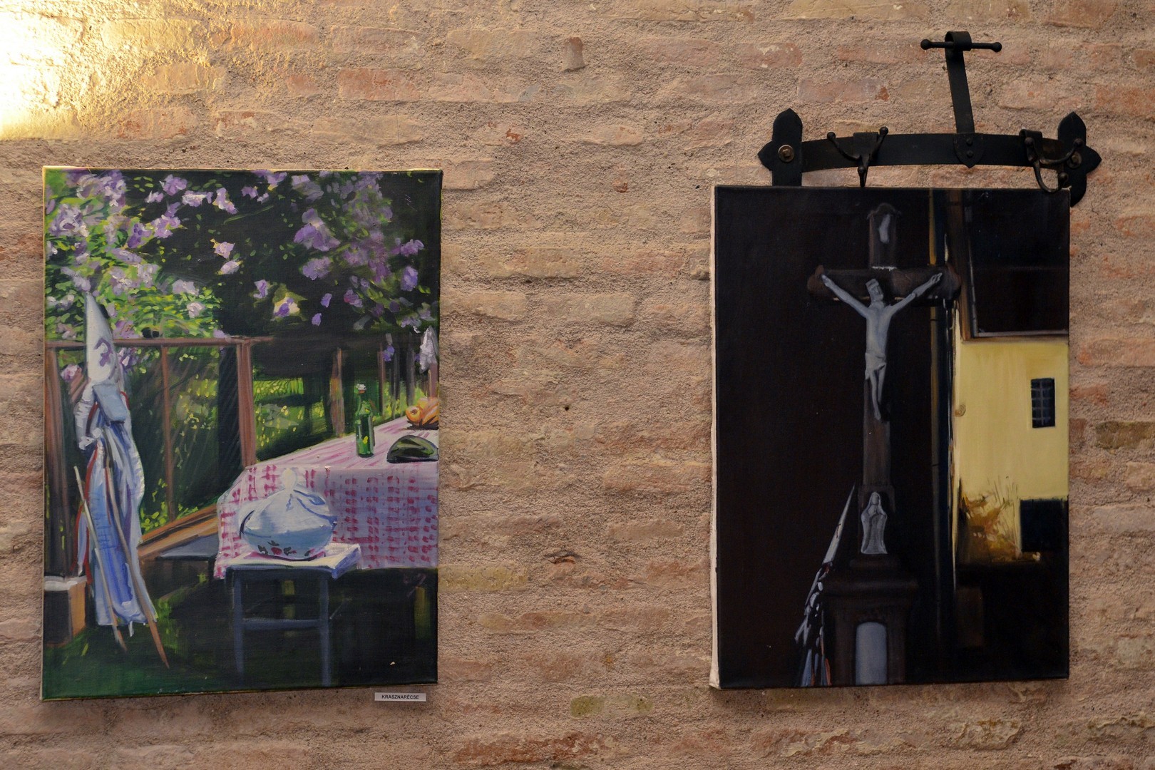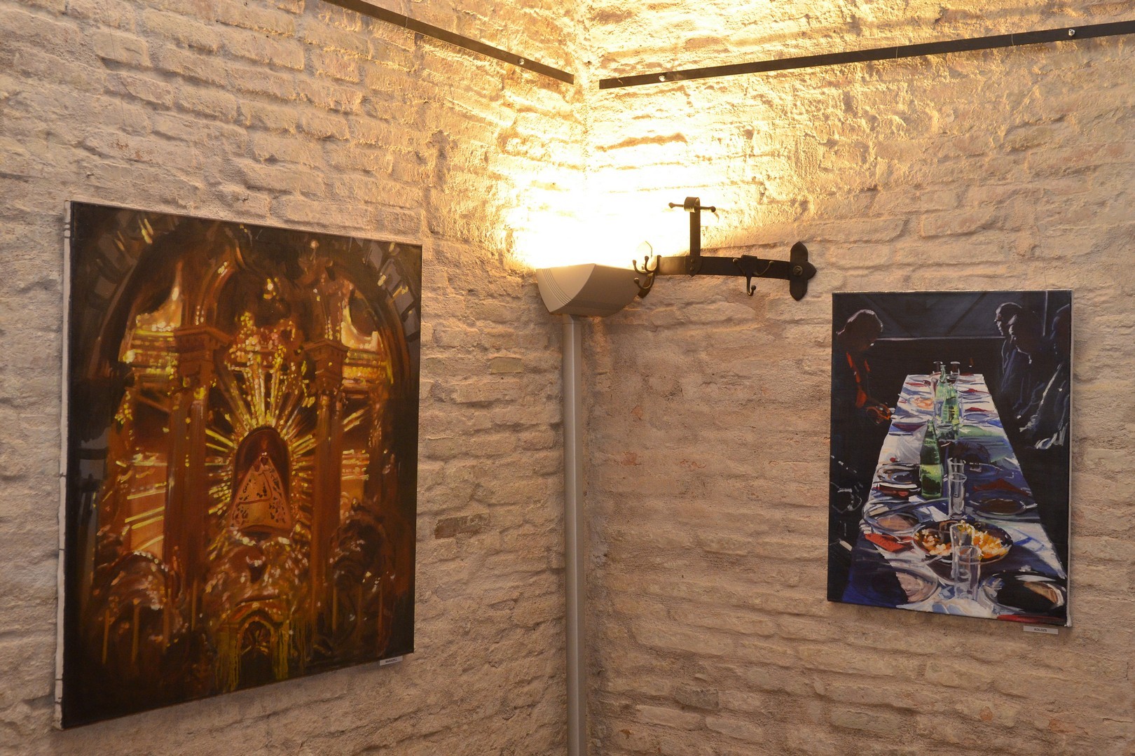 – A zarándokútról hazatérve műteremben festettem meg személyes élményeimet – avatott be az alkotómunka részleteibe az El Caminót is végigjáró László Dániel. Mint kifejtette, festményei kiindulópontjai a fényképezőgépével rögzített pillanatképek voltak. Az alkotó benyomásai hol egy templombelsőben, hol egy zarándoktárs alakjában öltenek formát, s a belső stációihoz igazodva, néha átszellemült csillogásban, néha pedig komor sötétbe burkolózva vallanak a lélek útjáról.