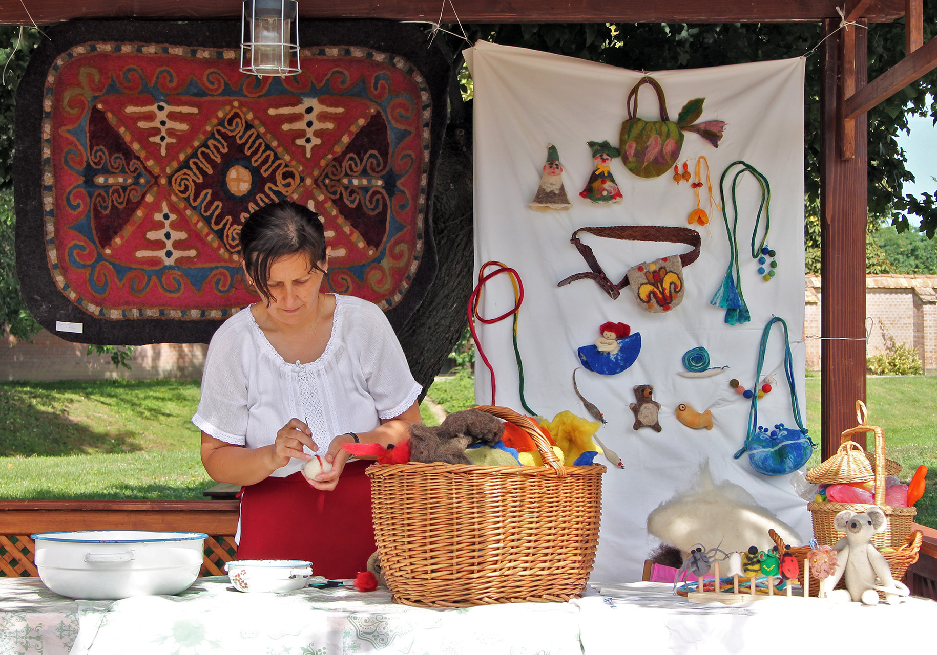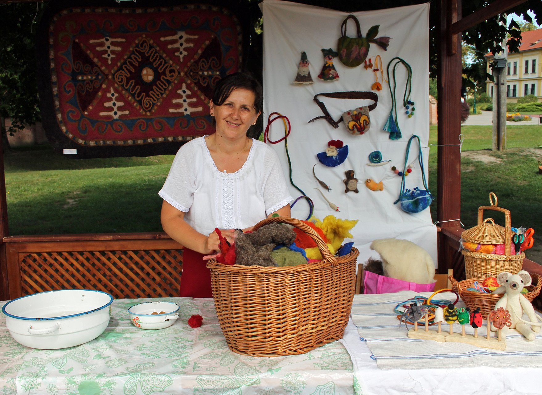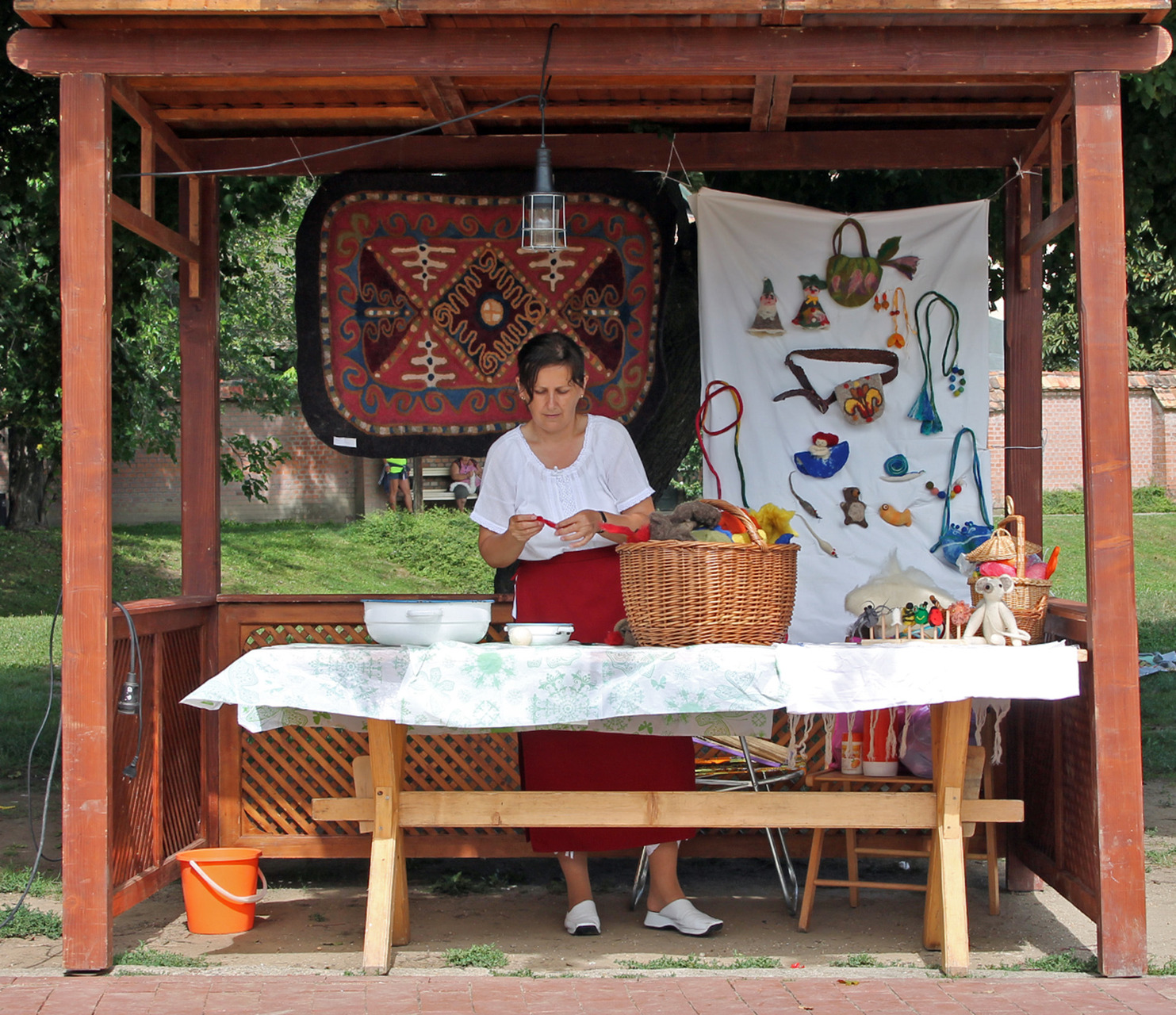 Ottjártunkkor Poszt Ilona, a Békés Megyei Népművészeti Egyesület tagja épp a nemezelés gyakorlatát szemléltette. A bemutató során a kézművest körülvevő – többségében általa készített – nemezelt tárgyakat is megtekinthettük.