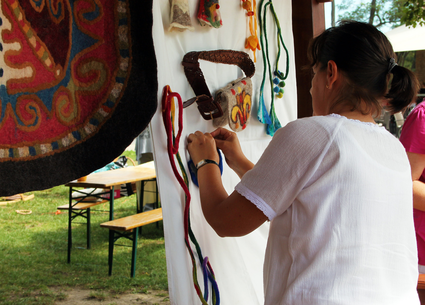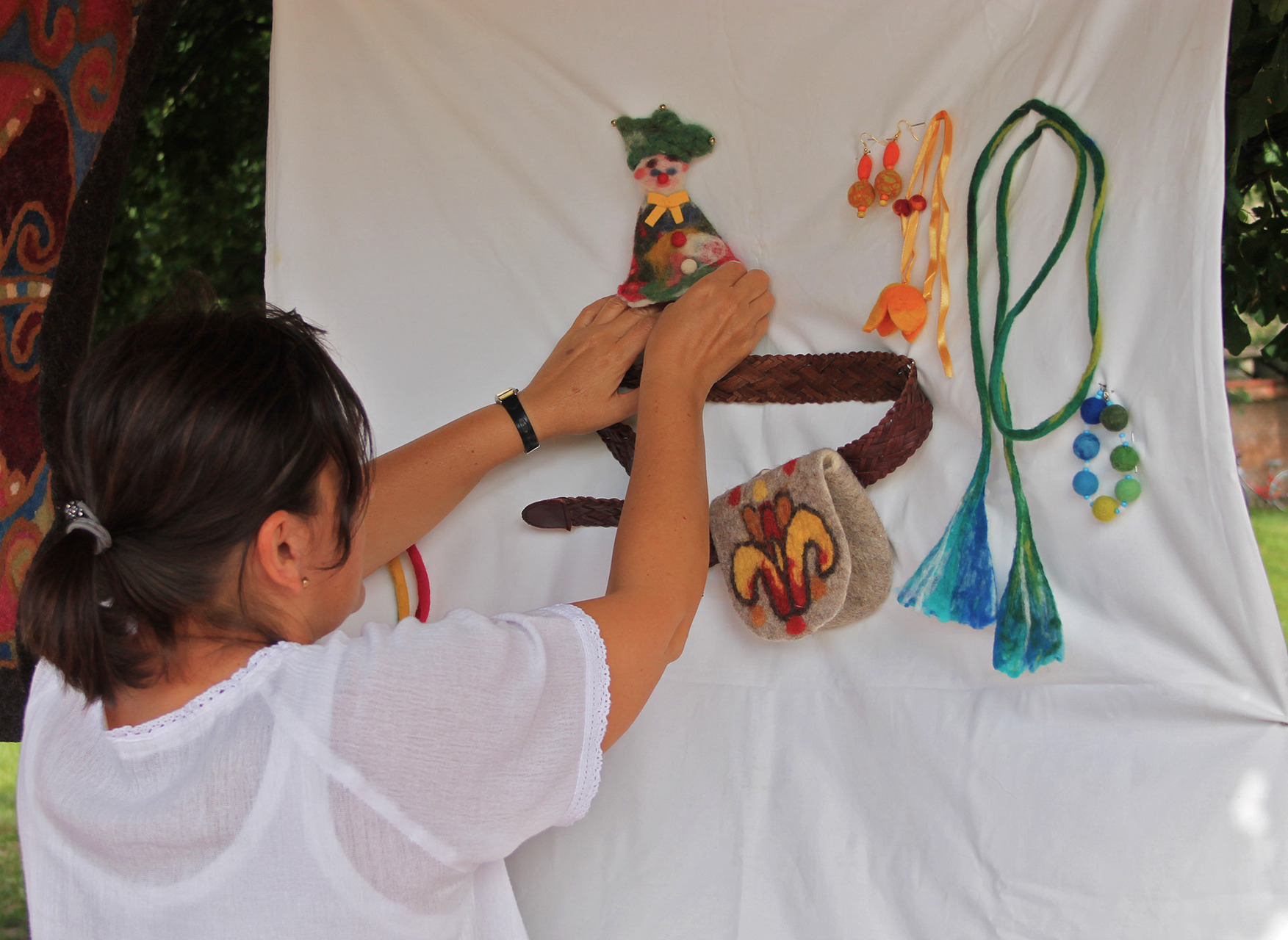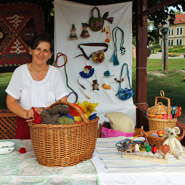 Ottjártunkkor Poszt Ilona, a Békés Megyei Népművészeti Egyesület tagja épp a nemezelés gyakorlatát szemléltette. A bemutató során a kézművest körülvevő – többségében általa készített – nemezelt tárgyakat is megtekinthettük.