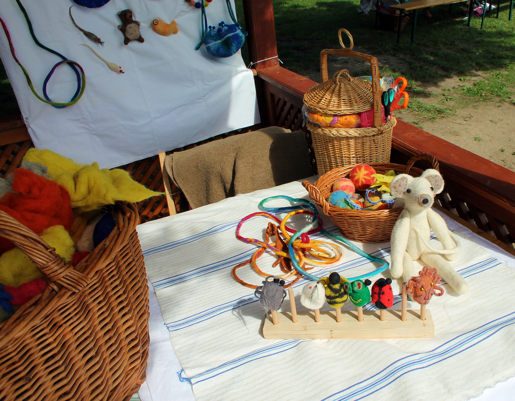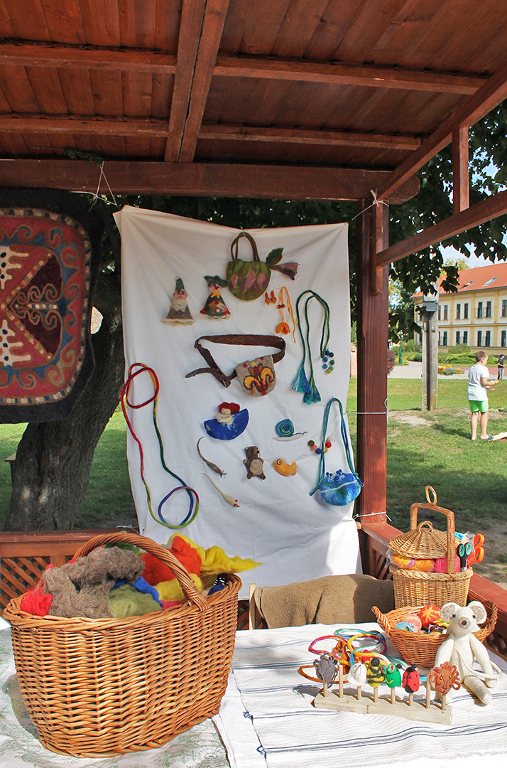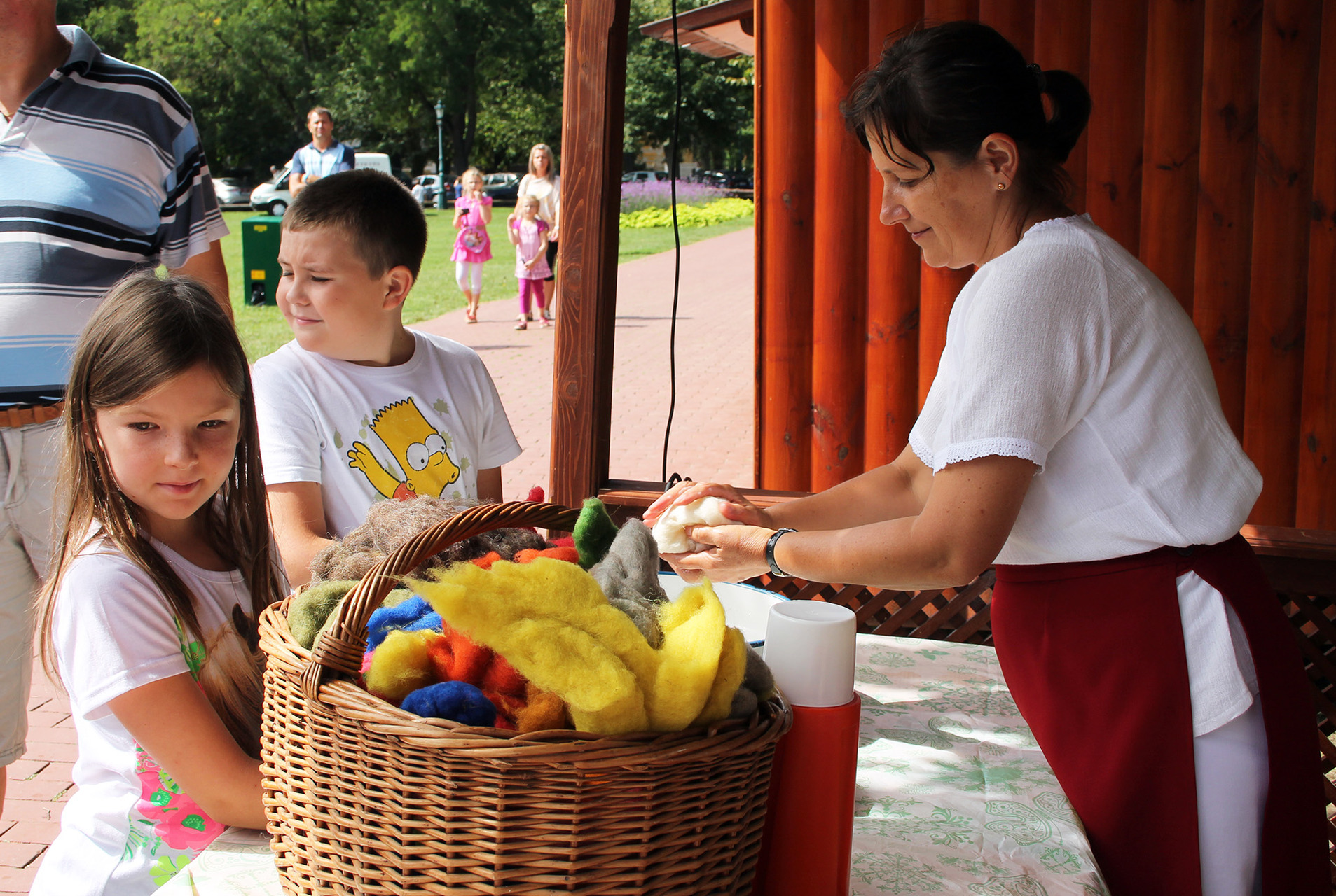 A szombat délelőtti kézműves-bemutató alatt jó néhány kis- és nagycsalád állt meg a Békés megyei egyesület standja előtt. A gyermekek a legtöbb esetben nagy érdeklődést mutattak a különleges kézműves technika, a nemezelés iránt.