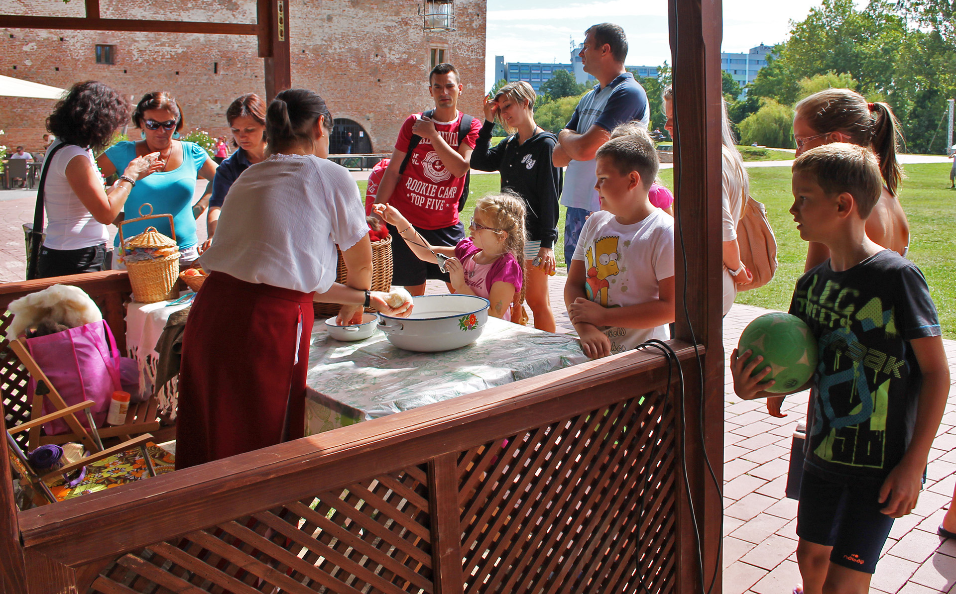 A Minden Magyarok XX. Jubileumi Nemzetközi Néptáncfesztiválján a magyar és a külföldi népi táncok és zenék mellett, a népi kézművesség megismerése is fontos szerepet kapott. A rendezvénysorozat keretében több alkalommal is lehetőségünk nyílt belekukkantani saját népünk – már-már elfeledett – kézműves technikáinak világába. A népművészeti bemutatók a Békés Megyei Népművészeti Egyesület közreműködésével zajlottak a gyulai várkertben.