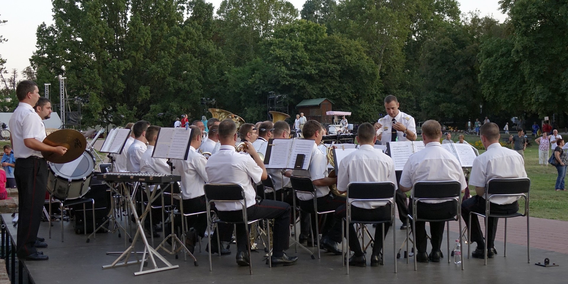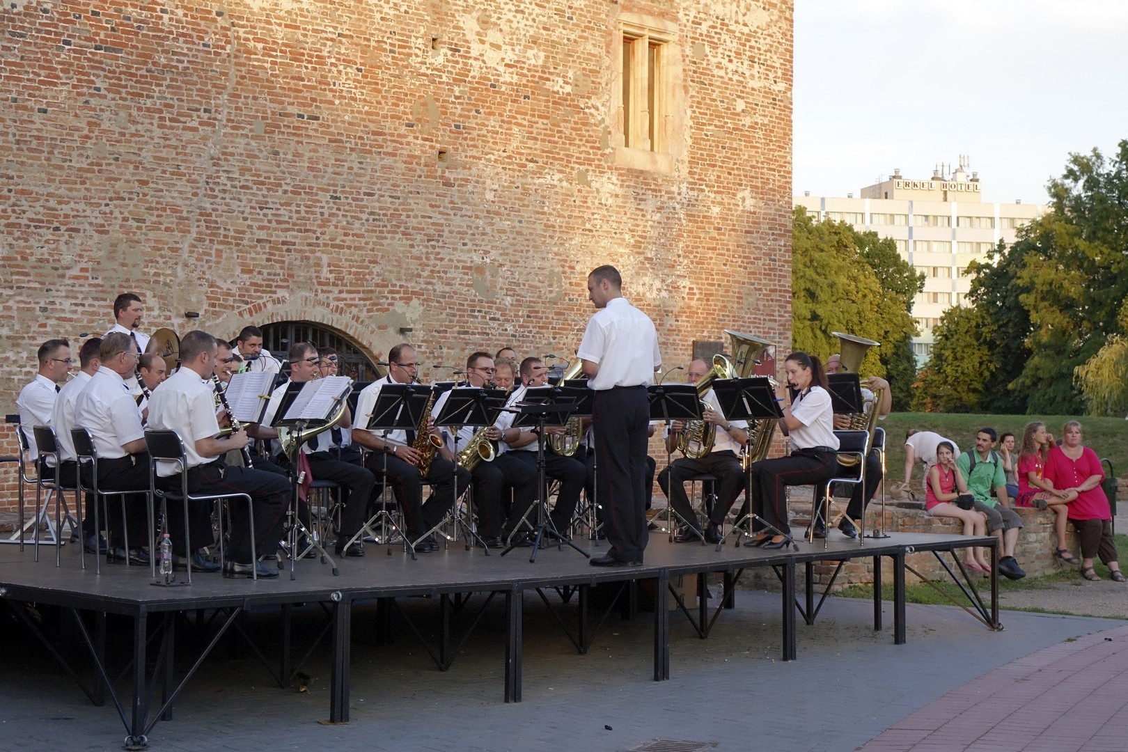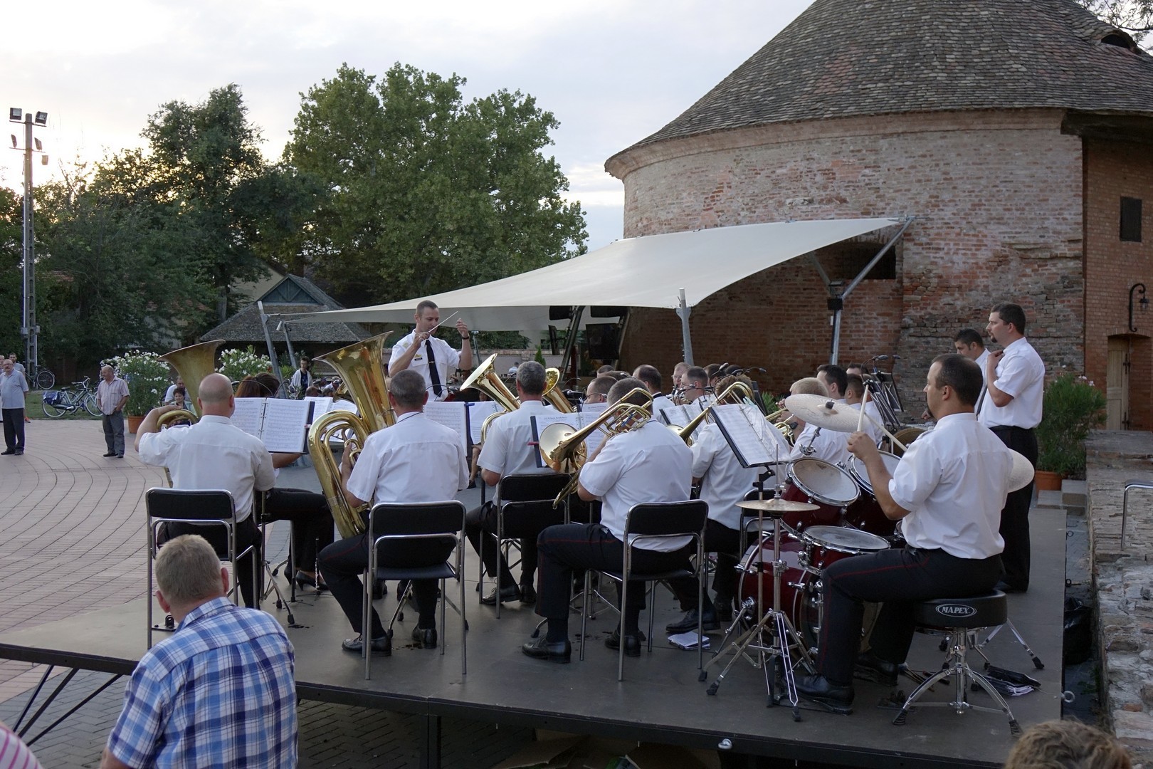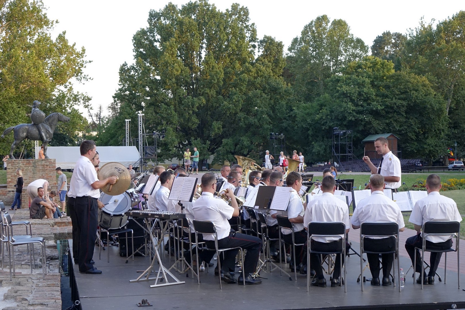 Kellemes nyáresti dallamok szálltak a Rondella Terasz színpadáról a várkertben augusztus 19-én este, amikor a Magyar Honvédség 5. Bocskai István Lövészdandár Hódmezővásárhelyi Helyőrségi Zenekarának tagjai szólaltatták meg hangszereiket. A pontosan egy órás műsorra fokozottan gyűltek az érdeklődők, akik közül többen a fűben ücsörögve hallgatták a színvonalasan megszólaltatott muzsikát.