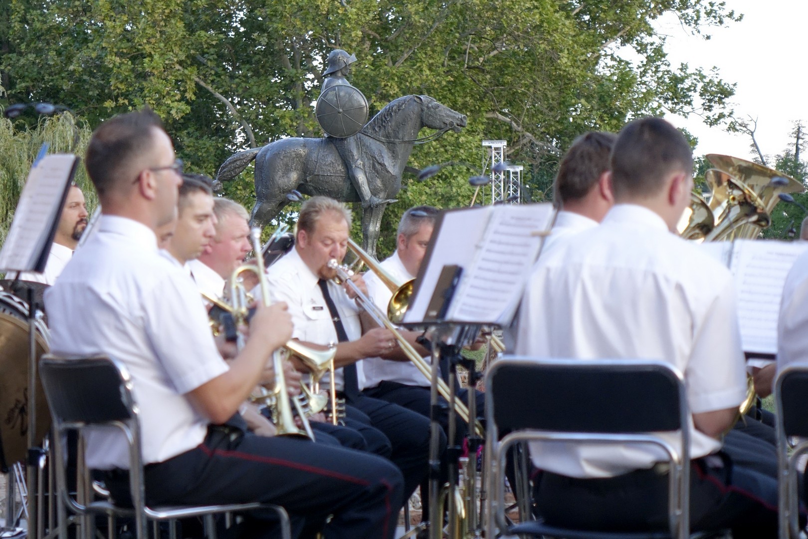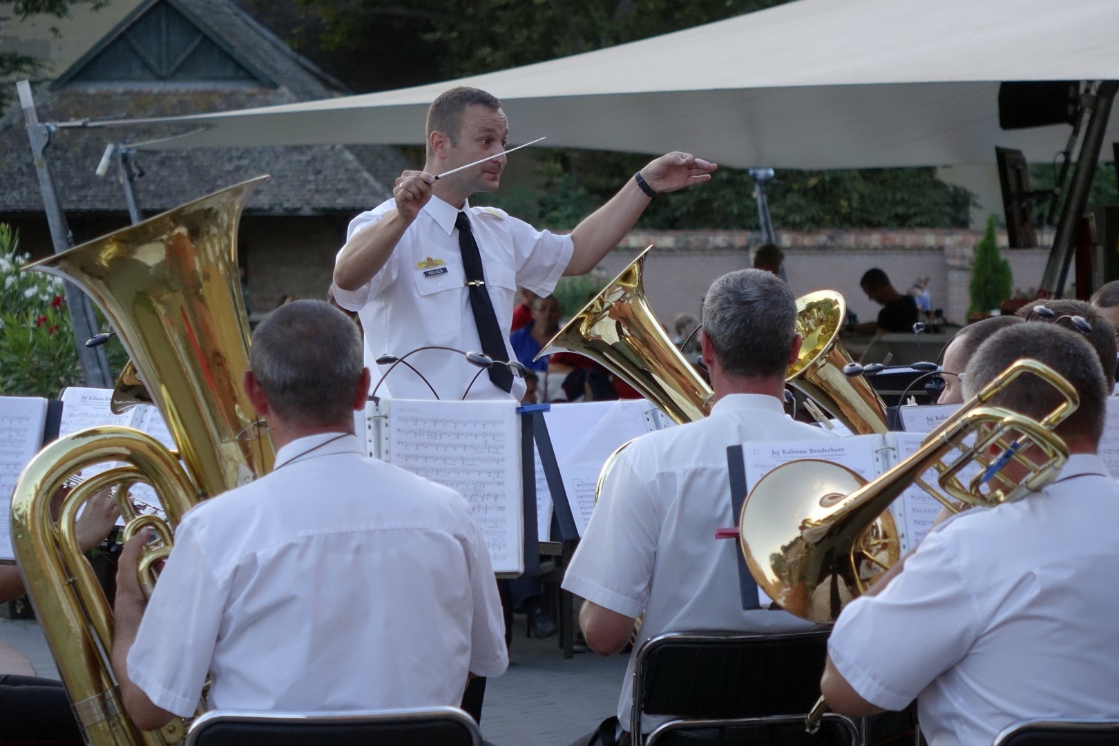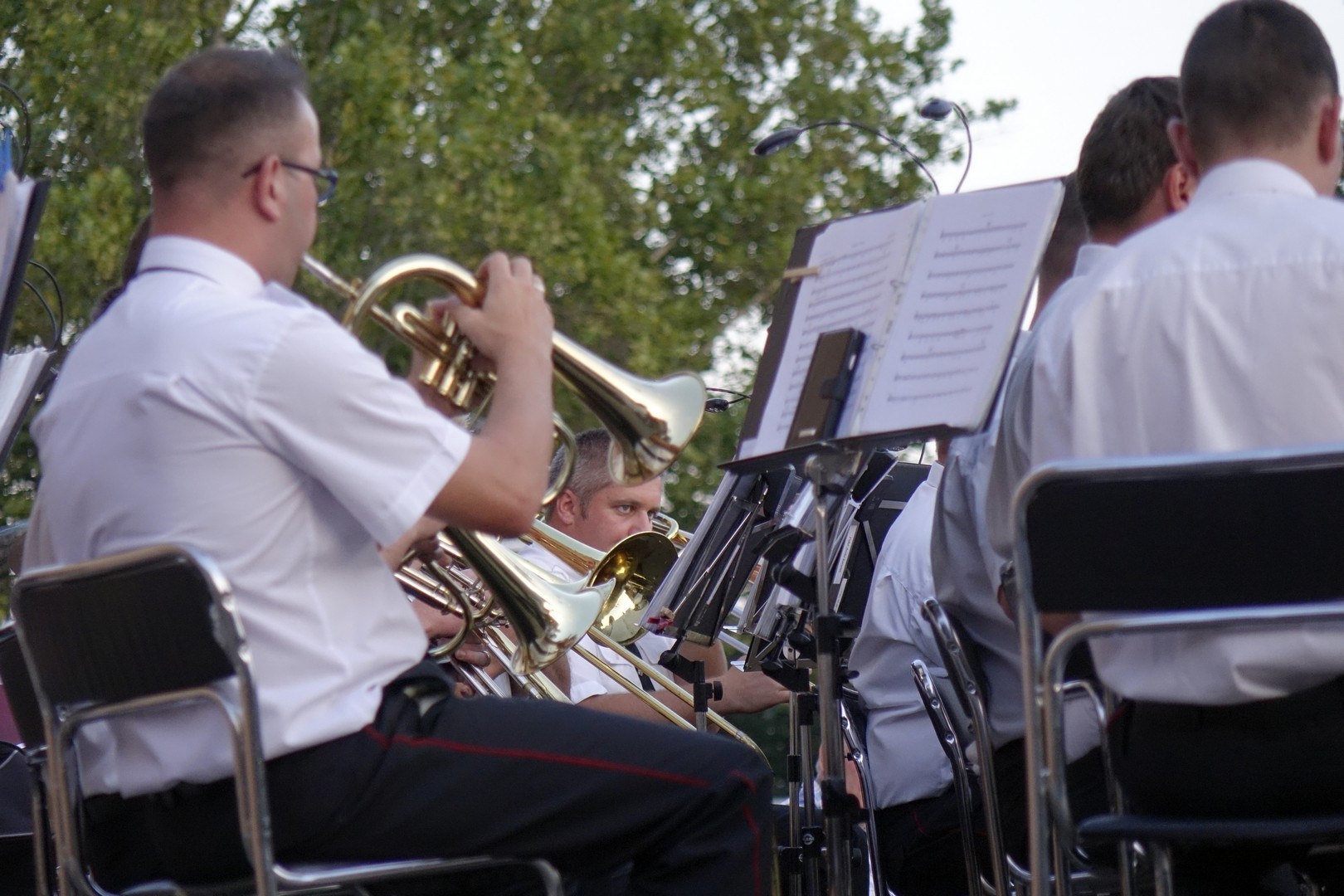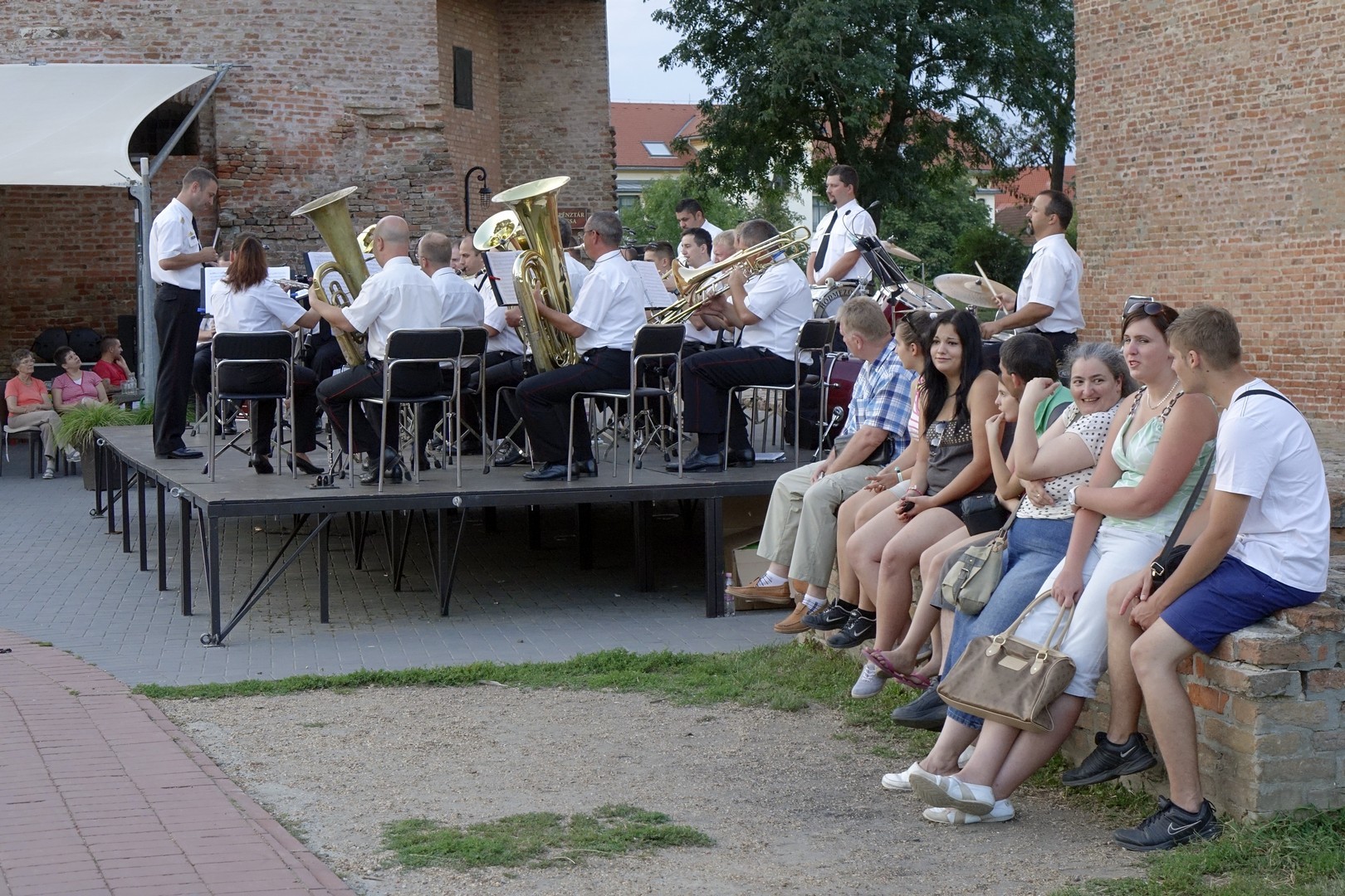 Kellemes nyáresti dallamok szálltak a Rondella Terasz színpadáról a várkertben augusztus 19-én este, amikor a Magyar Honvédség 5. Bocskai István Lövészdandár Hódmezővásárhelyi Helyőrségi Zenekarának tagjai szólaltatták meg hangszereiket. A pontosan egy órás műsorra fokozottan gyűltek az érdeklődők, akik közül többen a fűben ücsörögve hallgatták a színvonalasan megszólaltatott muzsikát.
