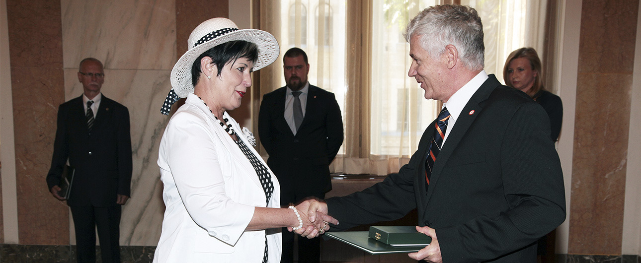 Dr. Veress Gabriella dr. Polt Péter legfőbb ügyésztől vette át a kitüntetést. Fotó: Békés Megyei Főügyészség