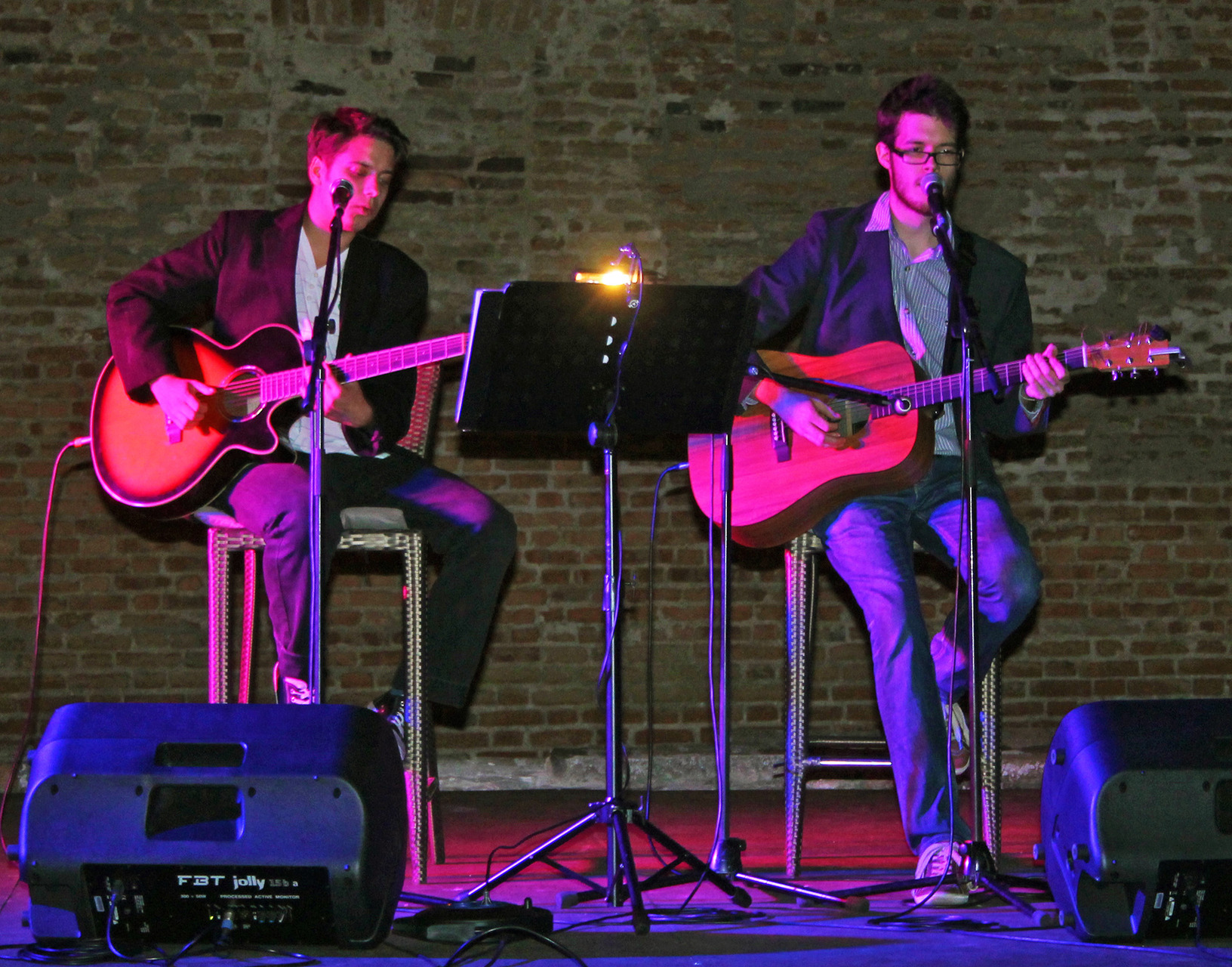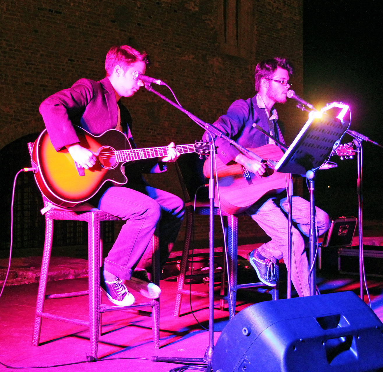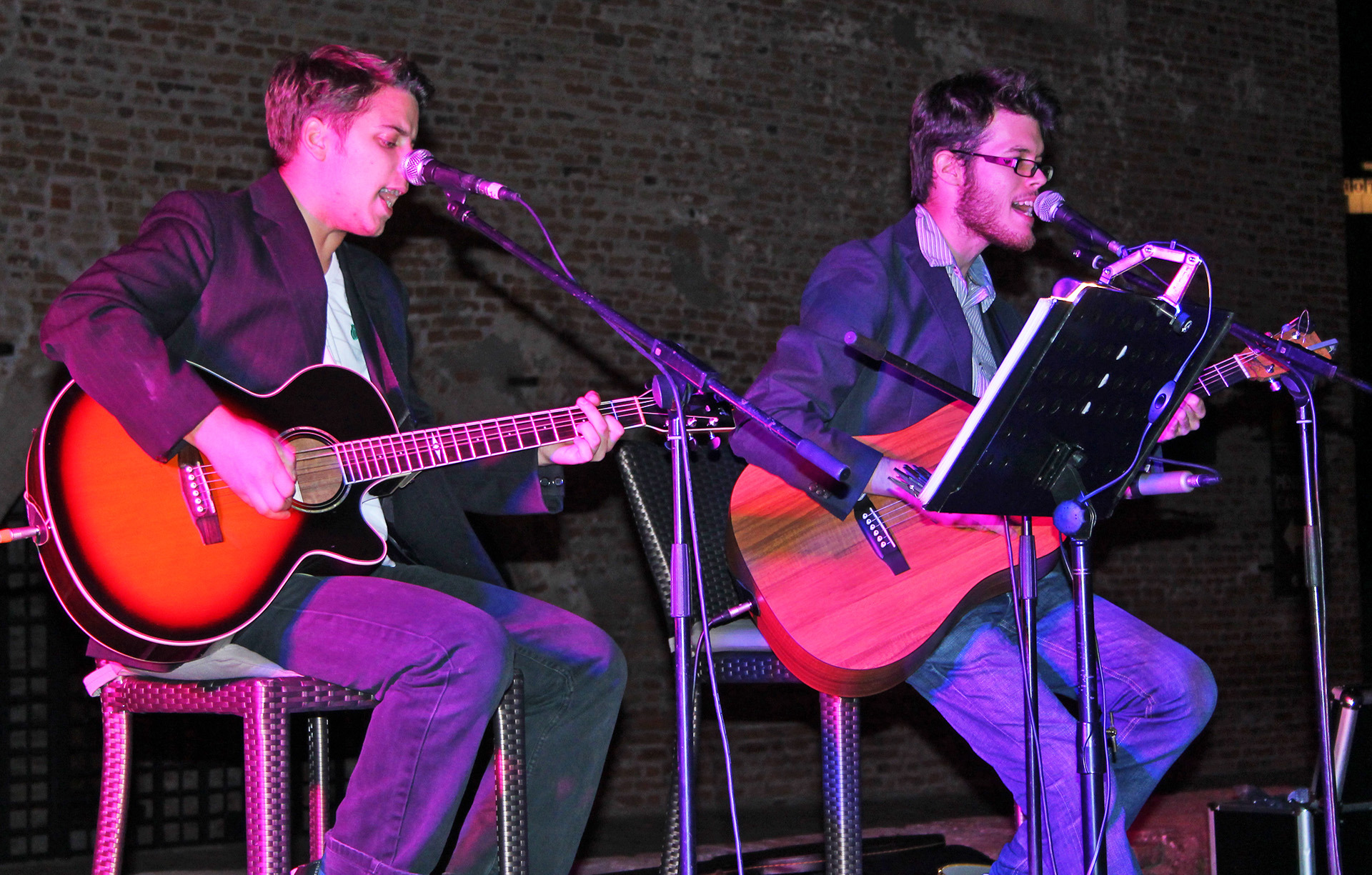 Kölcsey Szabolcs (gitár, ének) és Varga Ádám (ének, gitár) duója Békéscsabáról érkezett Gyulára. A formáció 2010 ősze óta létezik, ám a fiúk korábban más bandákban is pengették már együtt a húrokat. Produkciójukban két gitár és két énekhang változatos együttmozgásának lehettünk fültanúi. Az ifjú zenészek bizonyos dalokat duettben adtak elő, ám leginkább a főénekes-vokalista felállás jellemezte koncertjüket, mely során a srácok egymást váltogatva töltötték be az énekesszerepeket. Varga Ádám, lévén a BéKSZI Trefort Ágoston Fiúkórusának tagja, főként énekhangjával próbálta elkápráztatni a közönséget. Kölcsey Szabolcs, könnyűzenei tanulmányaiból és több éves gitárgyakorlatából kifolyólag, elsősorban a húrokon mutatványozva, virtuóz szólóival szórakoztatta a hallgatóságot - sőt a produkciót színesítvén, néhány dal erejéig egy igazi öthúros bendzsón kísérte zenésztársát.